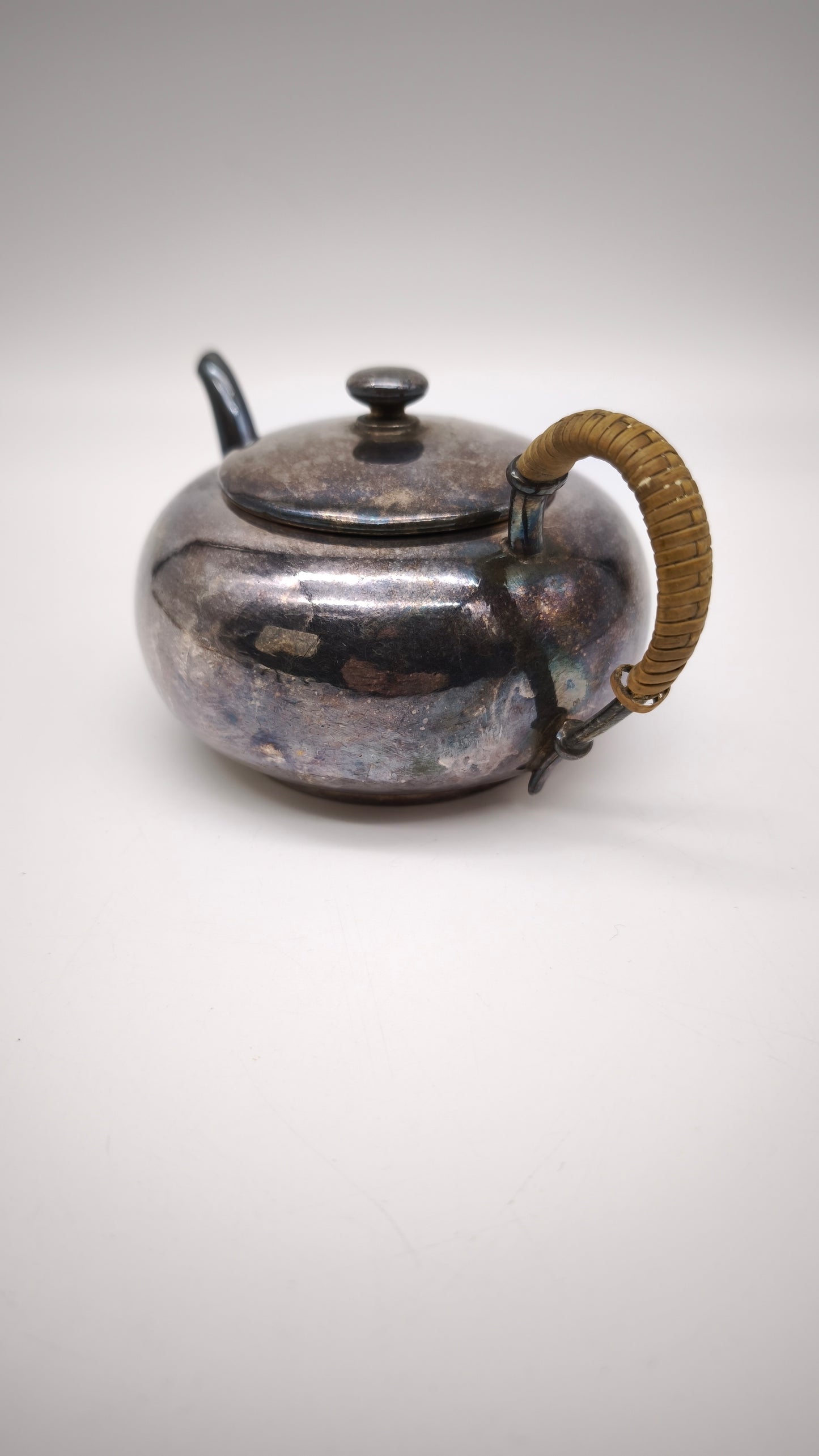 Piccola teiera inglese silver con manico in midollino