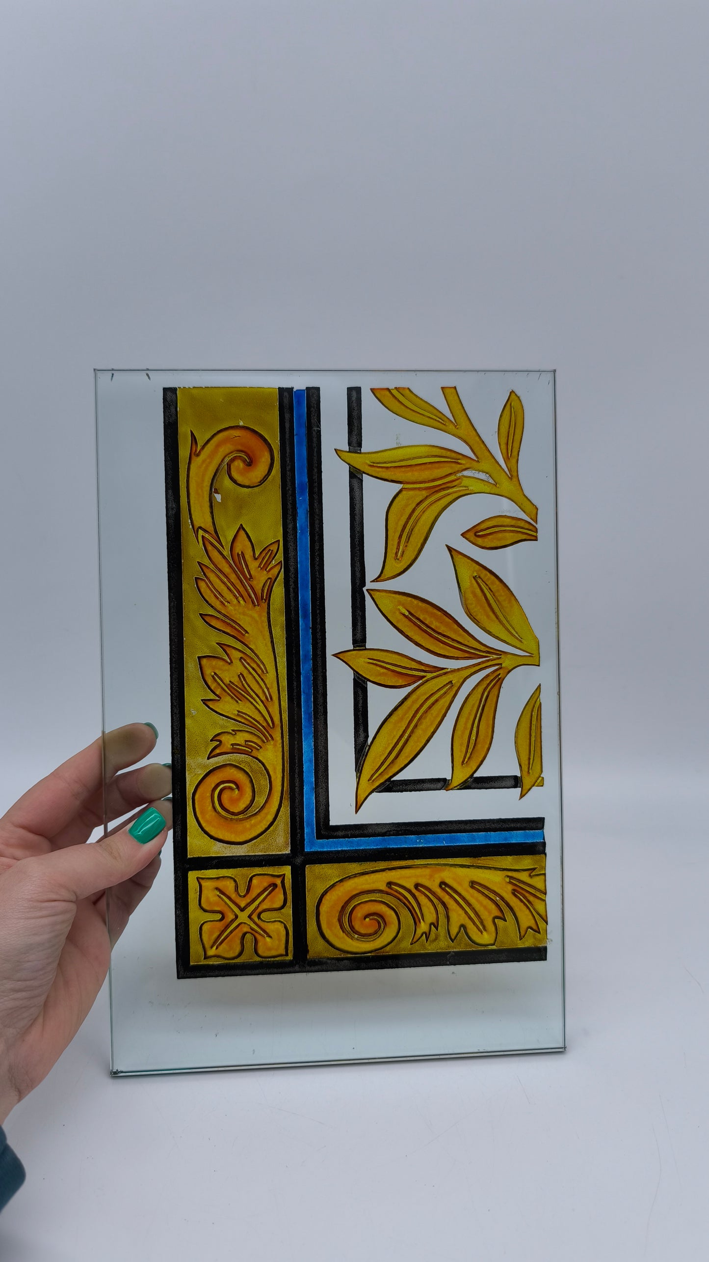 Decorazione ornamentale su lastra di vetro
