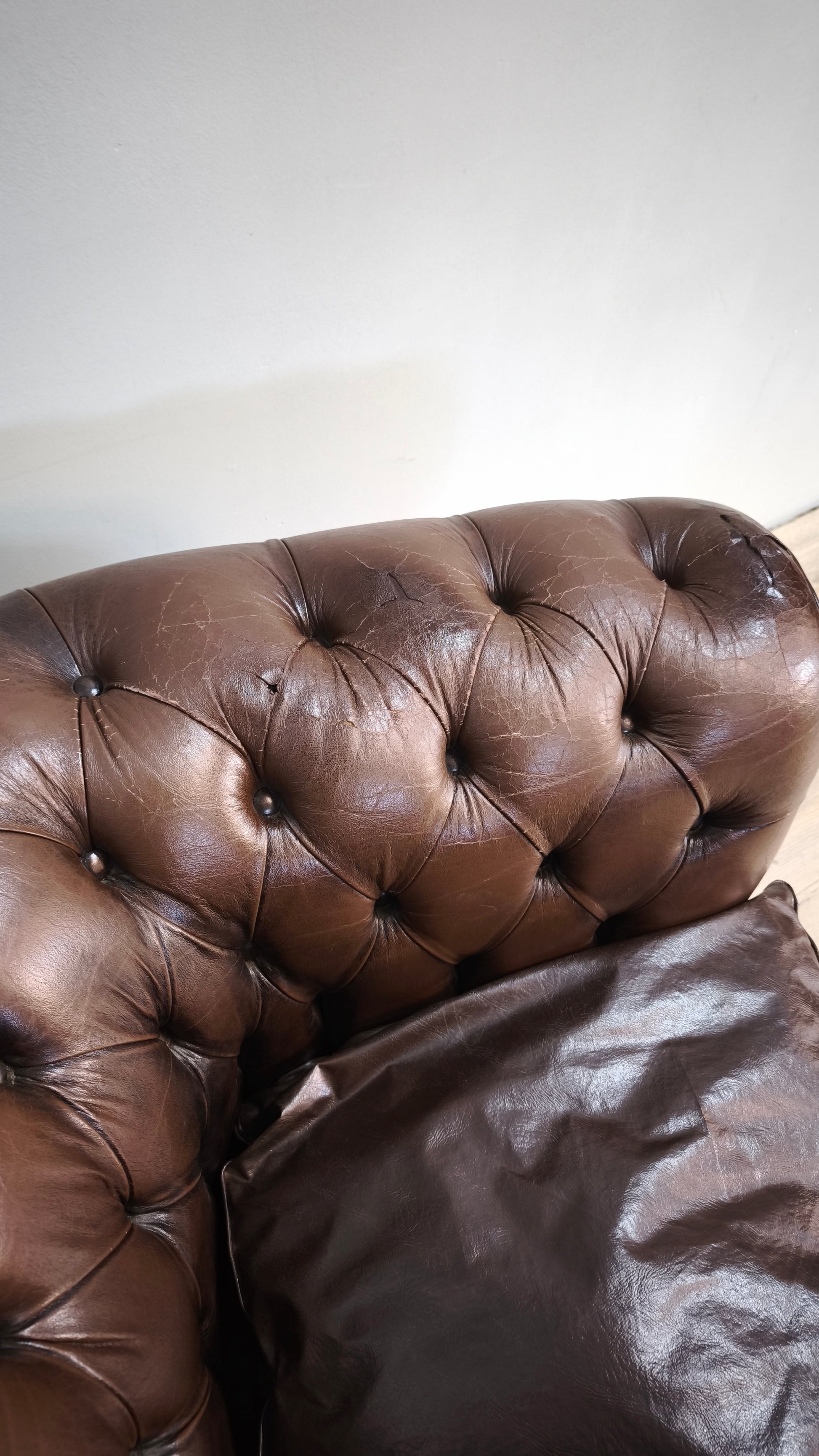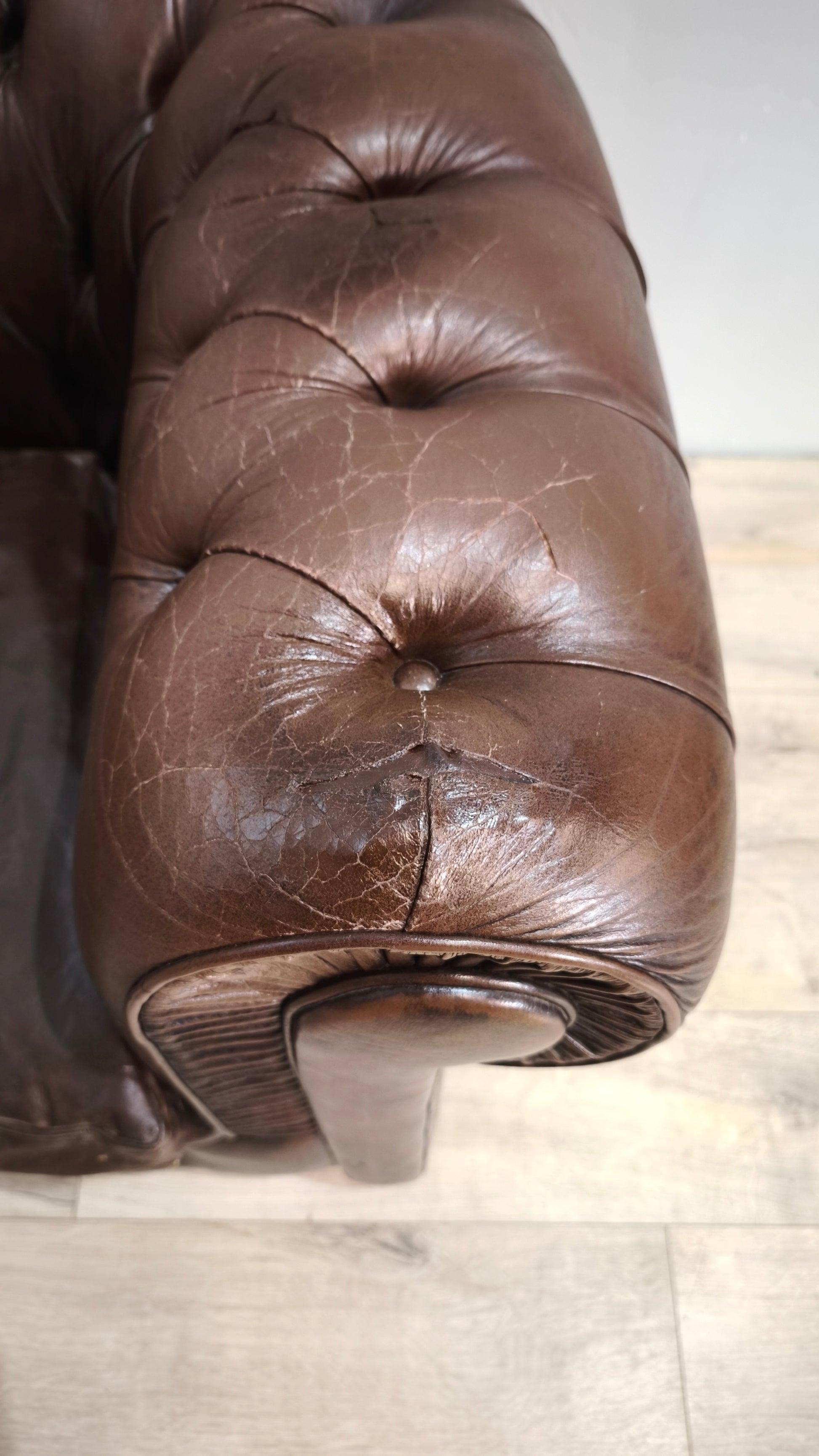 La pelle presenta segni del tempo e dell'uso, in alcuni punti presenta screpolature e spacchi, le foto sono parte integrante della descrizione