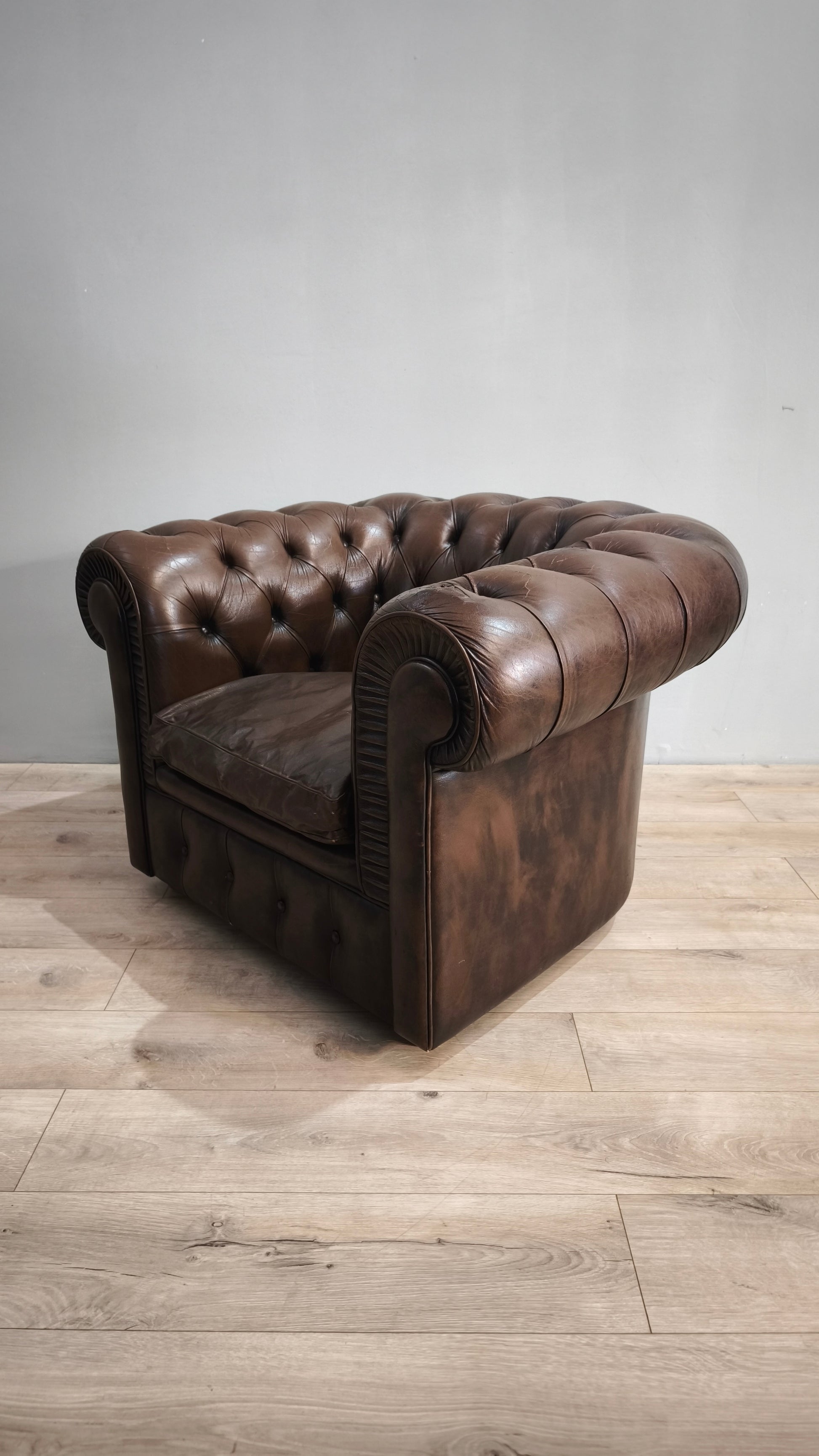 Poltrona Chester in pelle marrone
