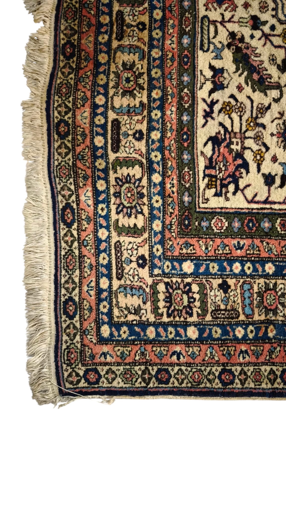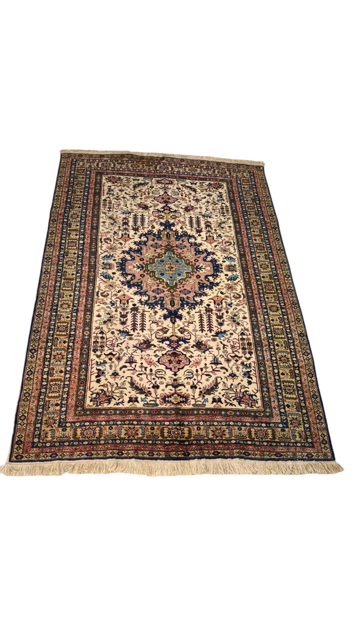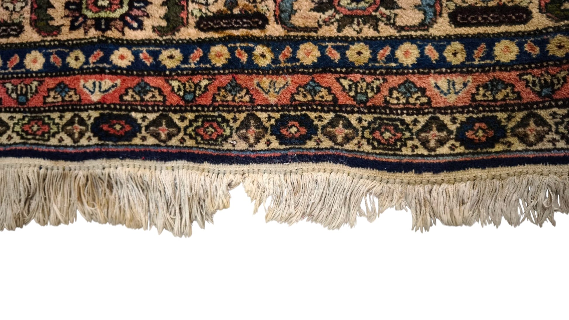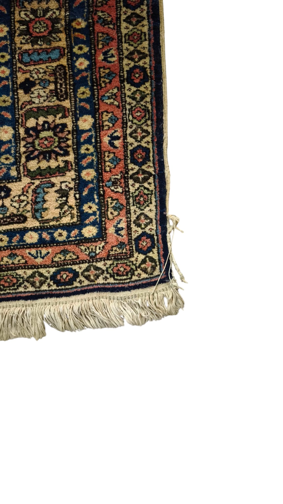 Presenta qualche segno del tempo e dell'uso, le frange laterali hanno un difetto, sono presenti delle piccole macchie, le foto sono parte integrante della descrizione