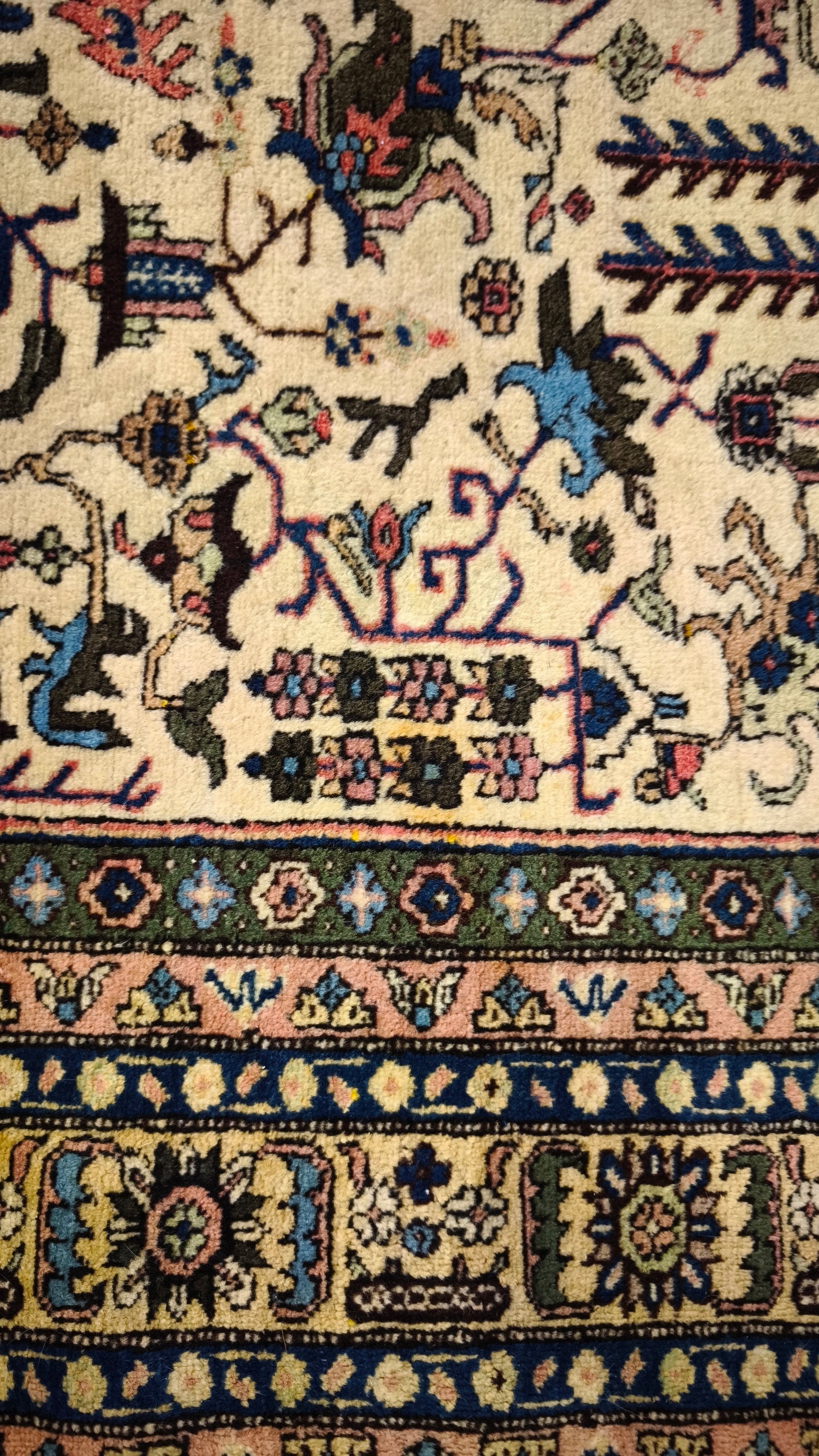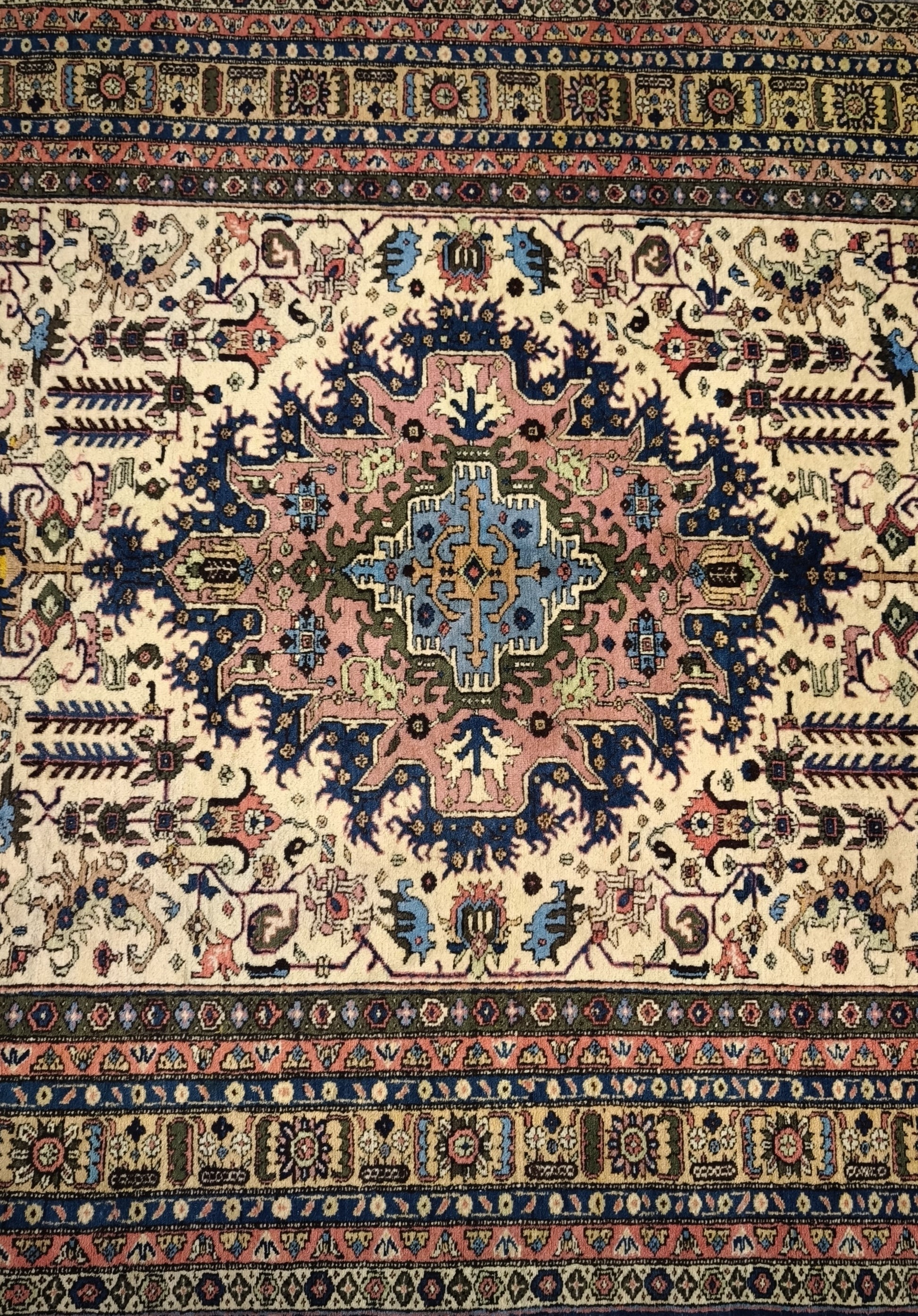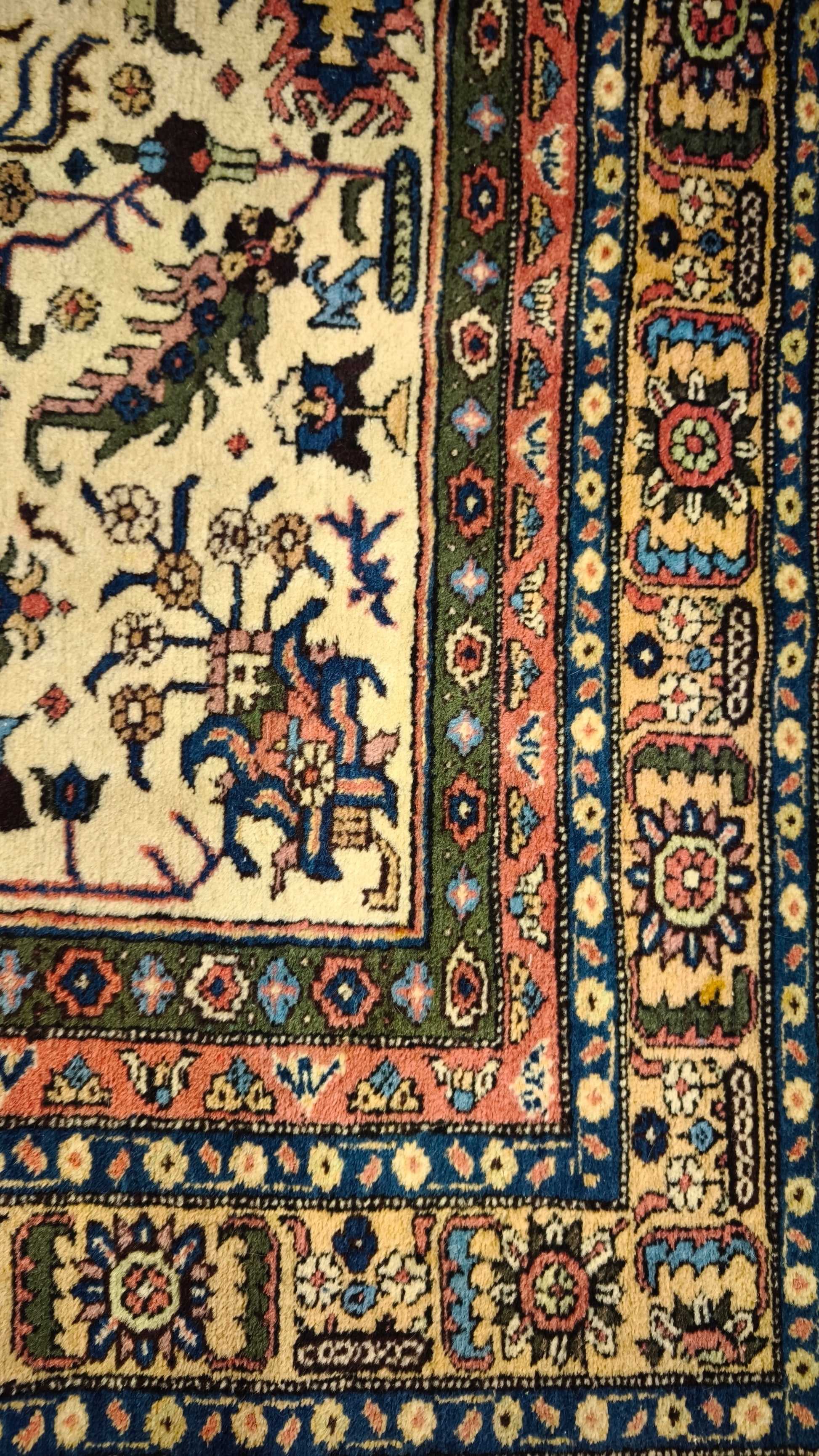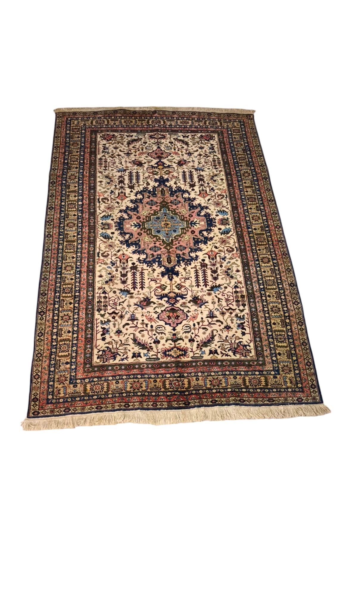 Presenta qualche segno del tempo e dell'uso, le frange laterali hanno un difetto, sono presenti delle piccole macchie, le foto sono parte integrante della descrizione