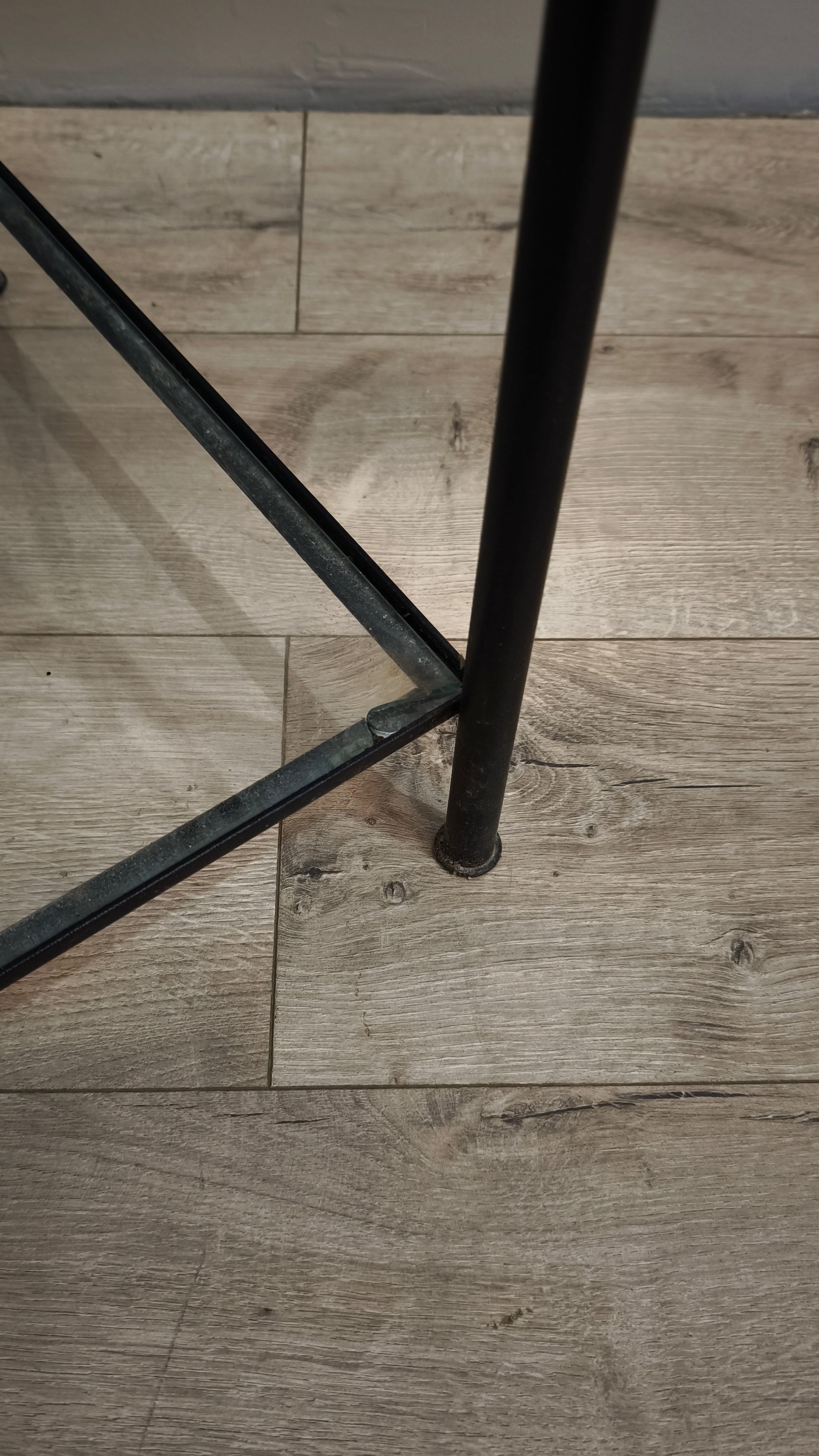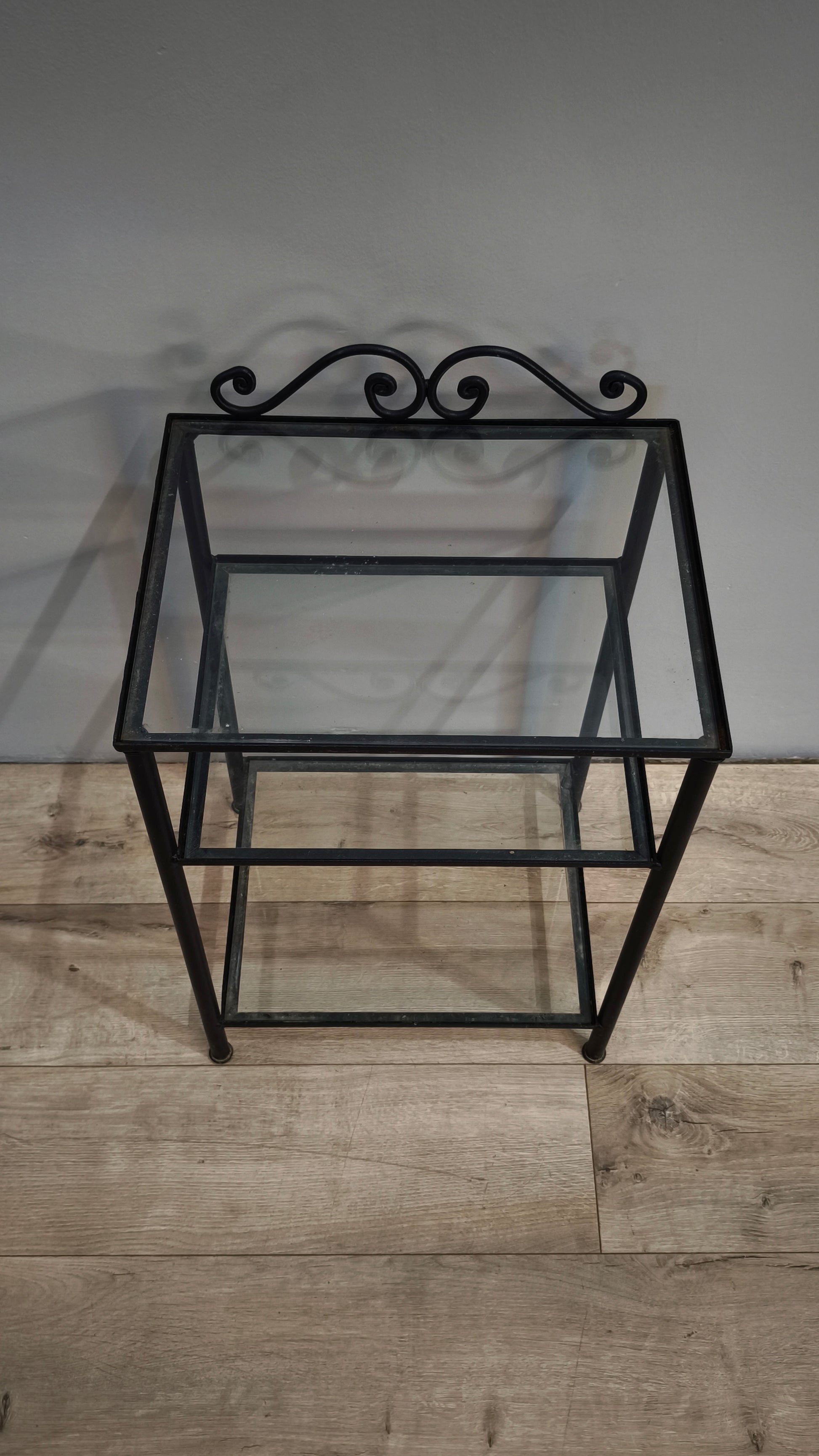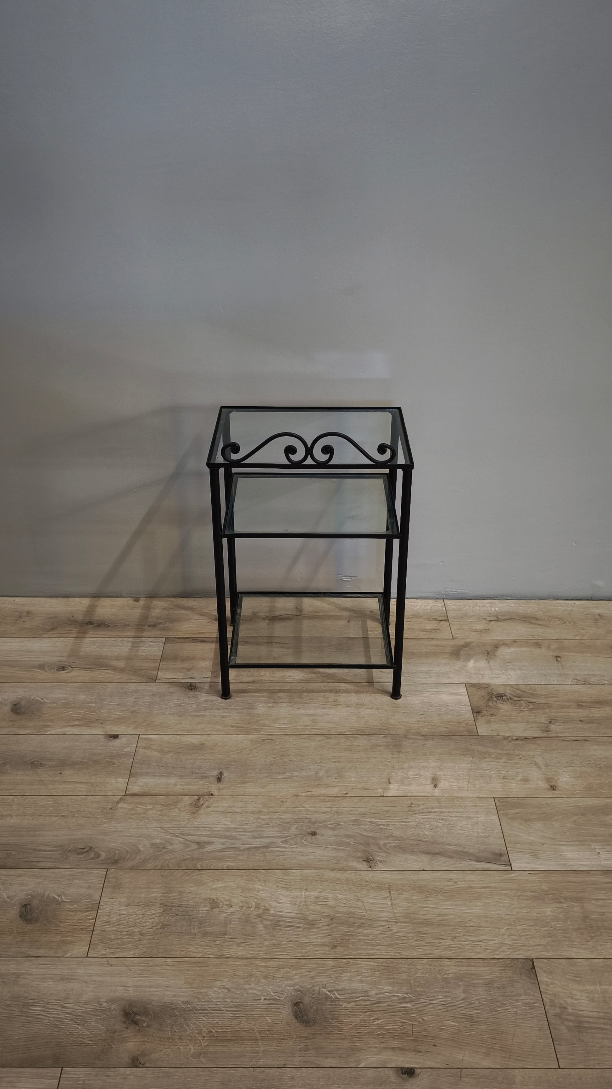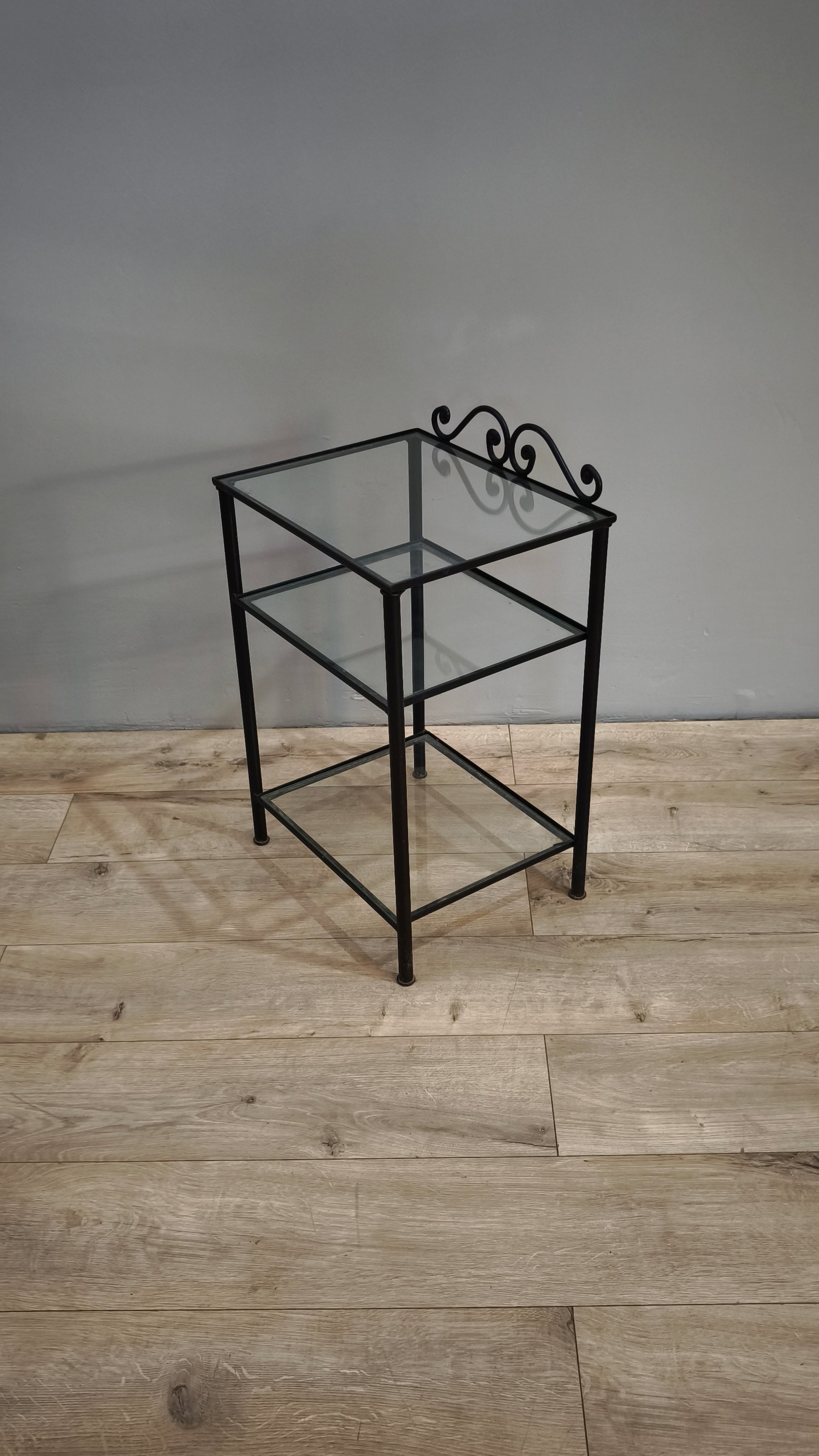 Coppia di comodini in ferro e vetro composti da tre ripiani