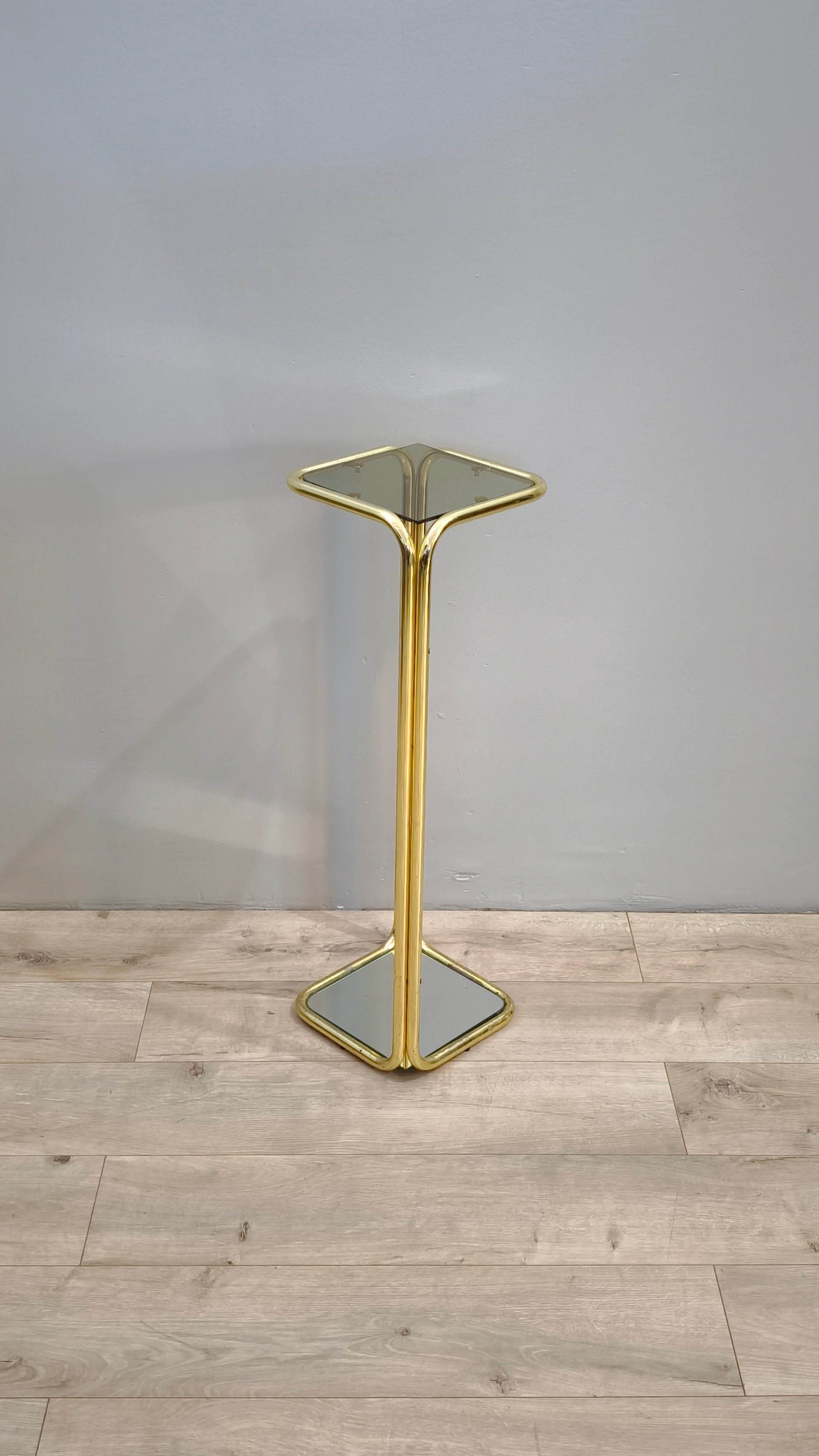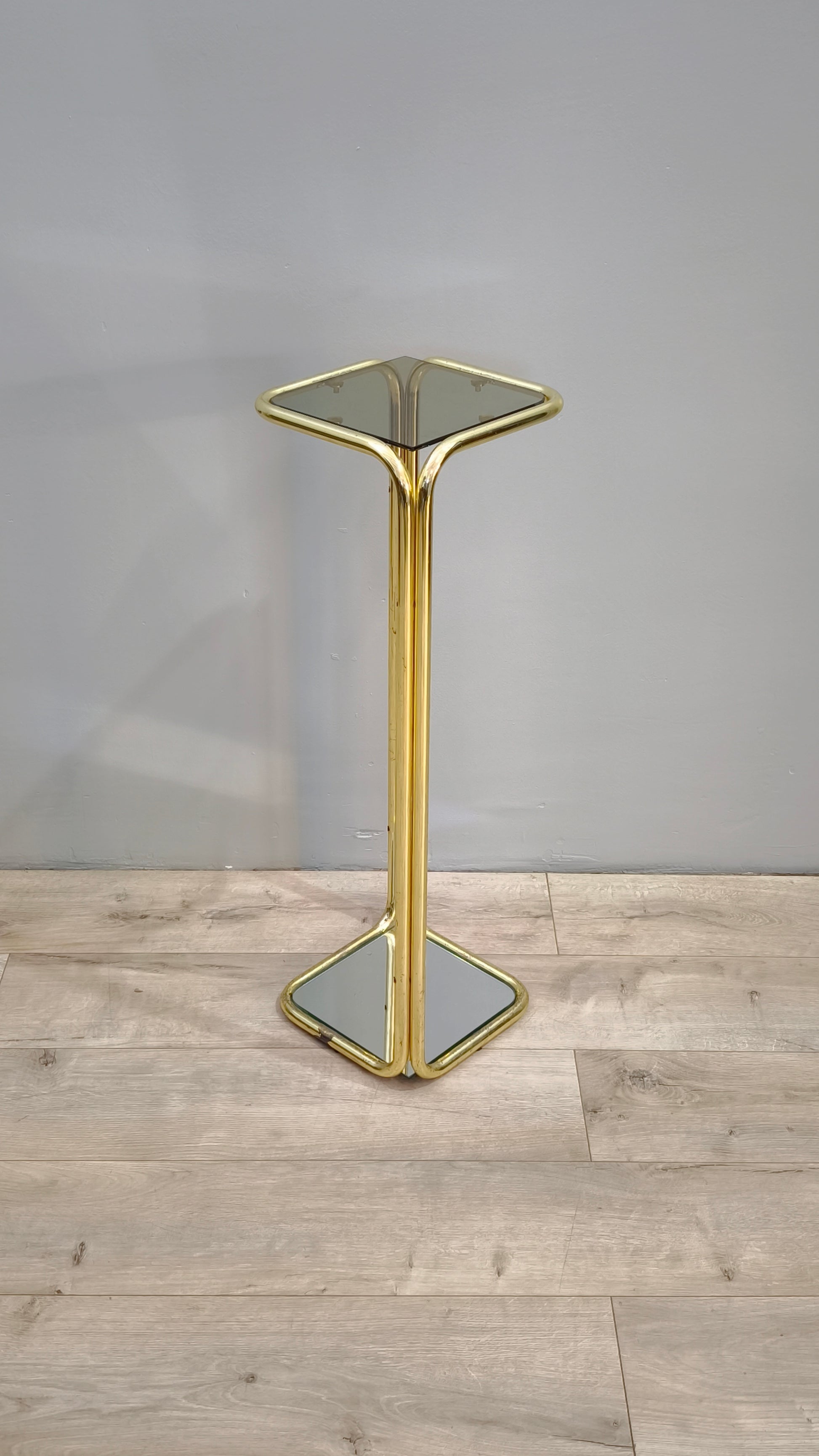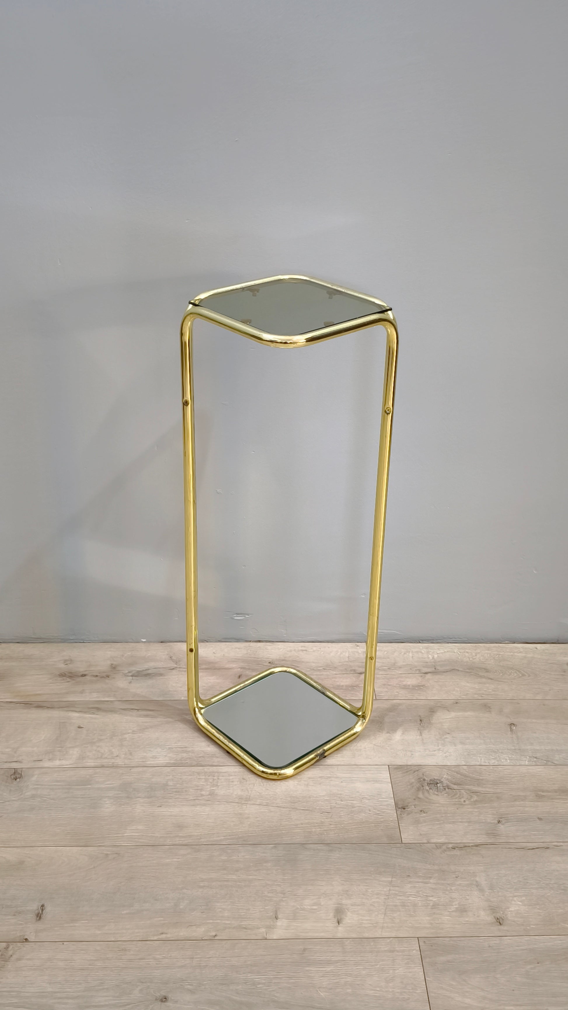 Alzata in metallo dorato, presenta due ripiani, uno in vetro ed il secondo a specchio.
