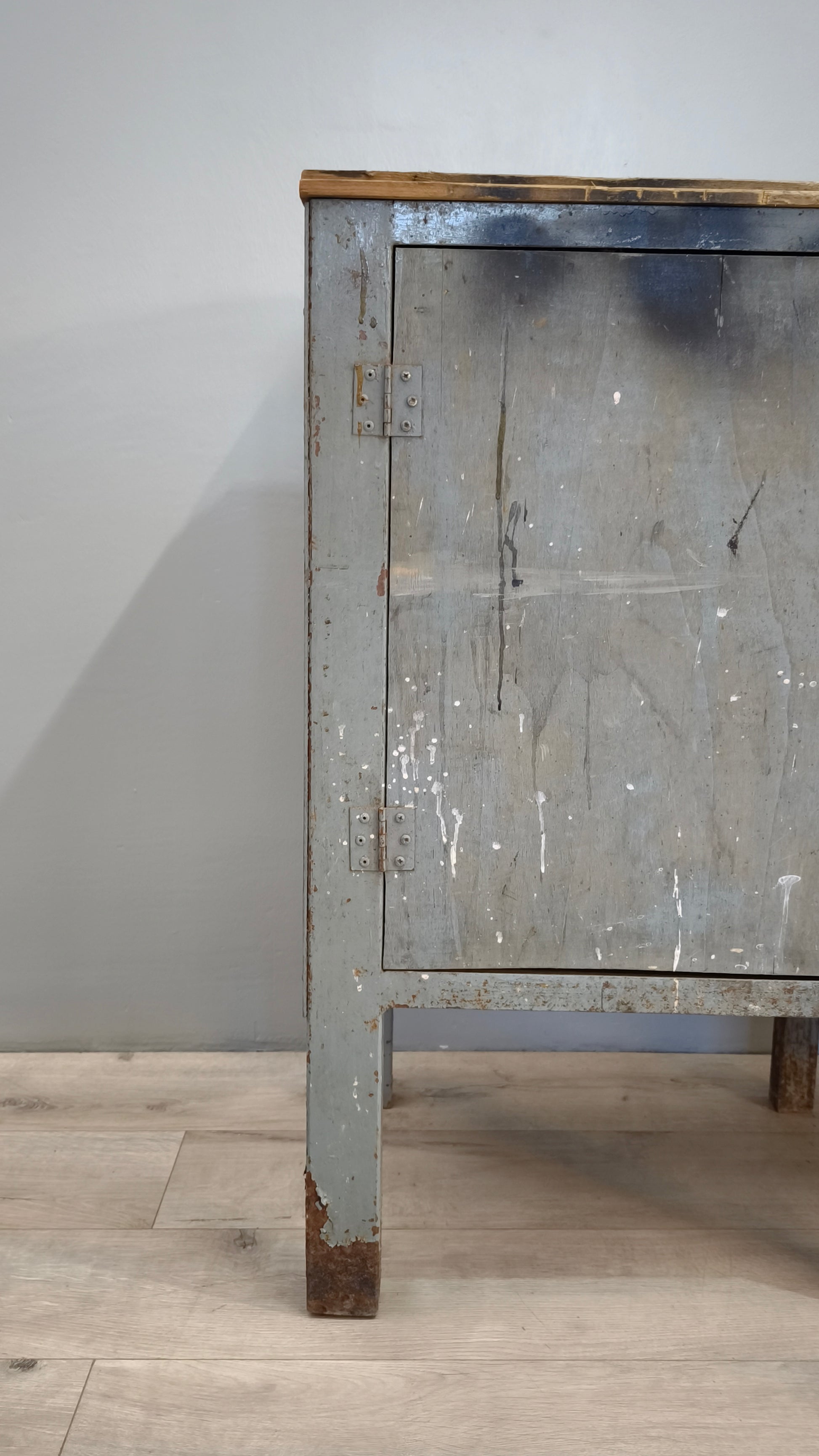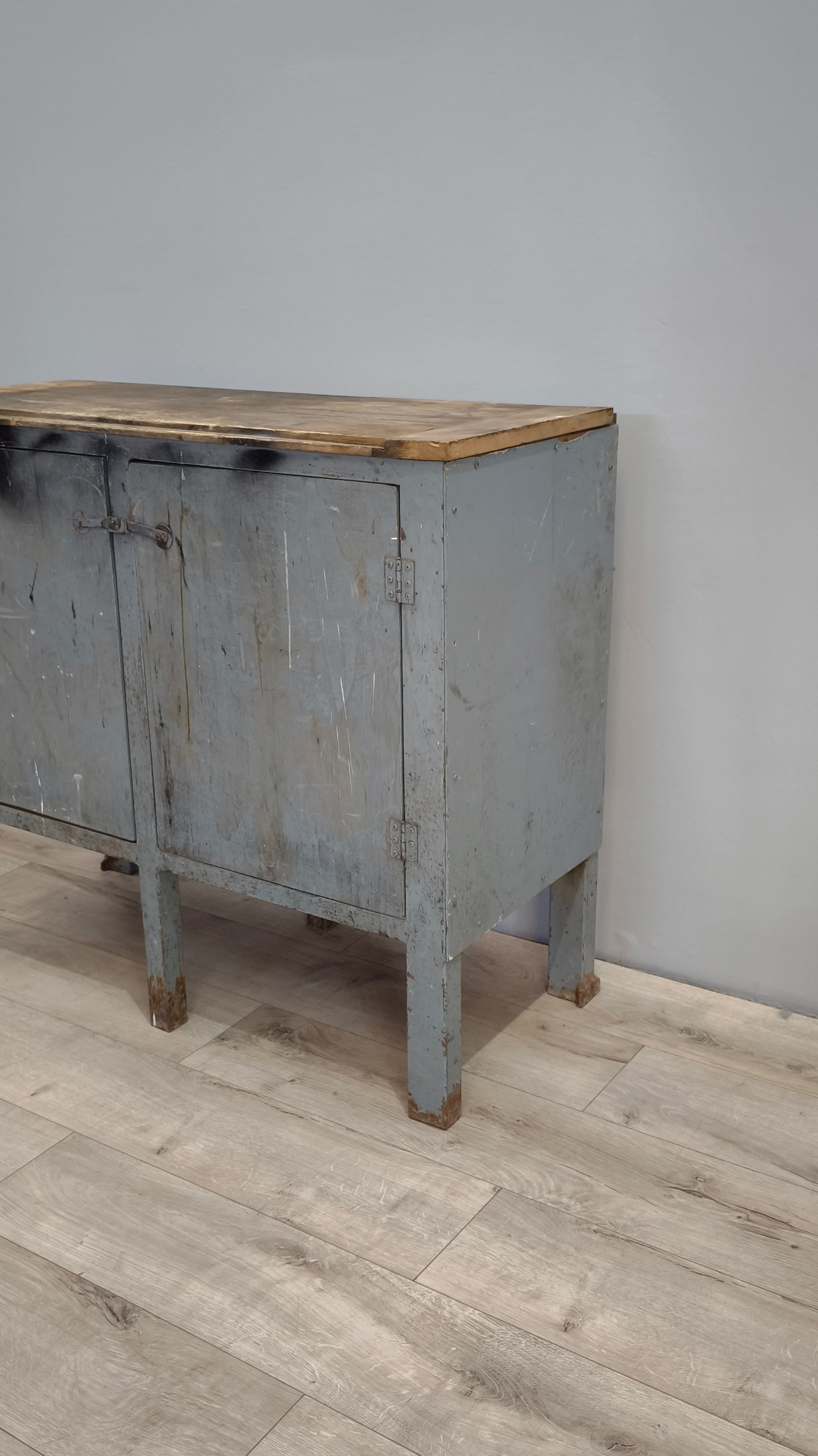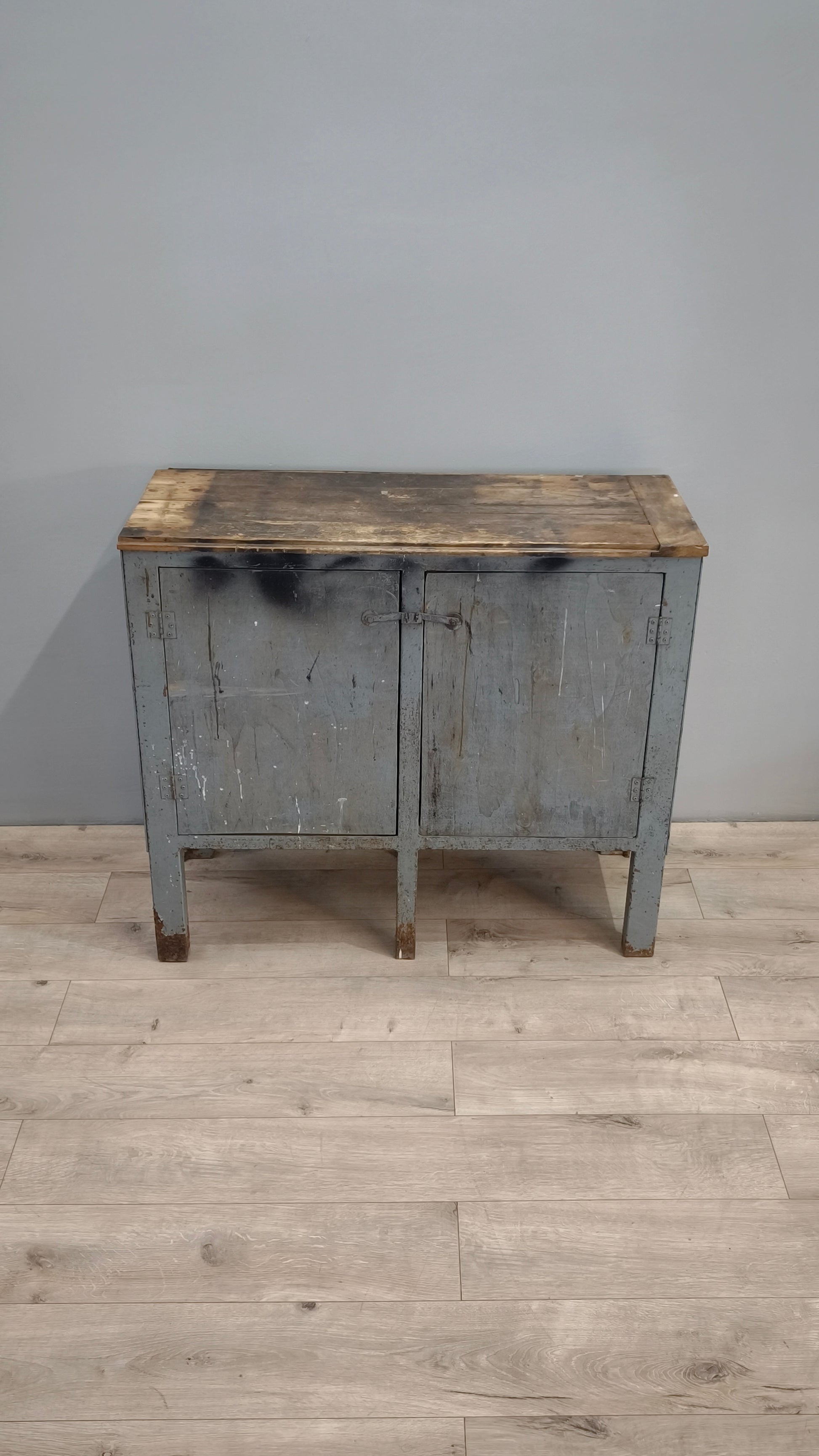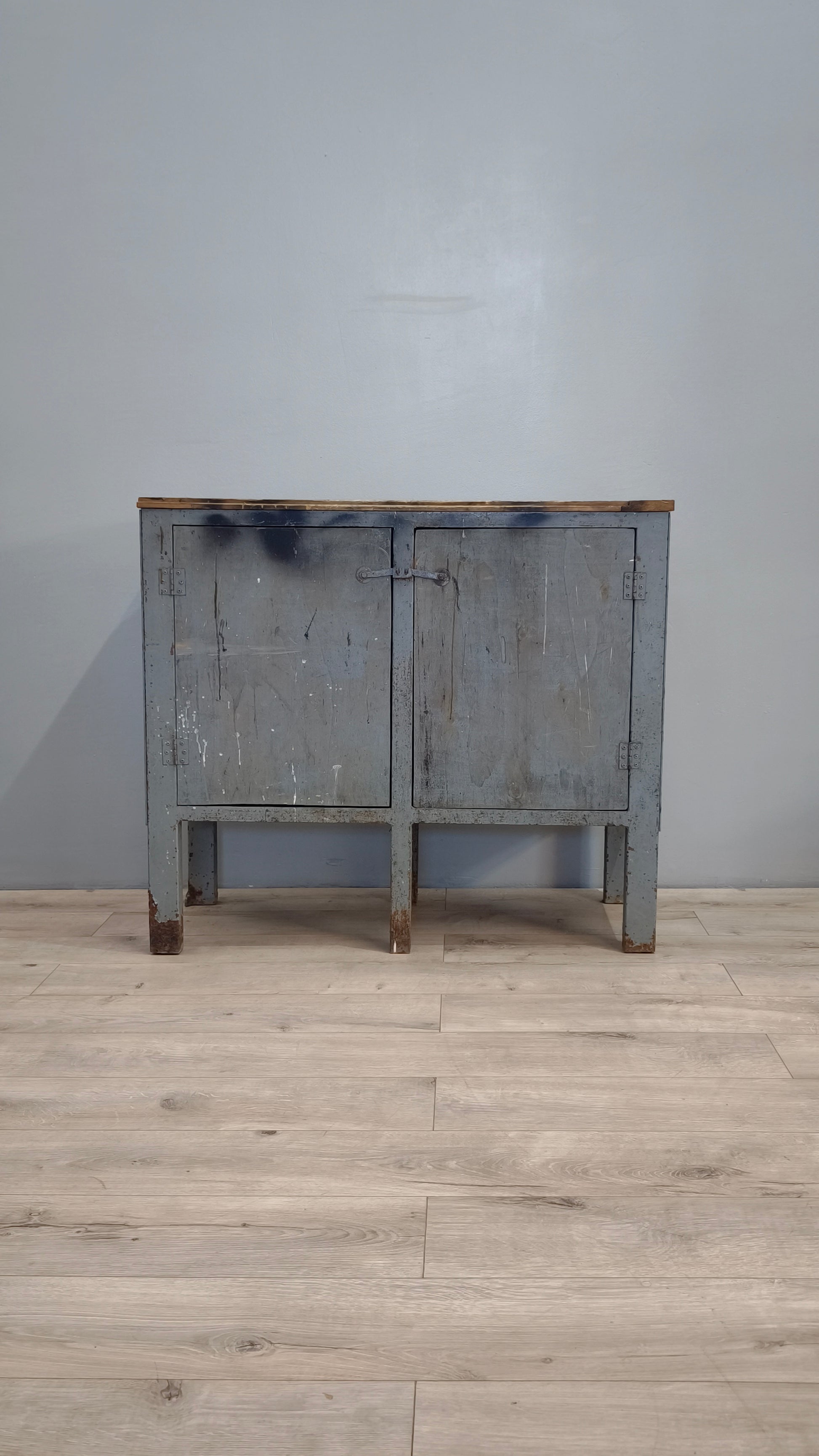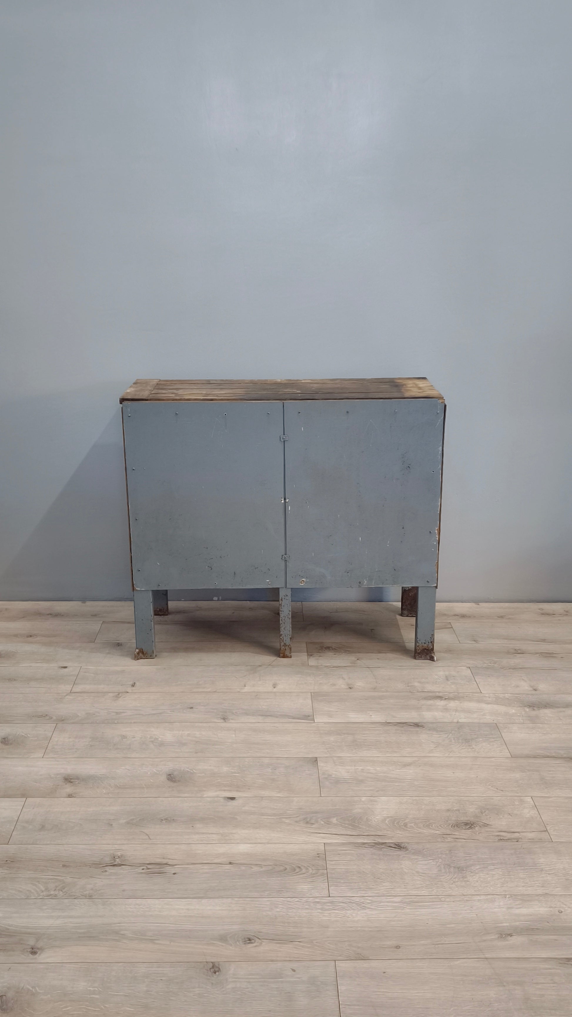 Credenza da lavoro due sportelli in ferro con piano in legno