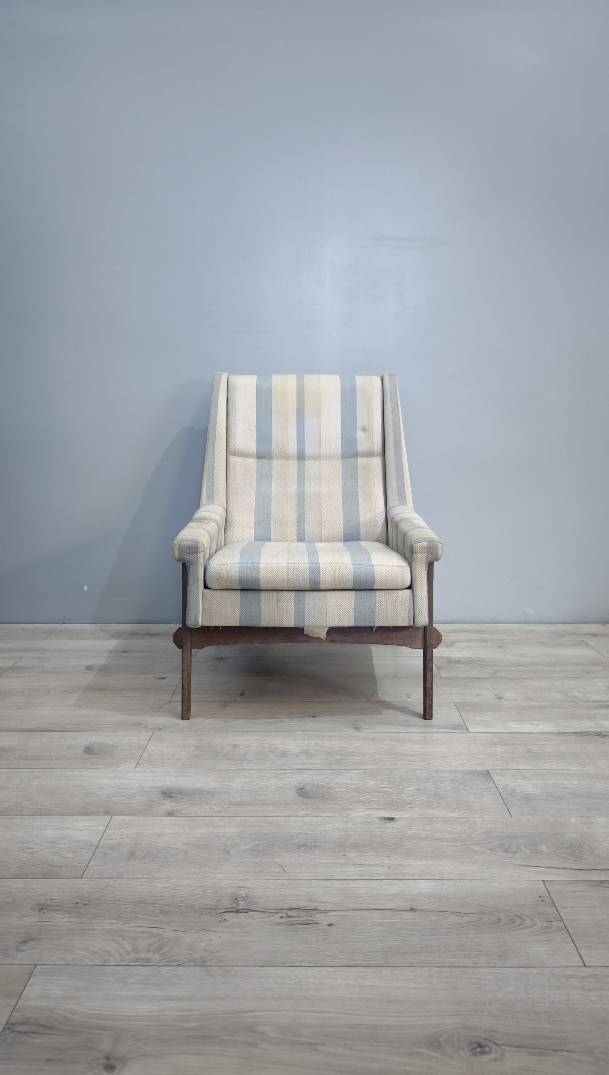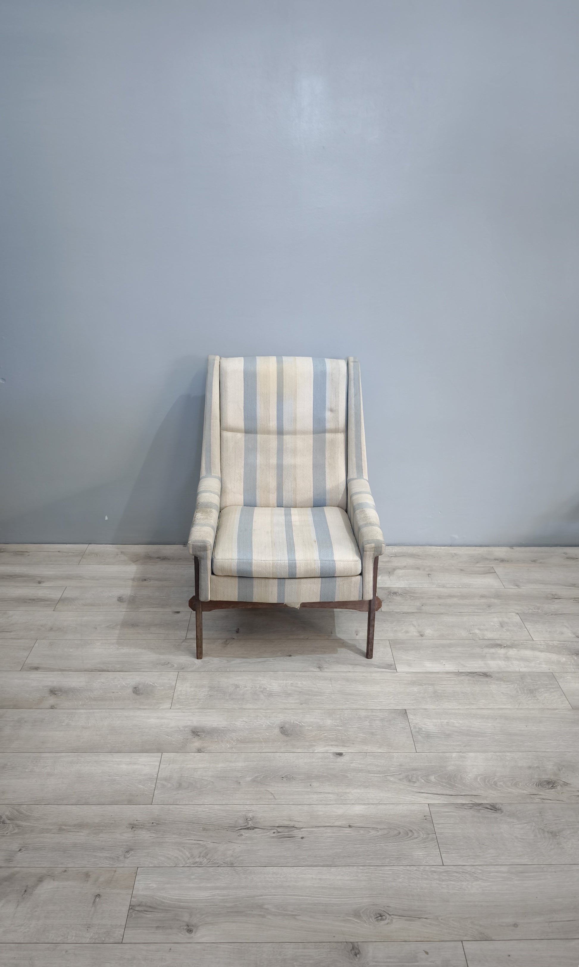82478 Poltrona originale anni '60 con struttura in teak e tessuto a righe