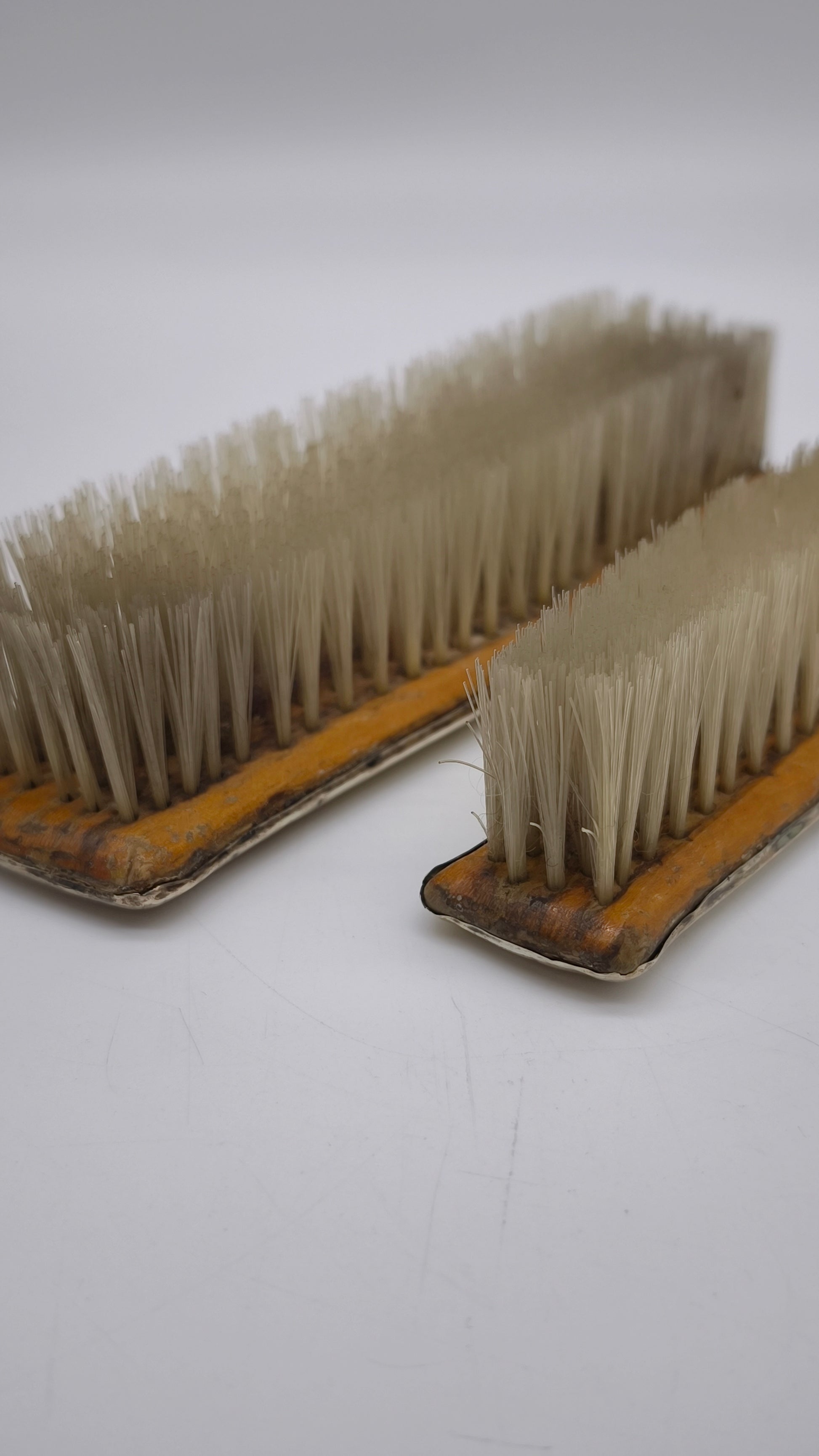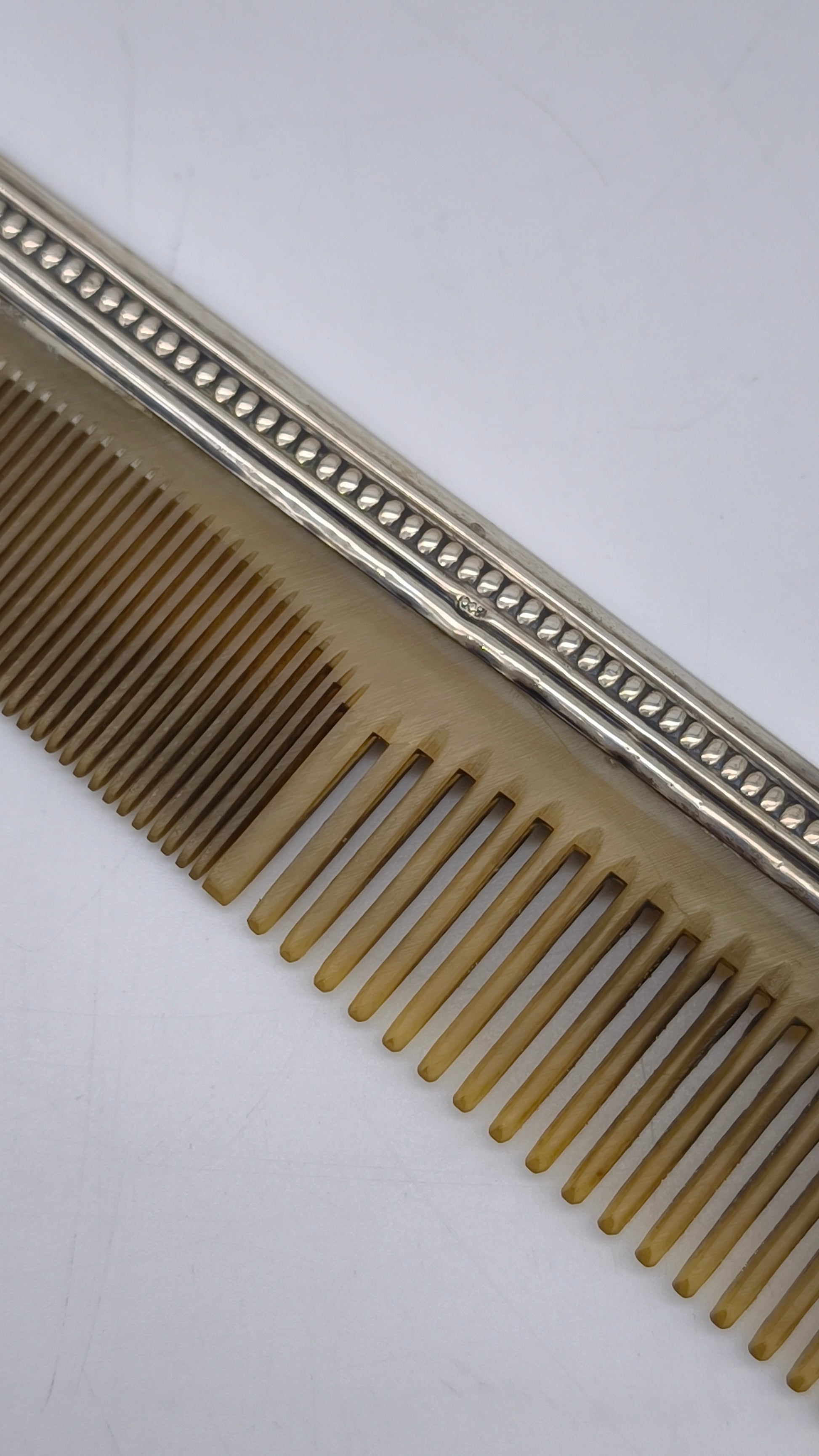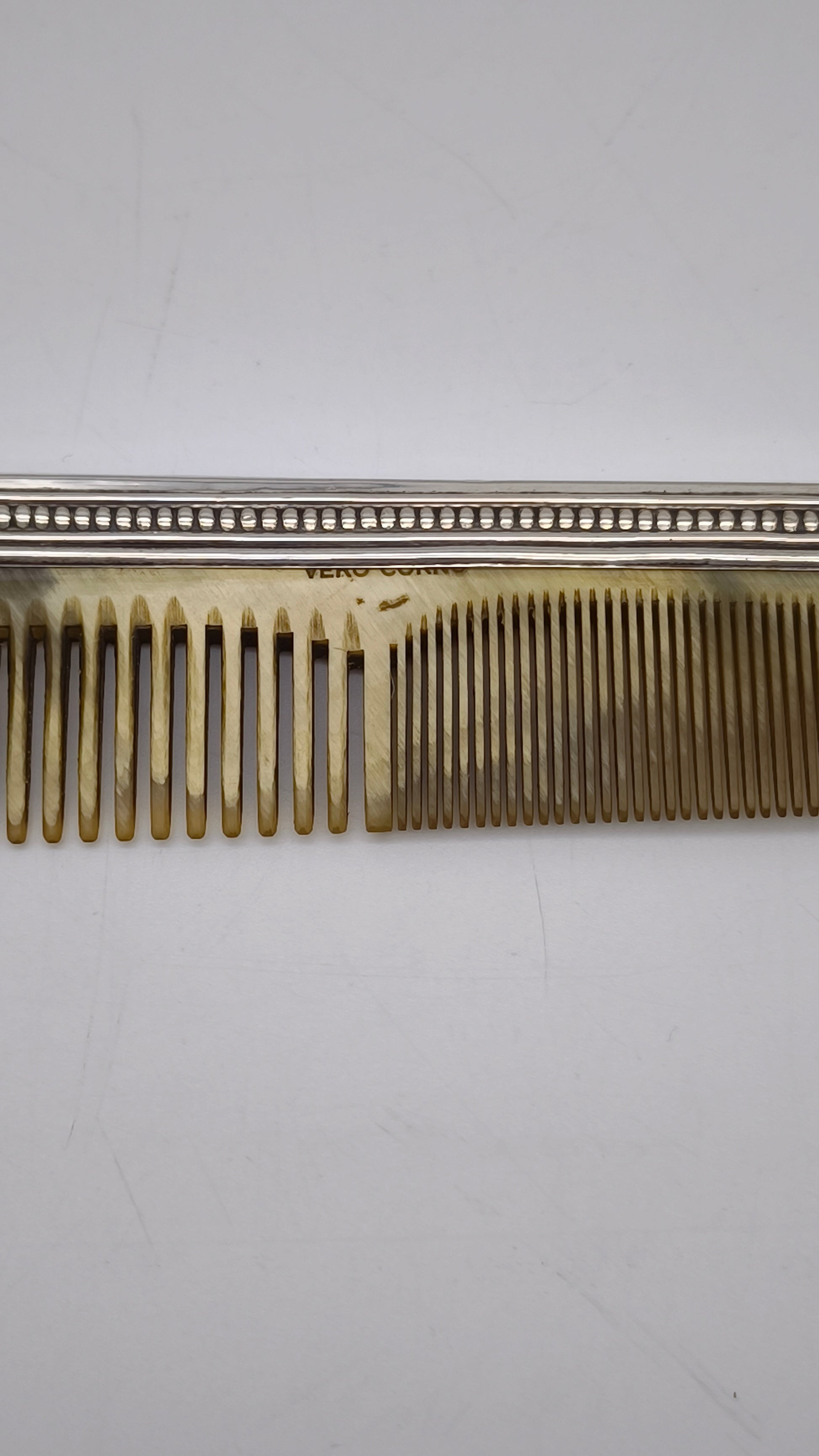 Il pettine è realizzato in corno, le spazzole hanno un'anima in legno e setole sintetiche