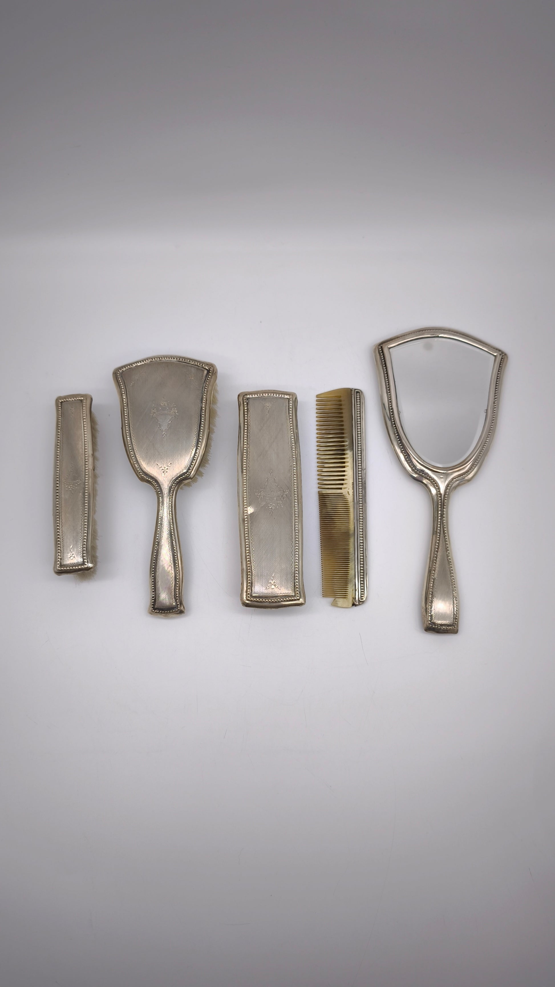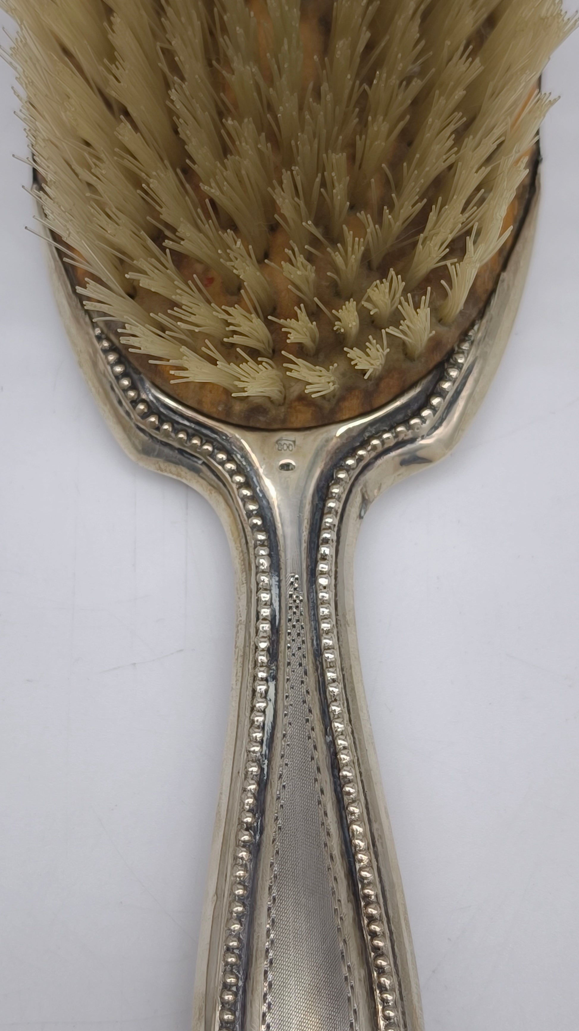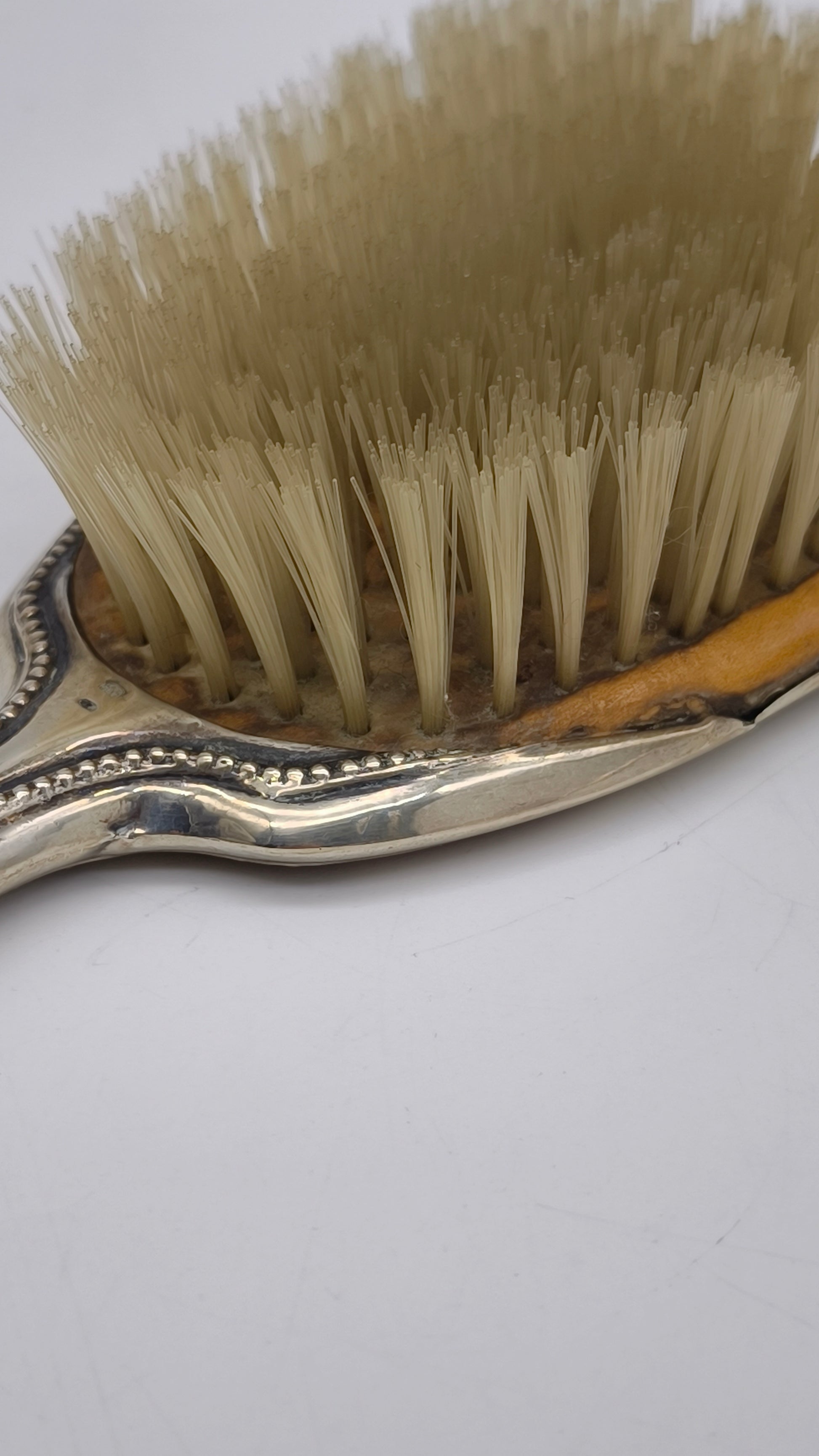 Il pettine è realizzato in corno, le spazzole hanno un'anima in legno e setole sintetiche