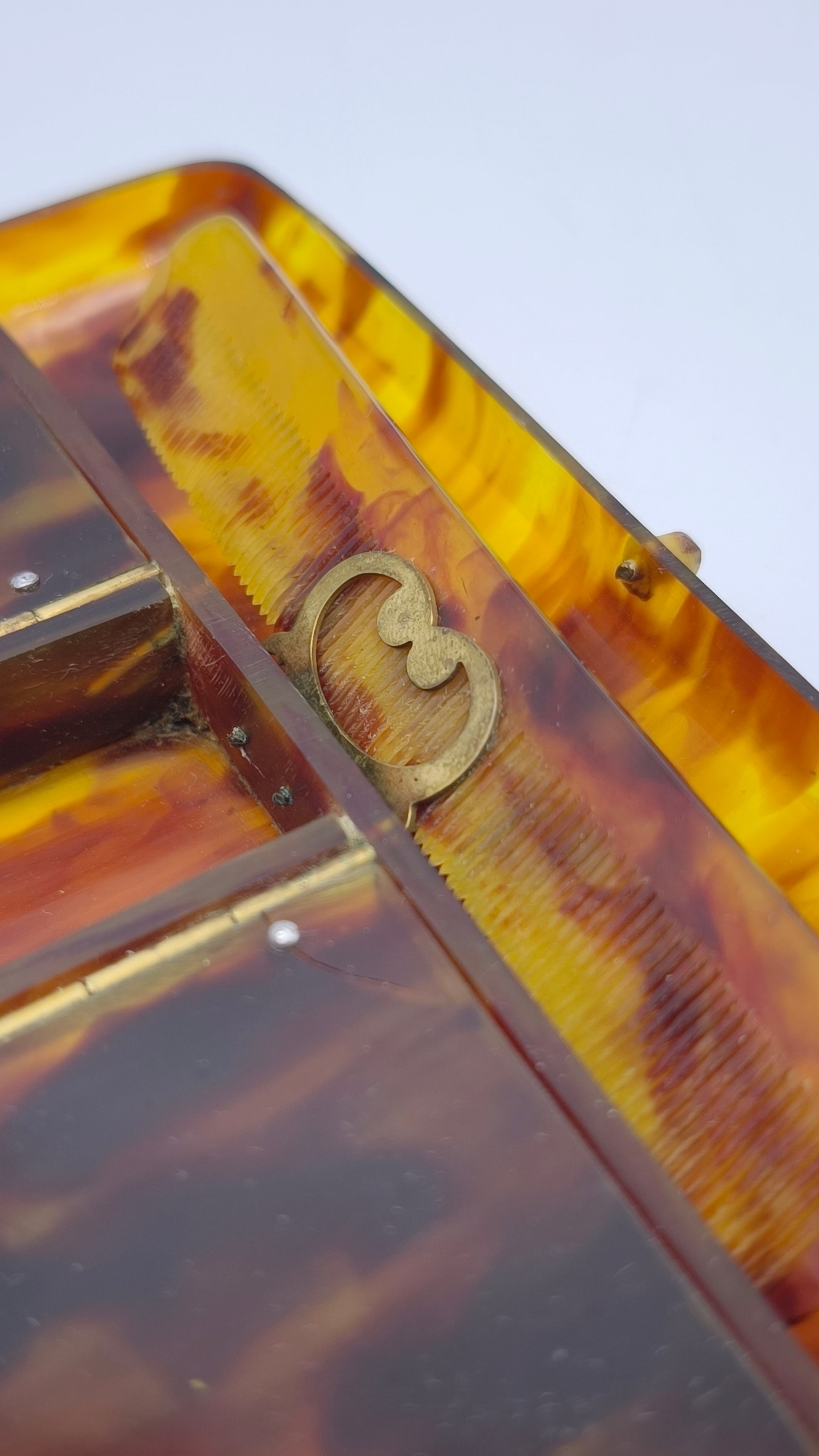 Cofanetto da toletta vintage in bachelite, all'interno un pettine