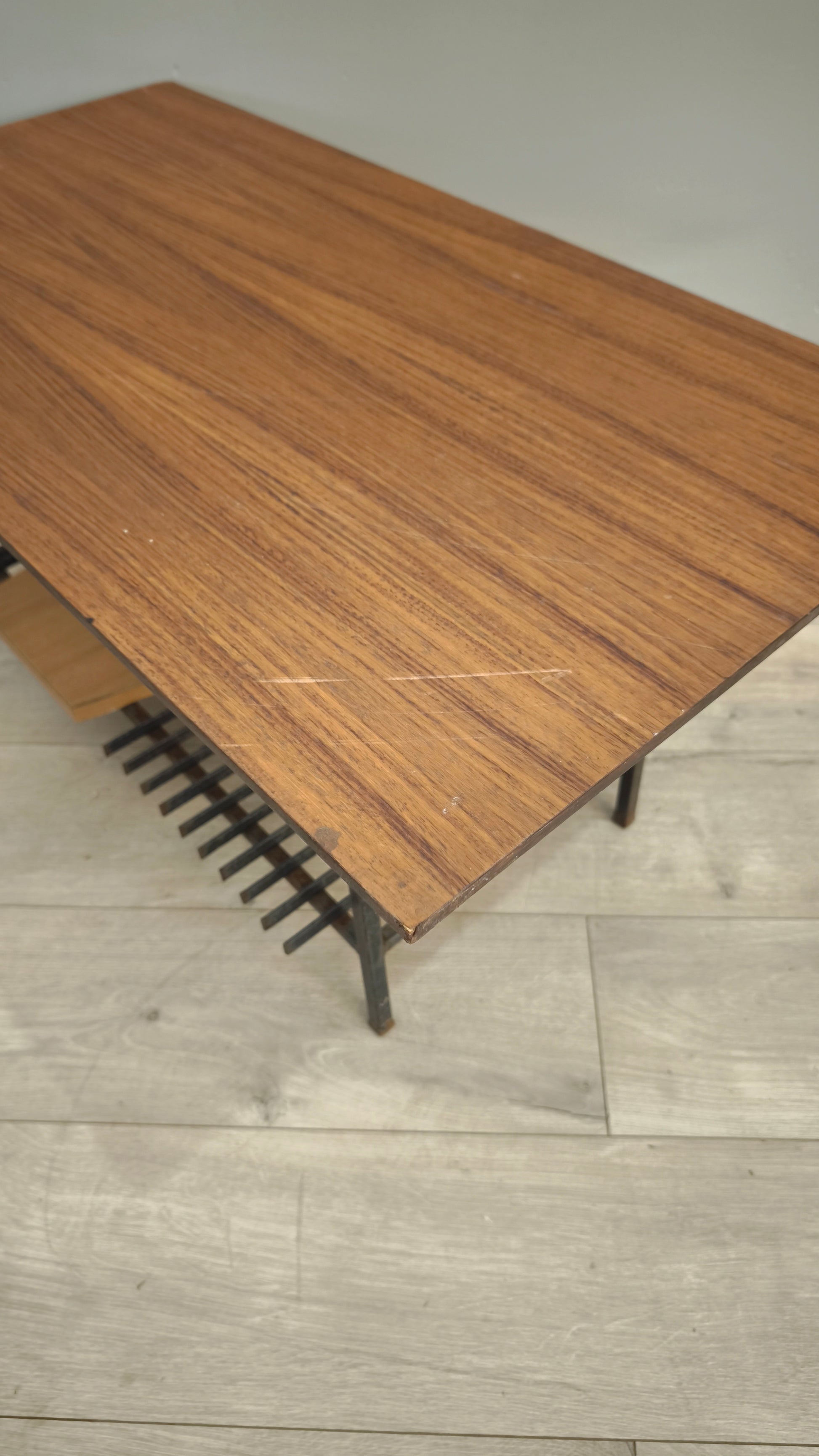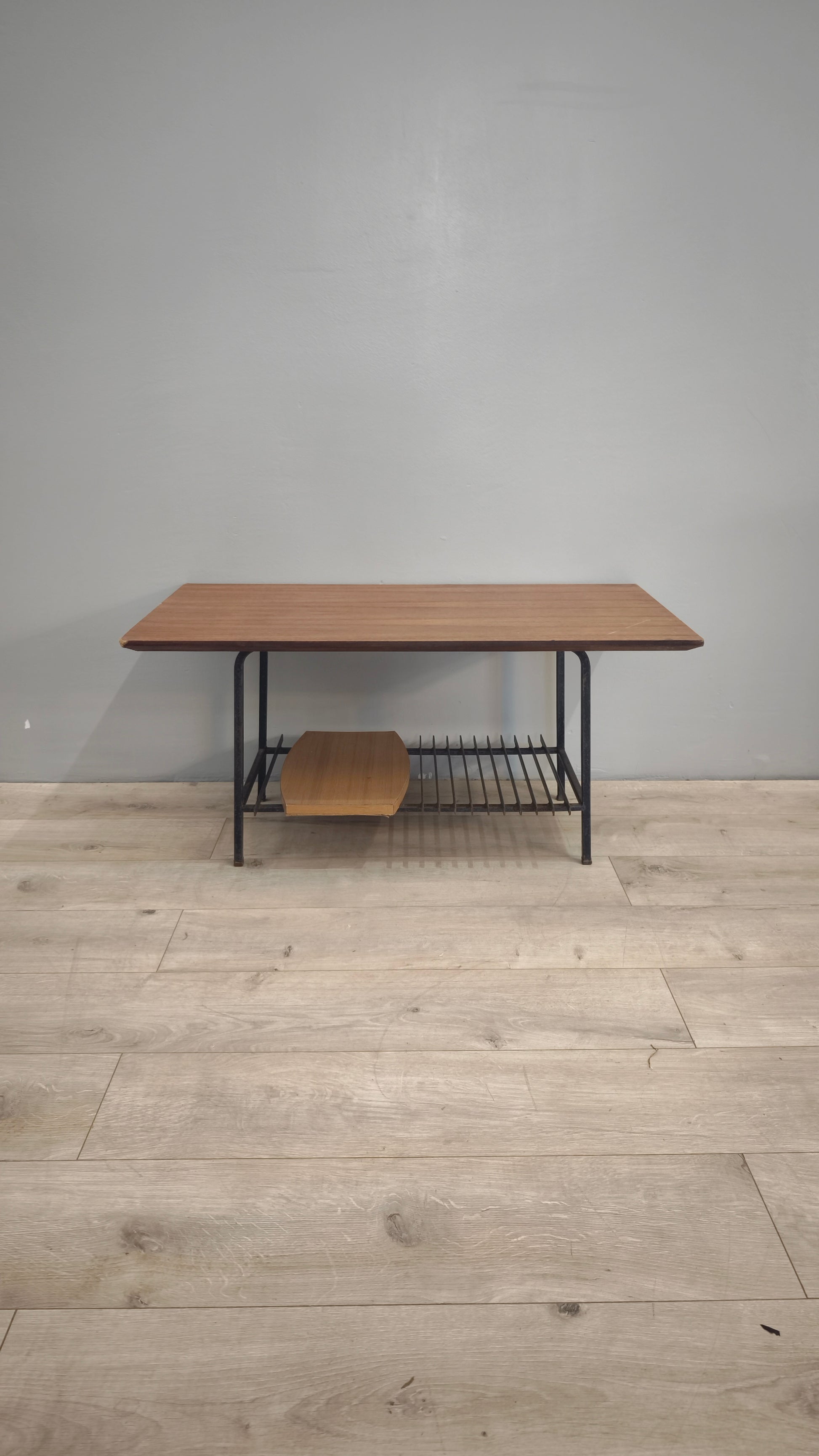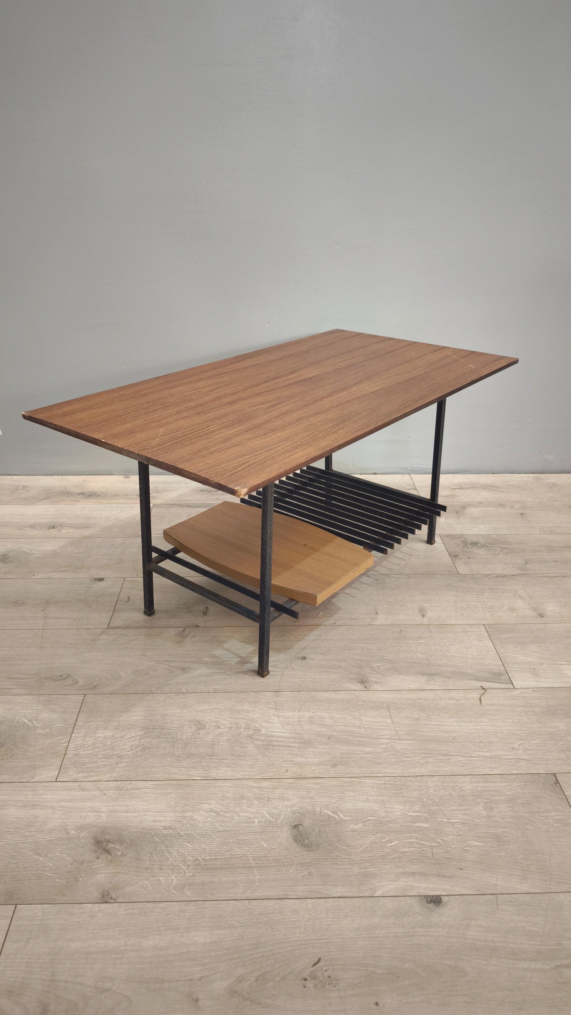 Tavolo basso con base in ferro e un ripiano nella parte inferiore