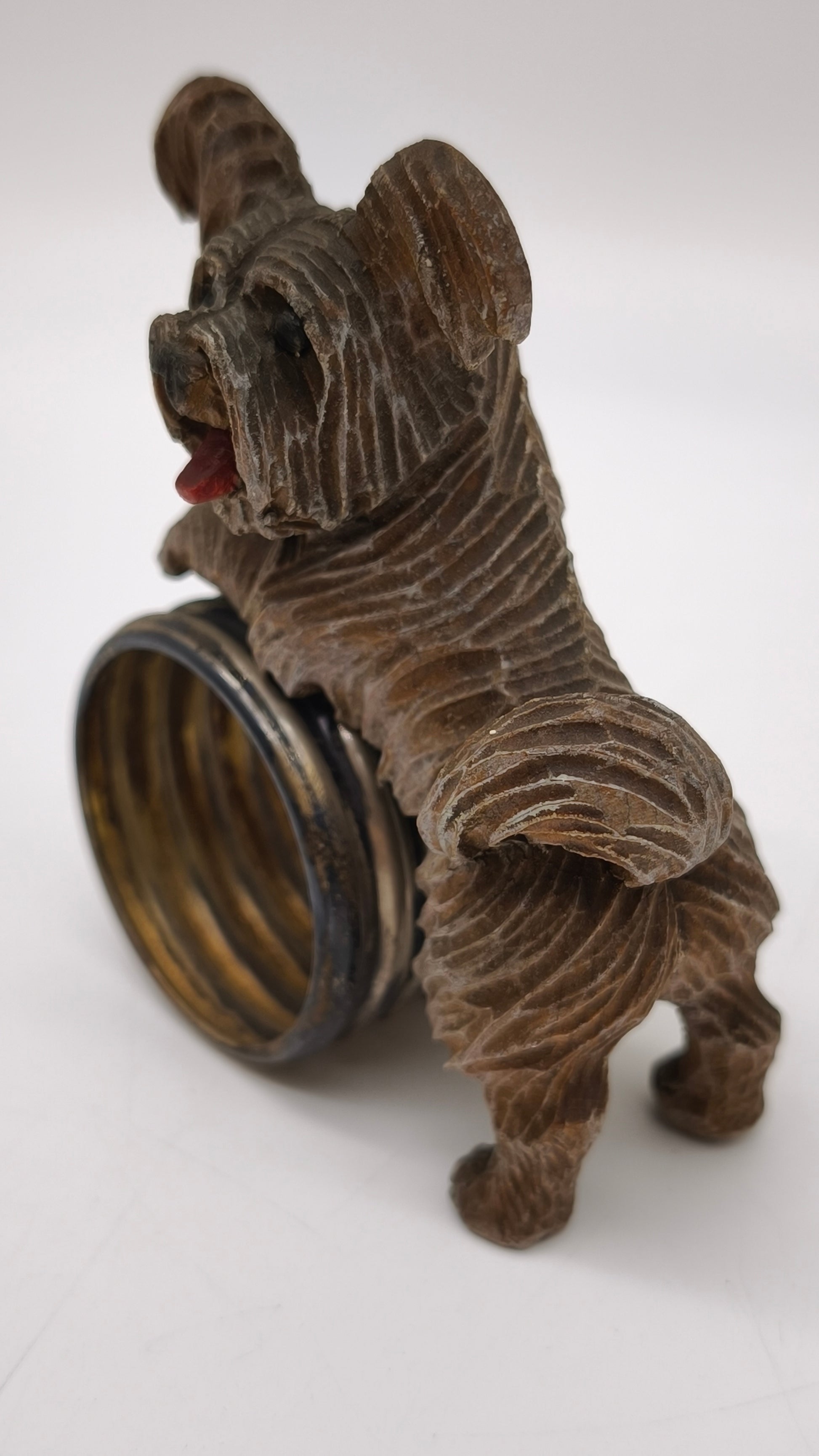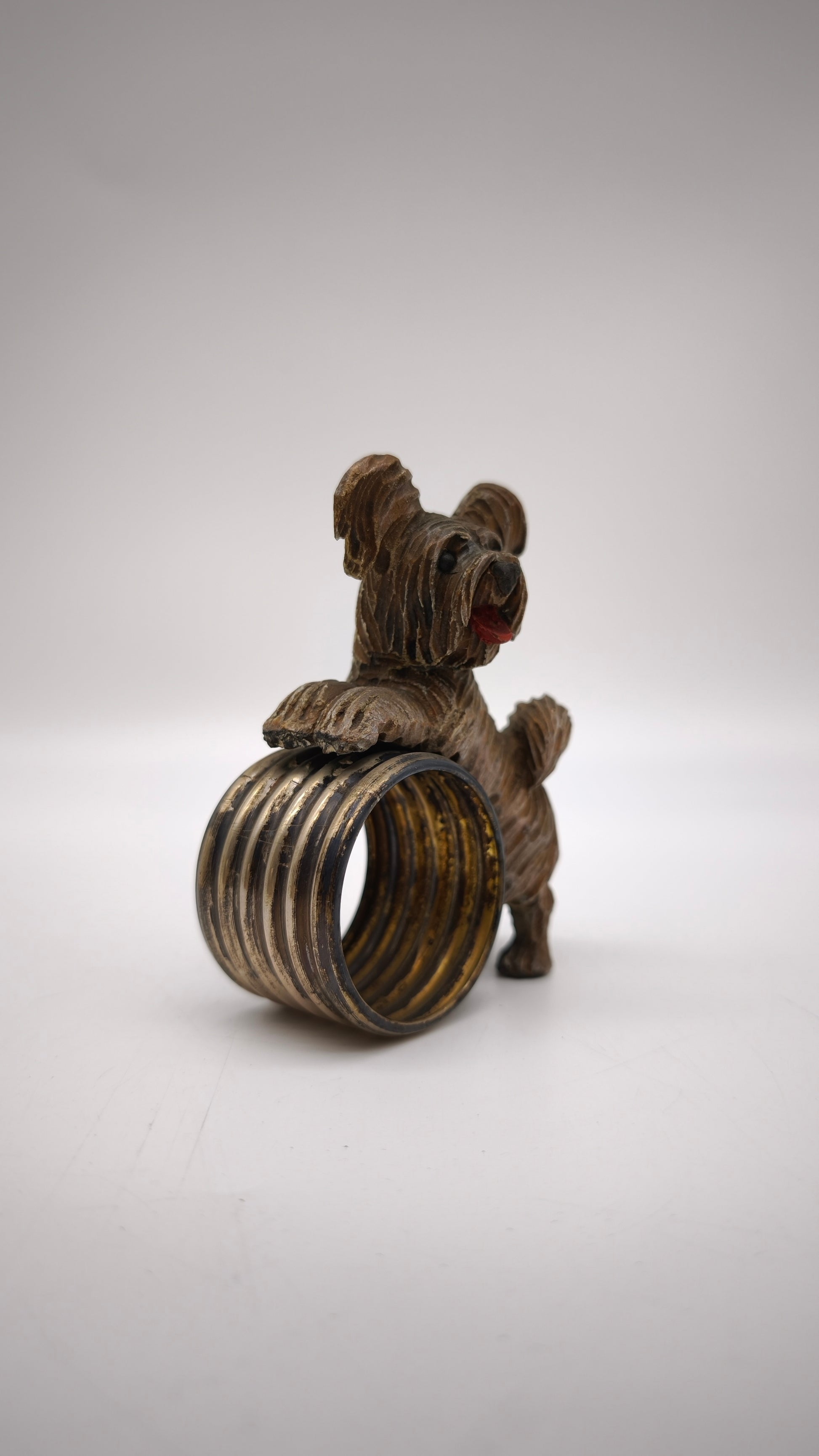 83234 Porta tovagliolo in argento con cane intagliato in legno