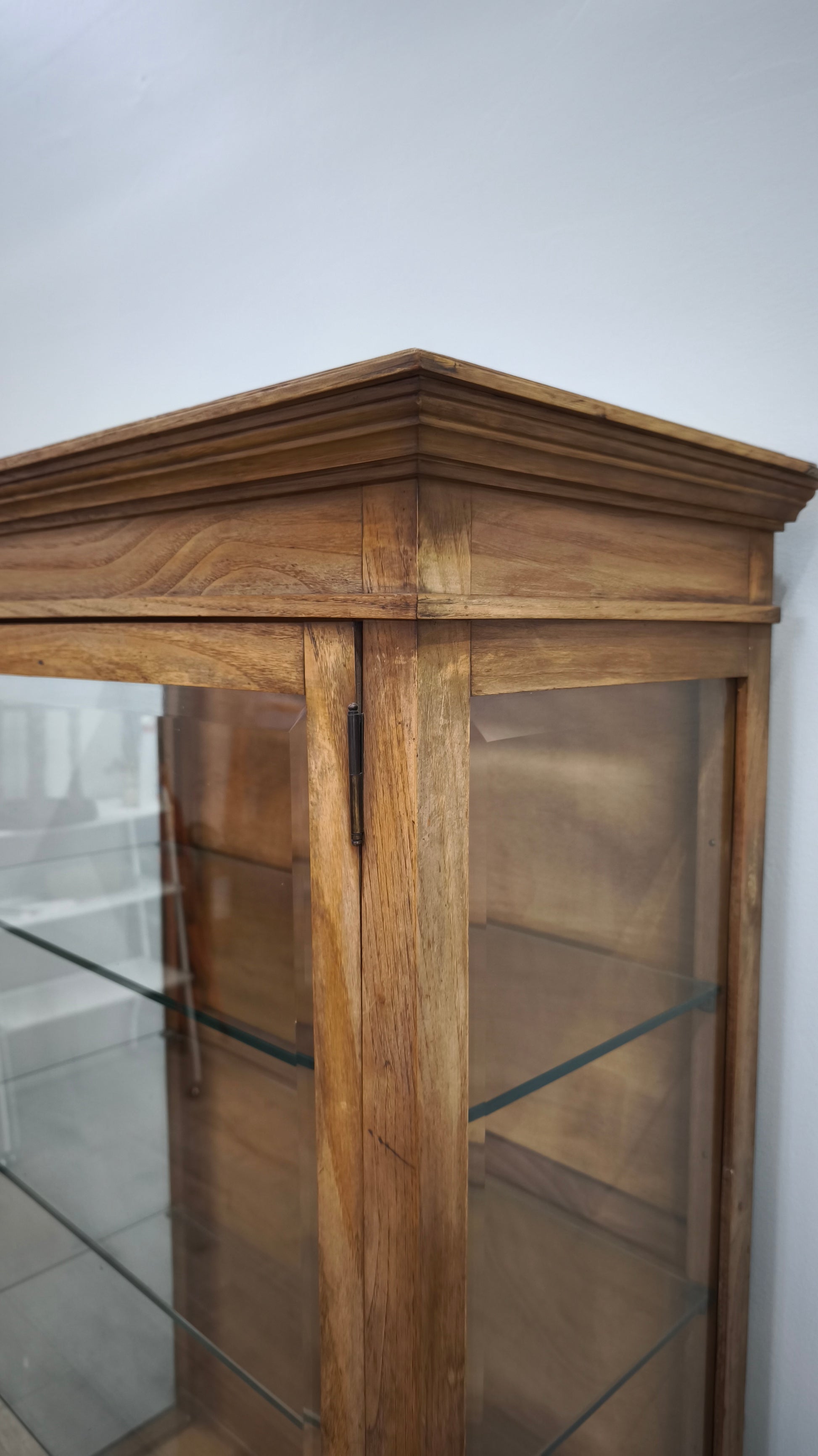 Vetrina in legno un'anta con tre ripiani in vetro e uno in legno