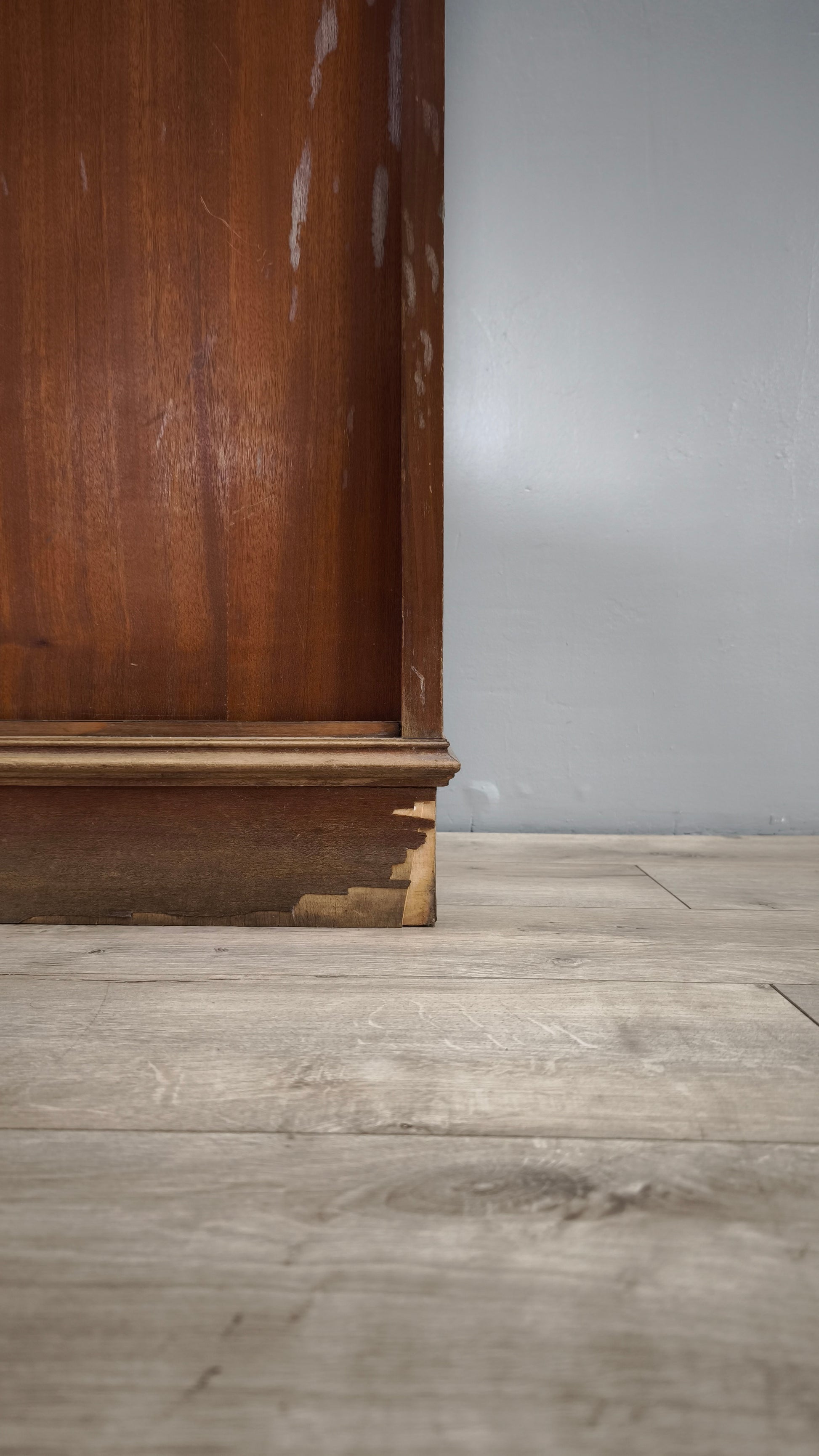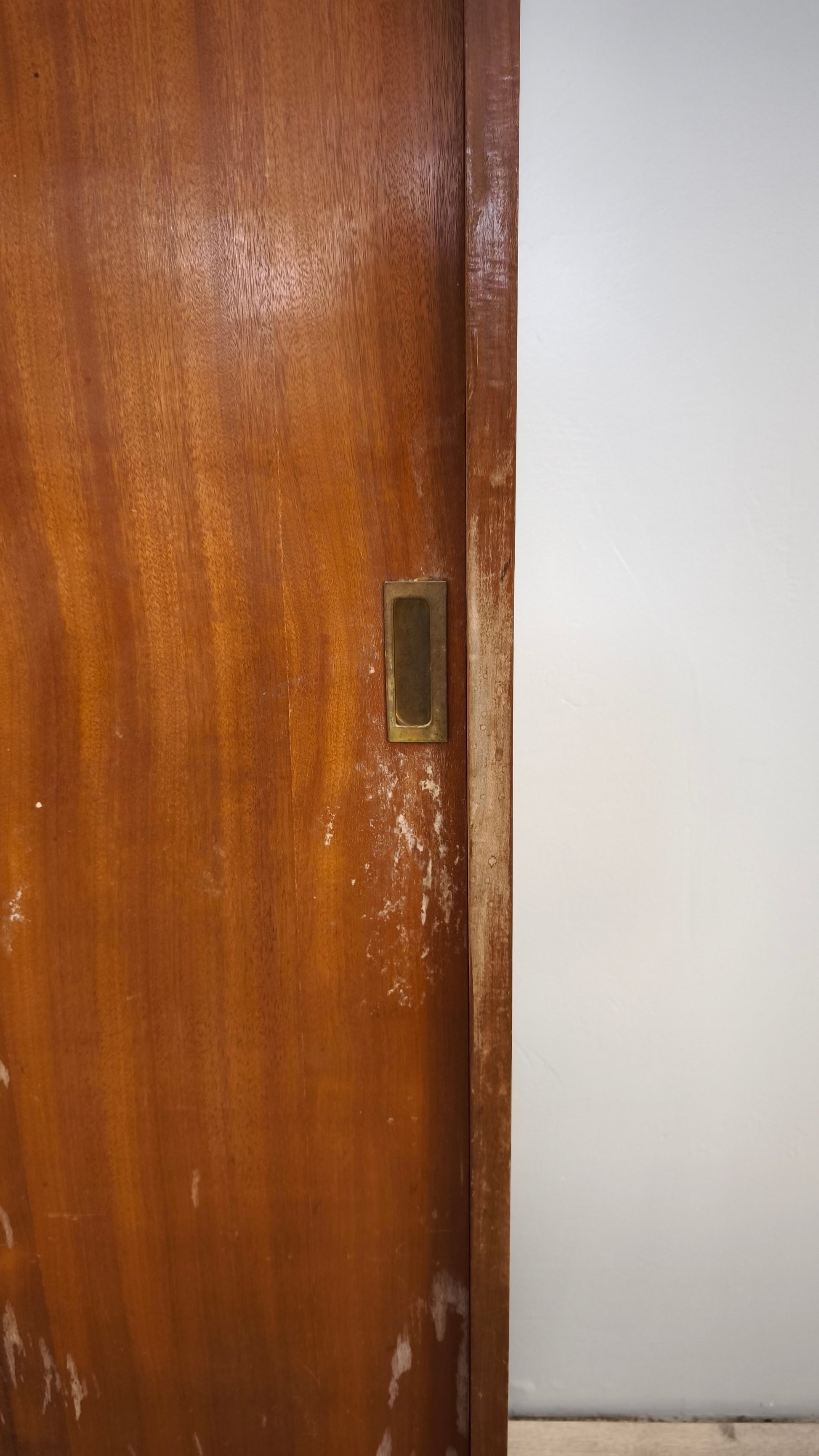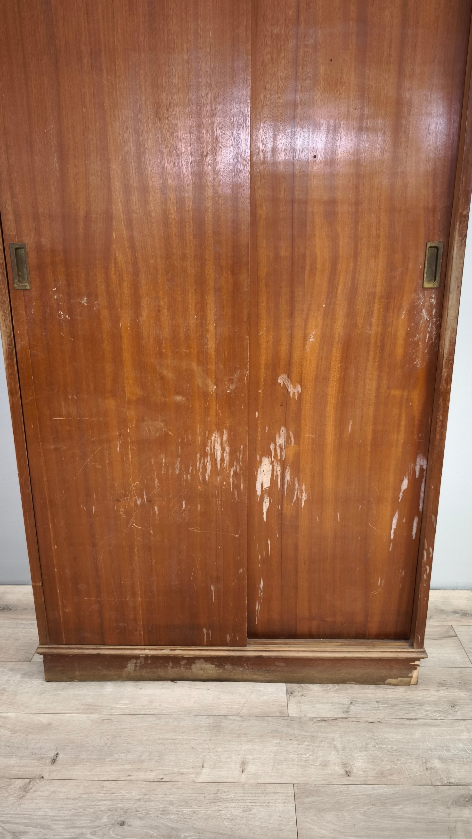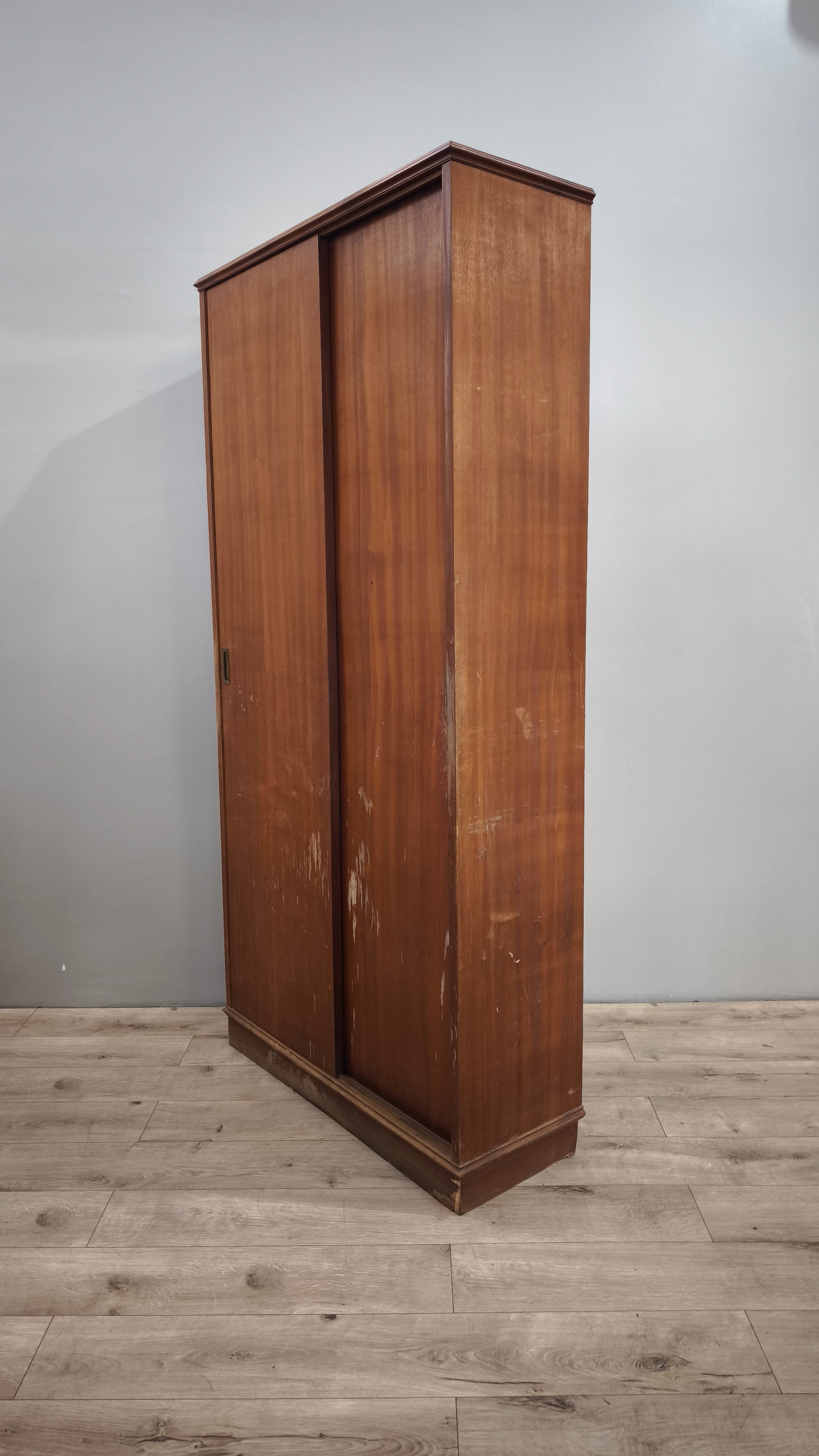Armadio due ante scorrevoli, nella parte sinistra troviamo quattro ripiani, nella parte destra un vano appendiabiti