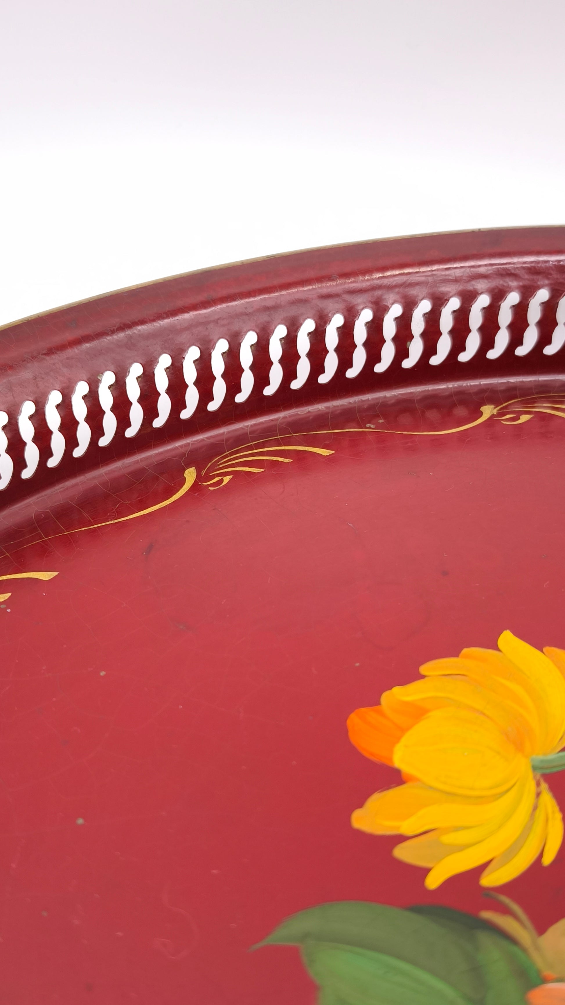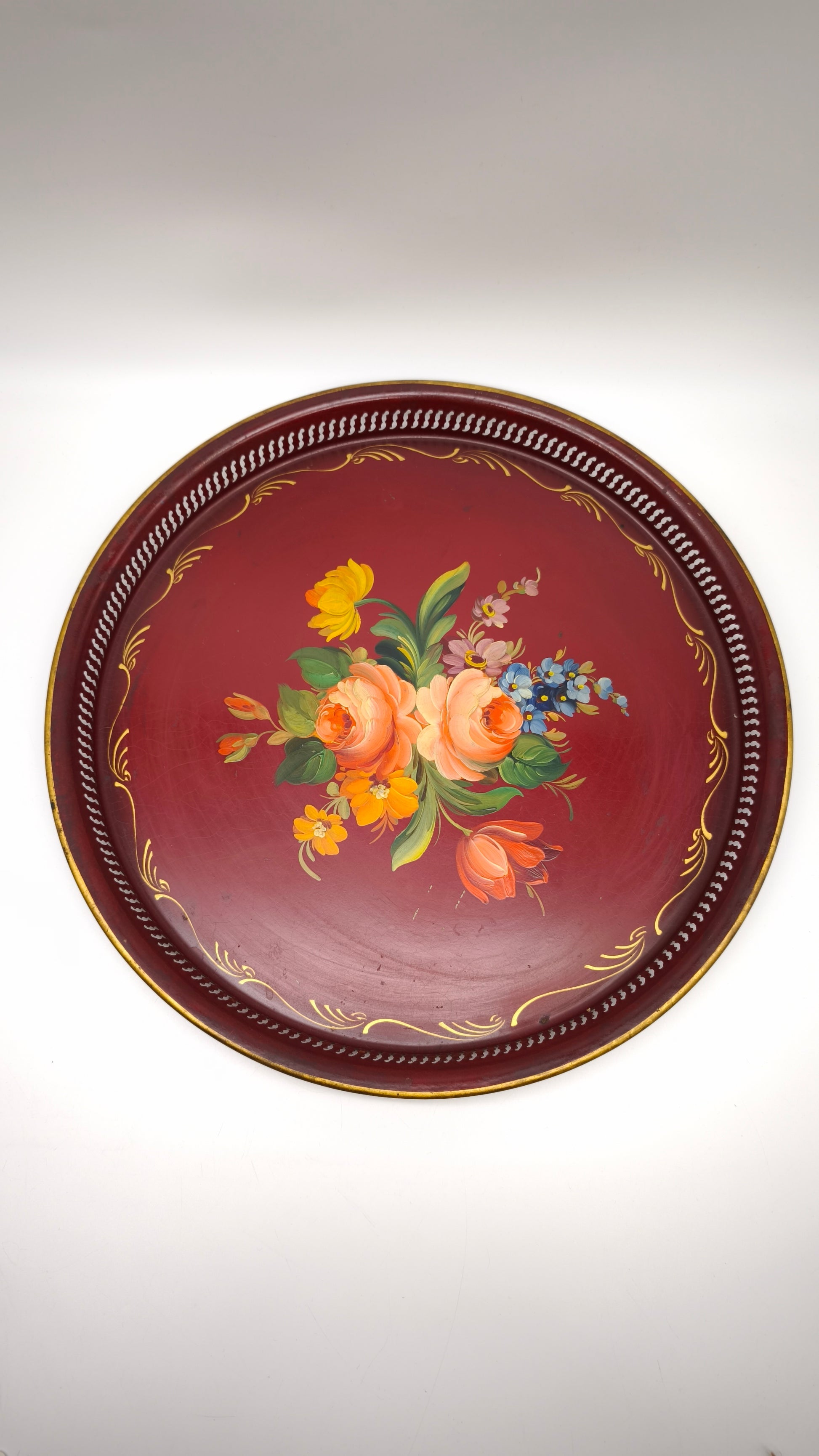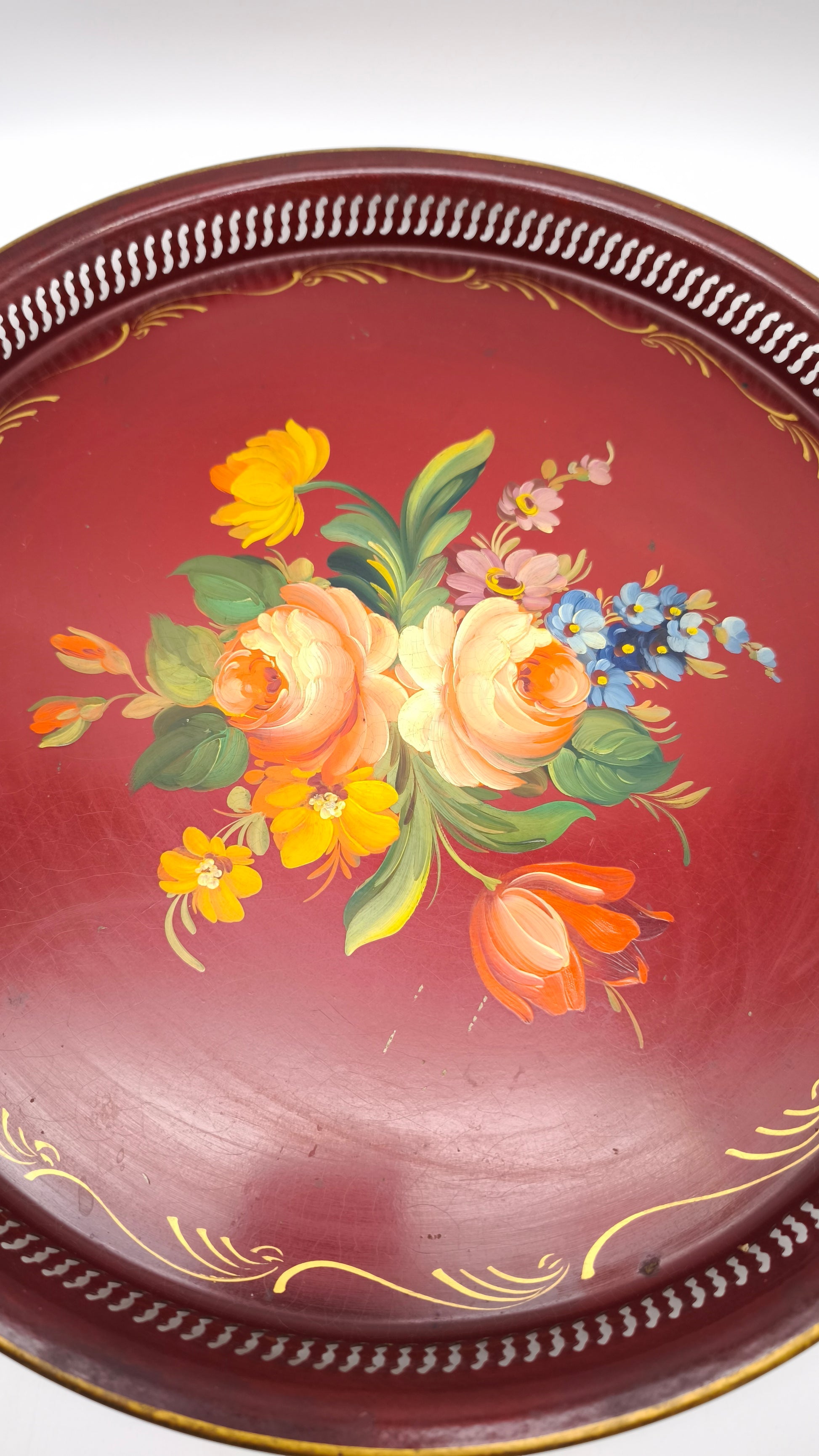 Vassoio vintage in ferro dipinto a mano, primi del '900