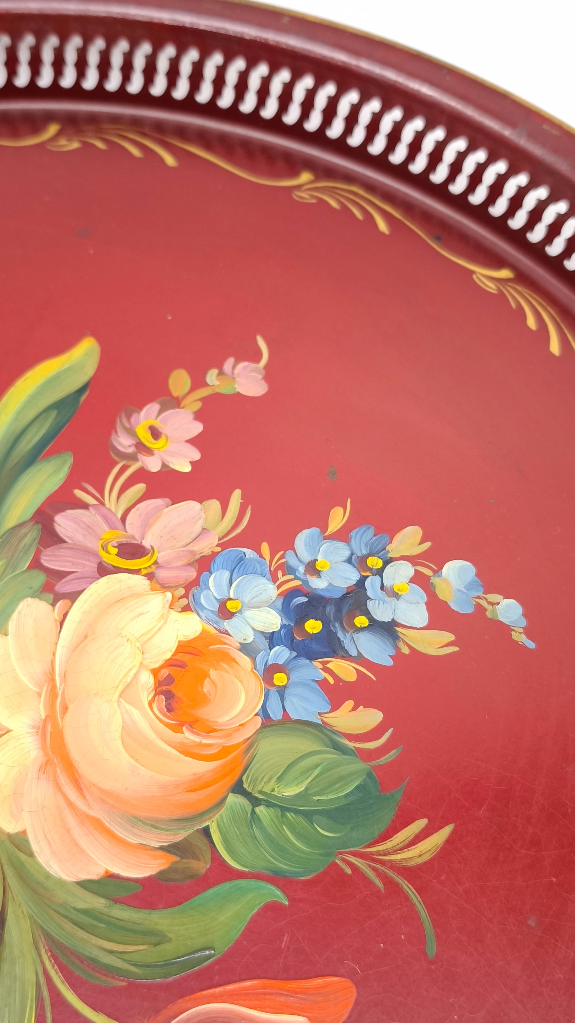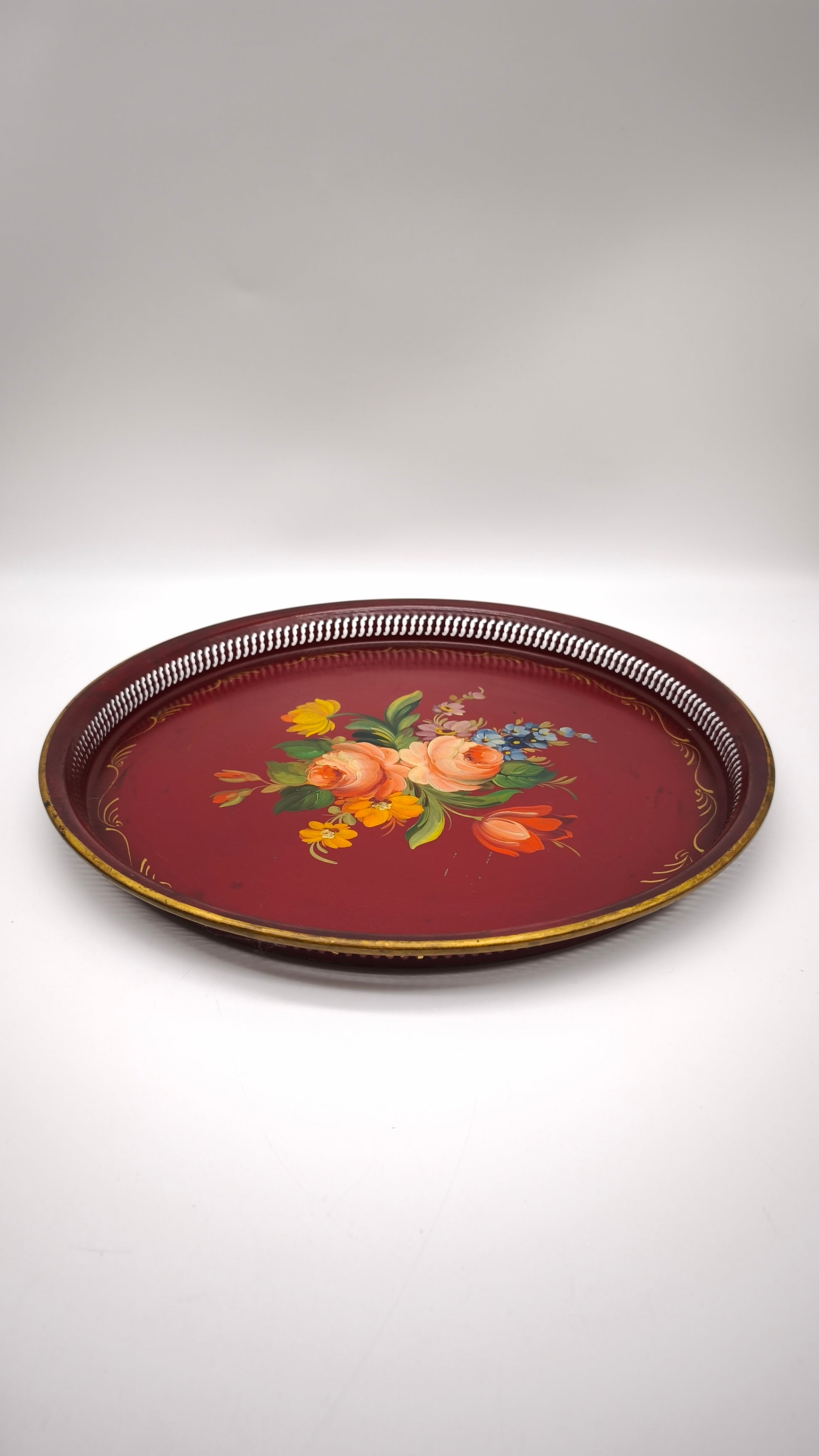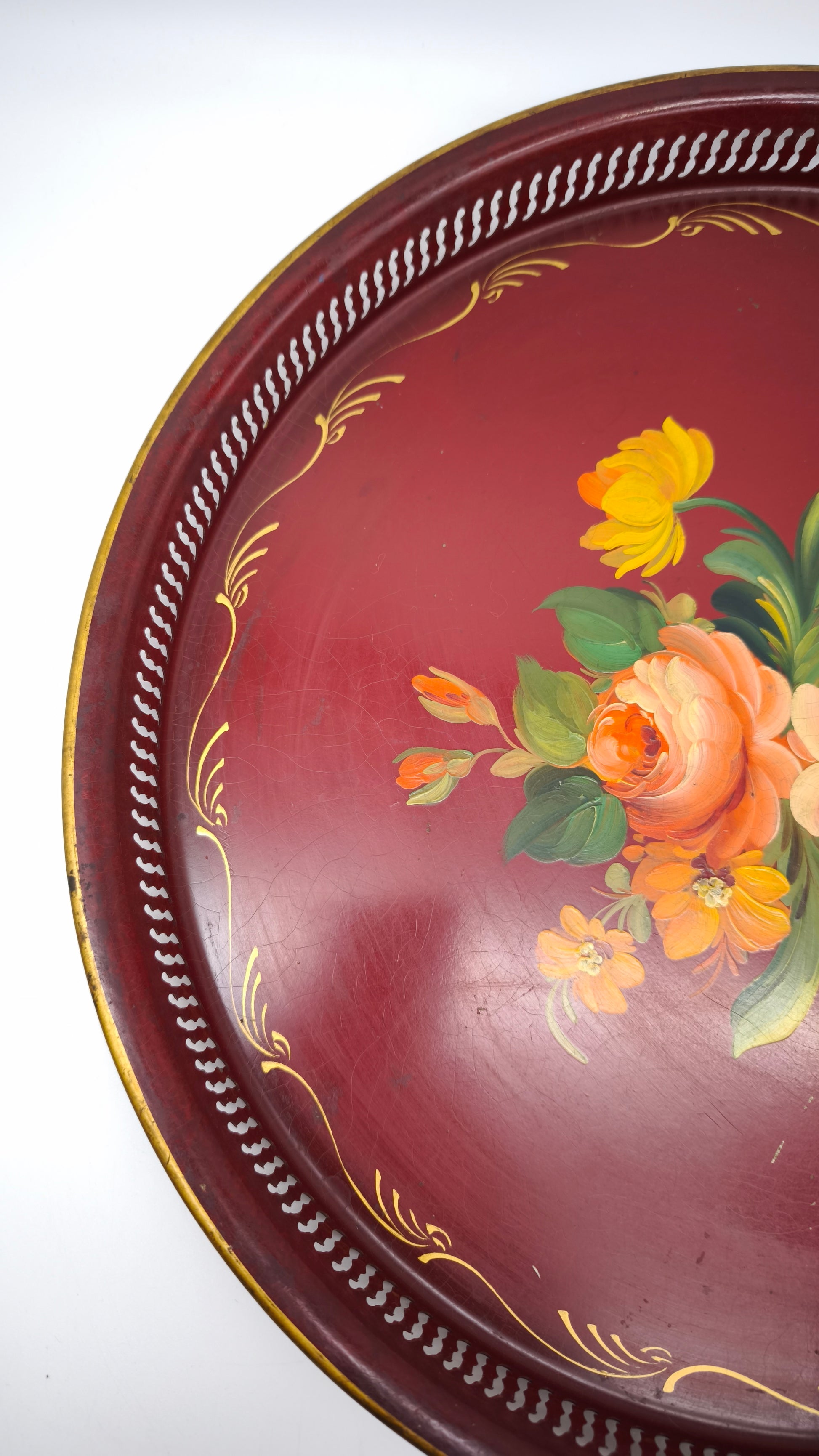 Vassoio vintage in ferro dipinto a mano, primi del '900