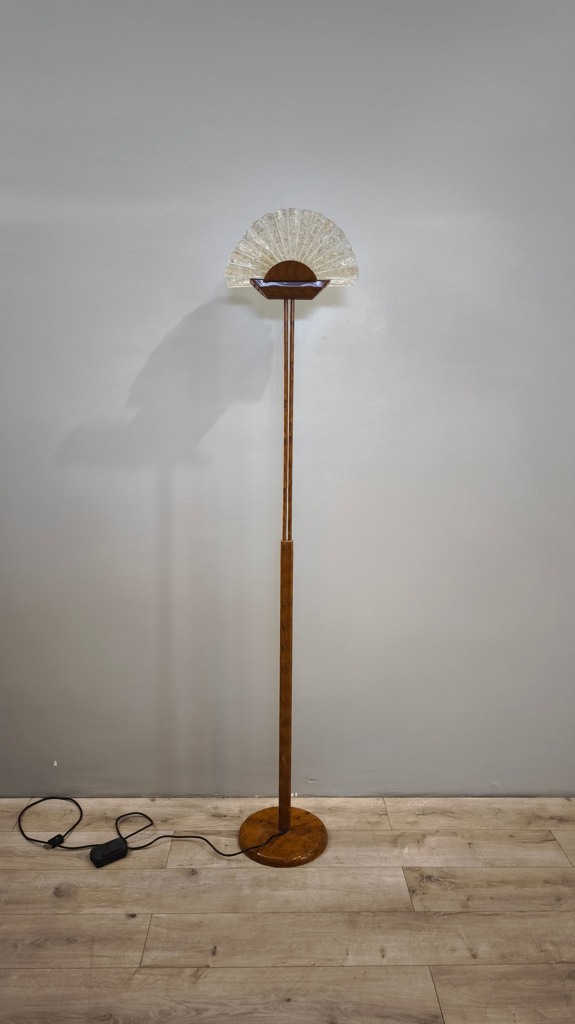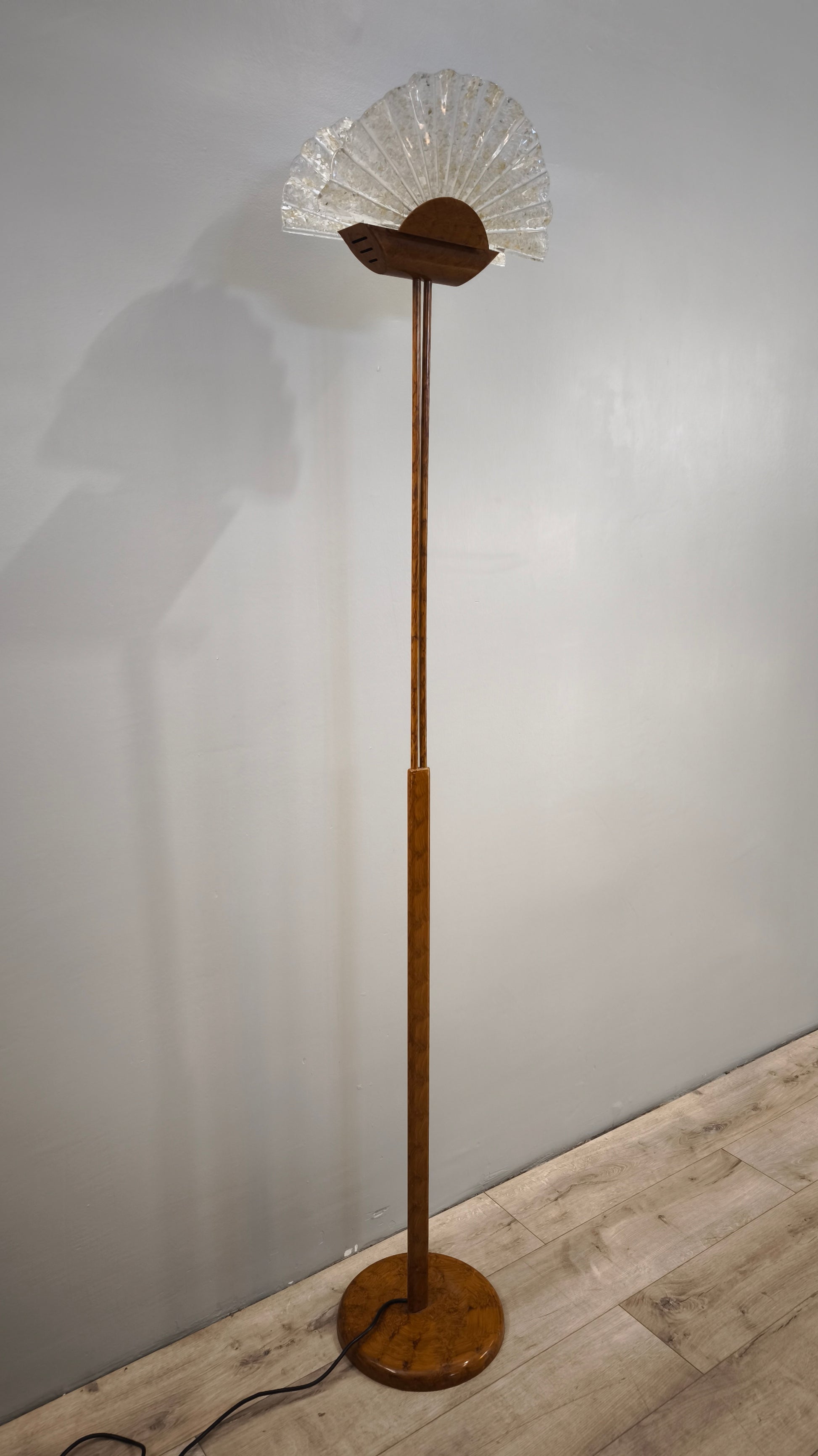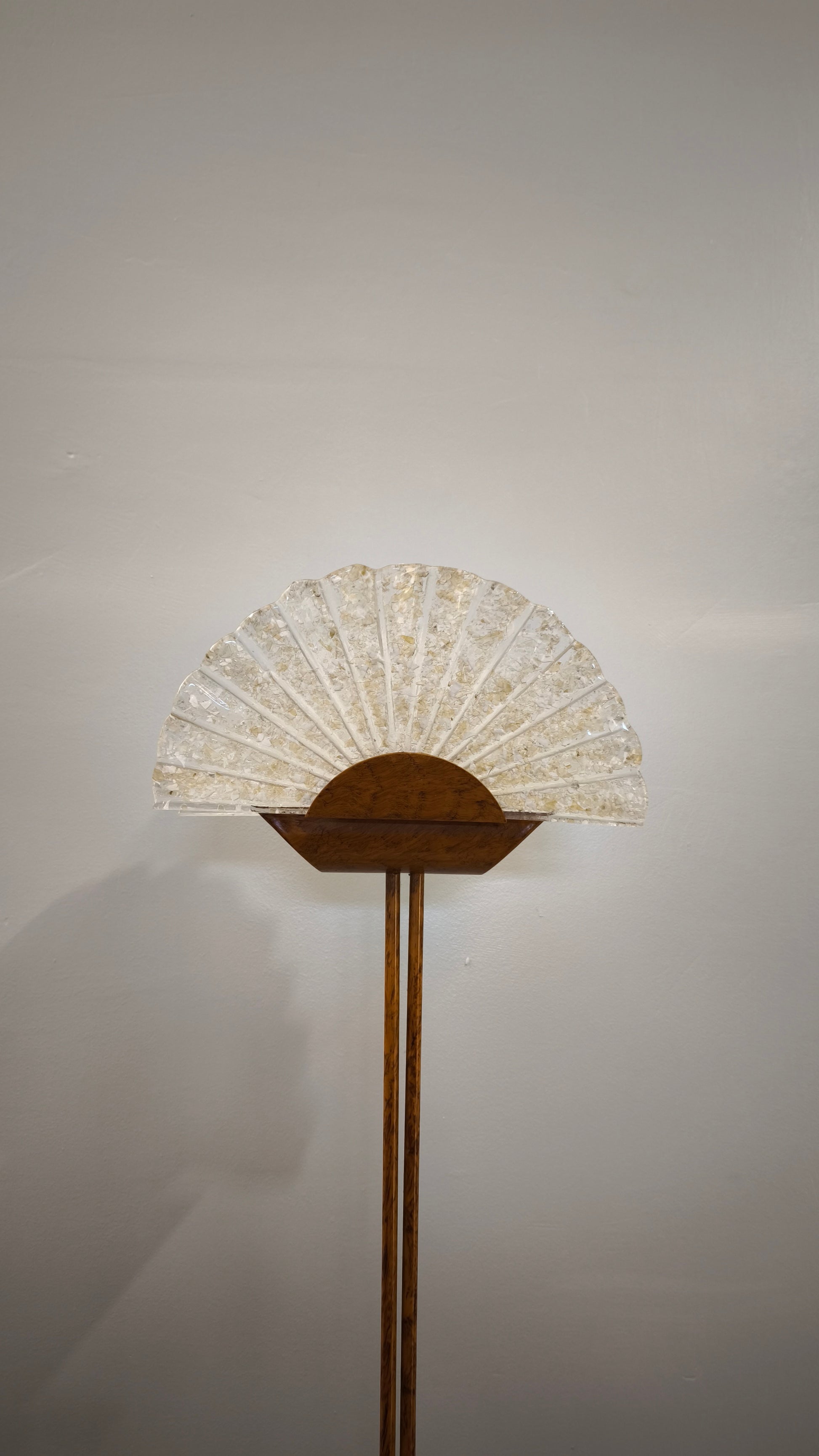 Piantana dorata con ventaglio in vetro