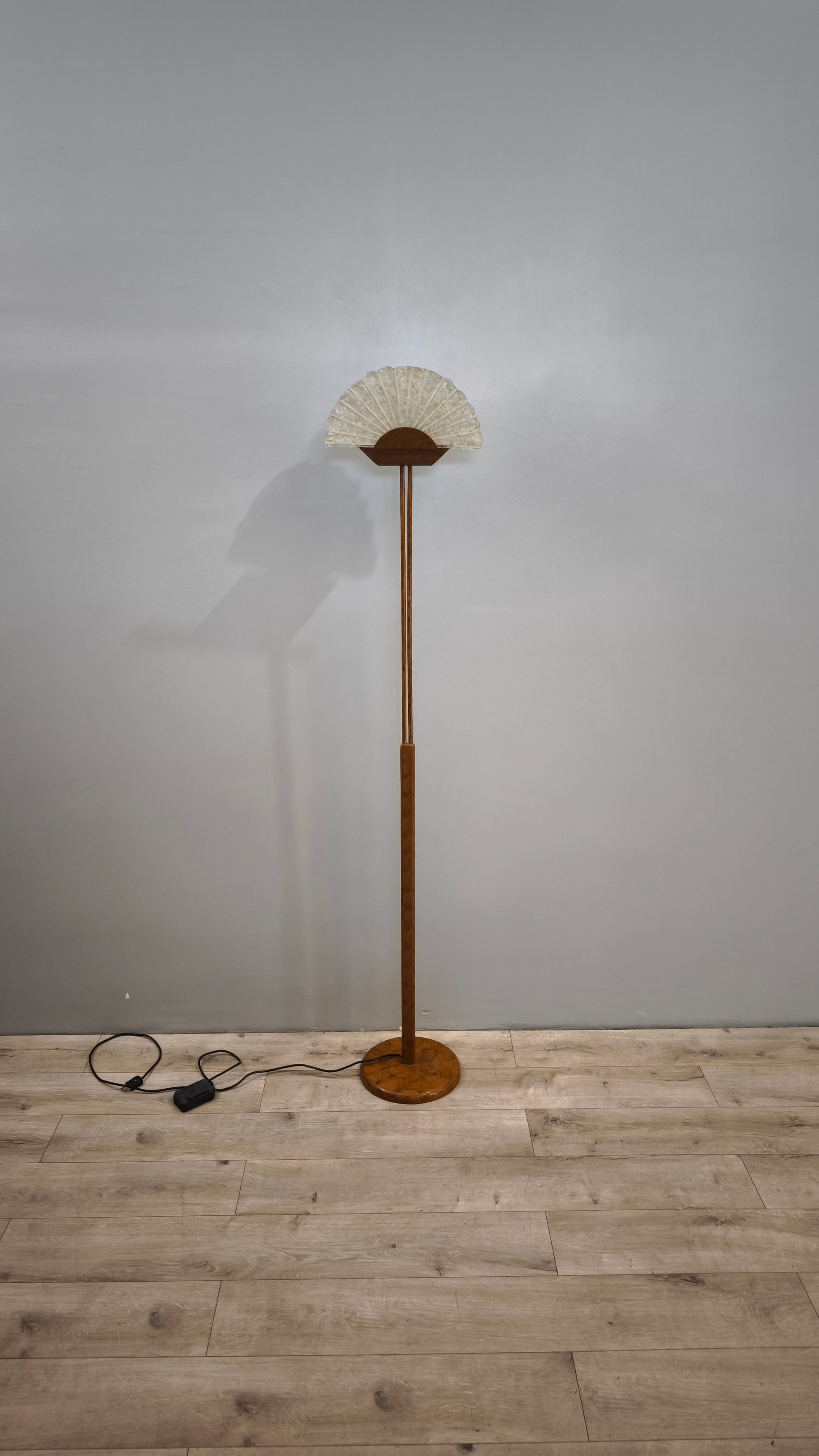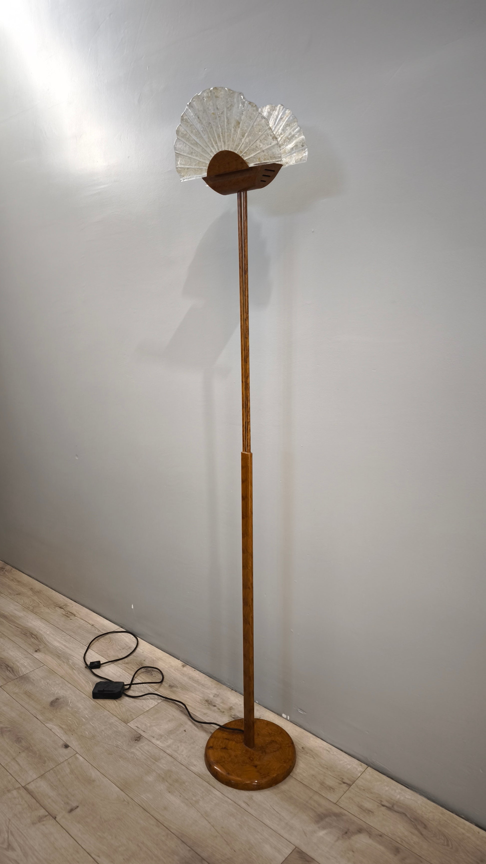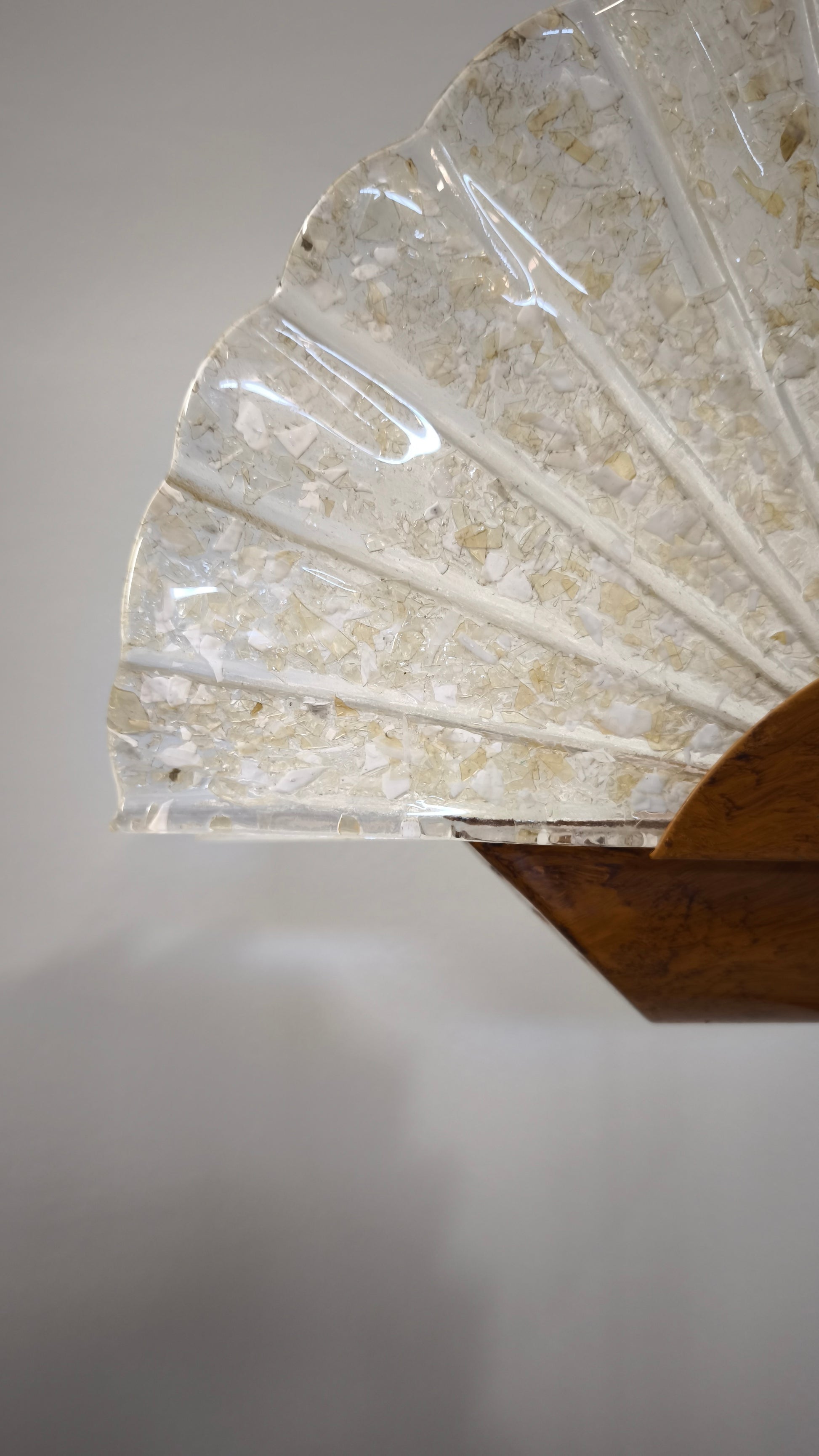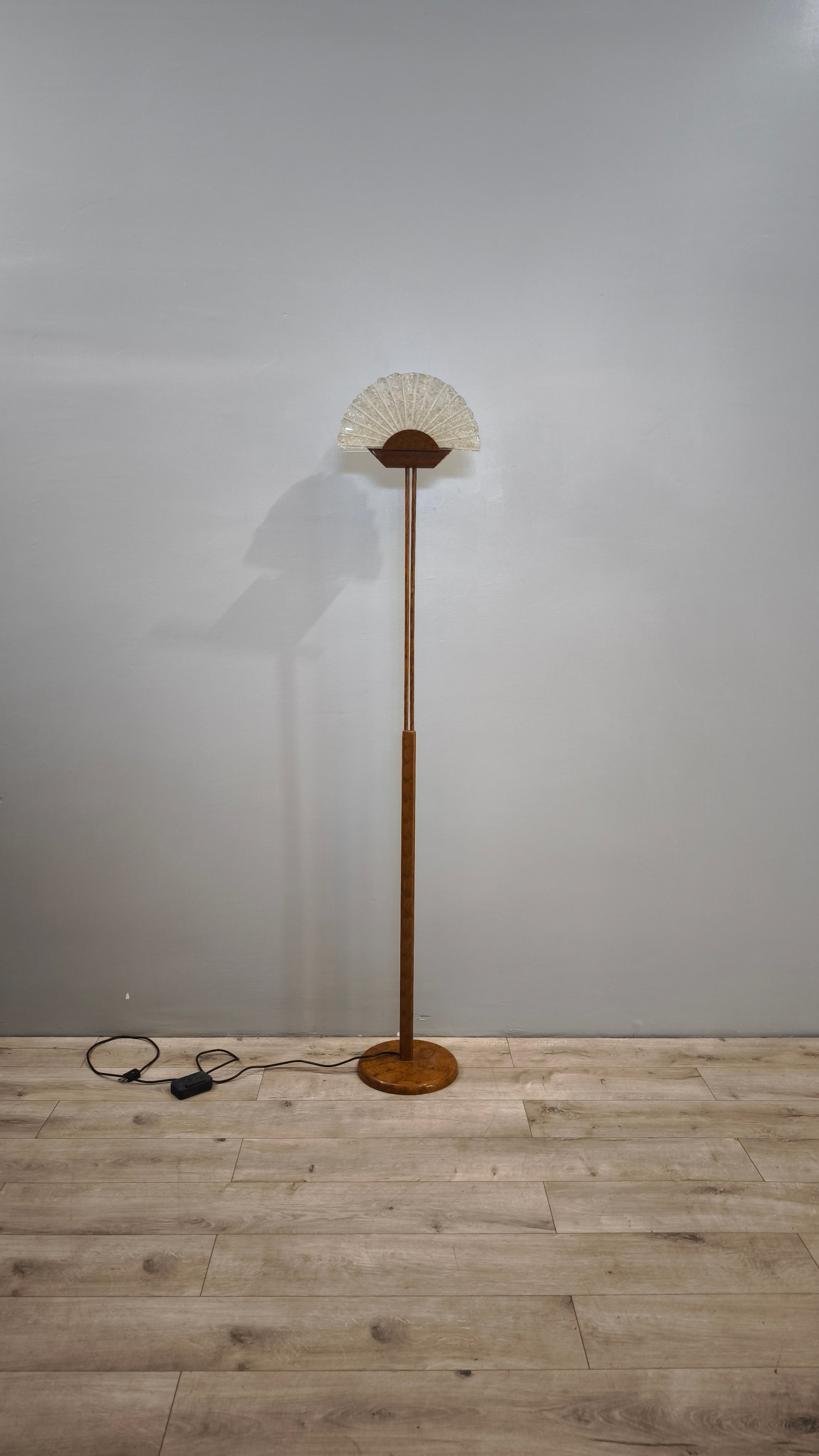 Piantana dorata con ventaglio in vetro