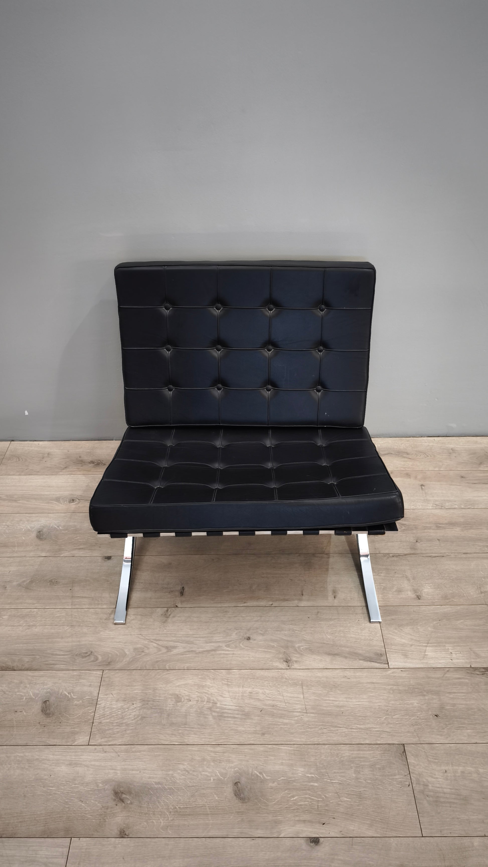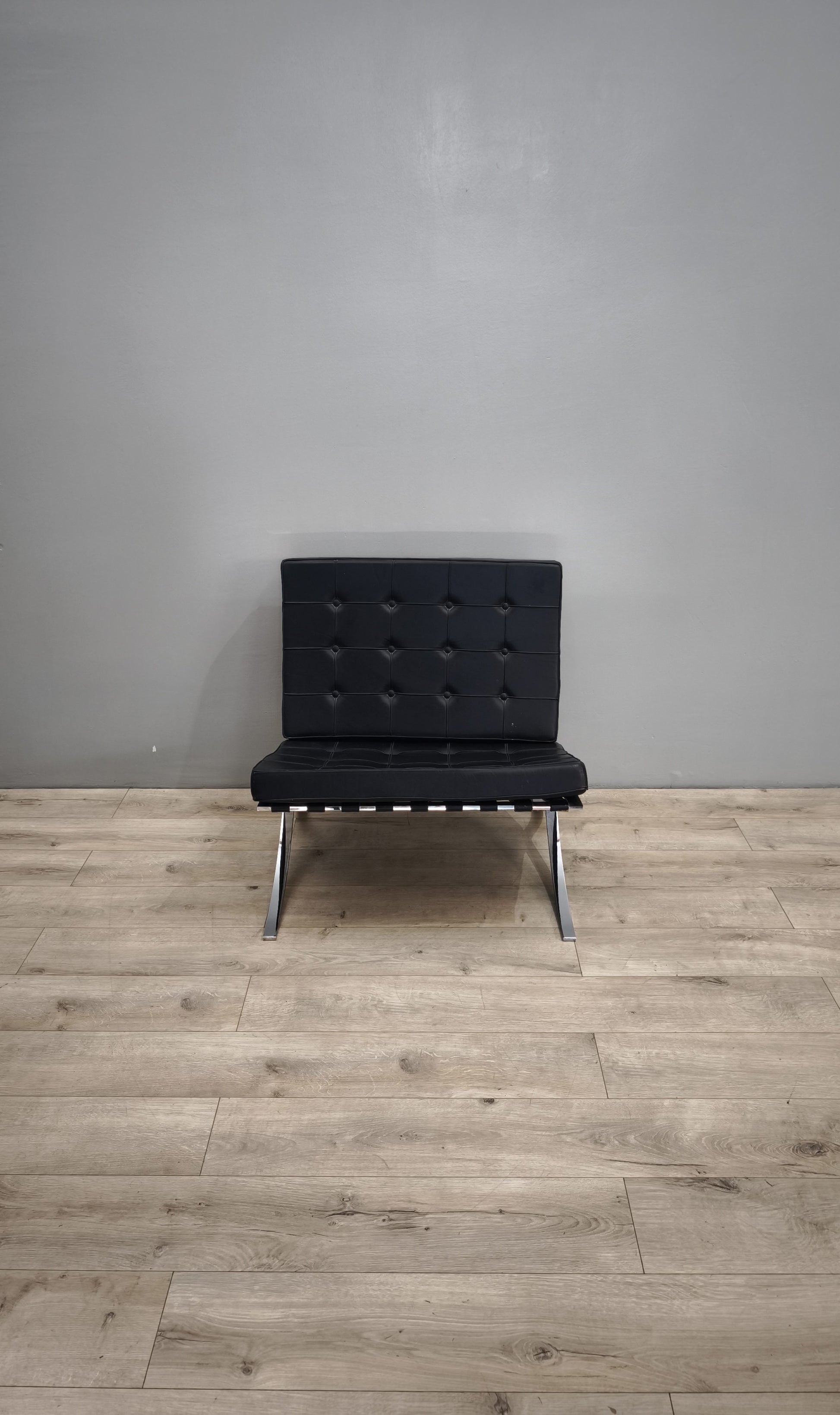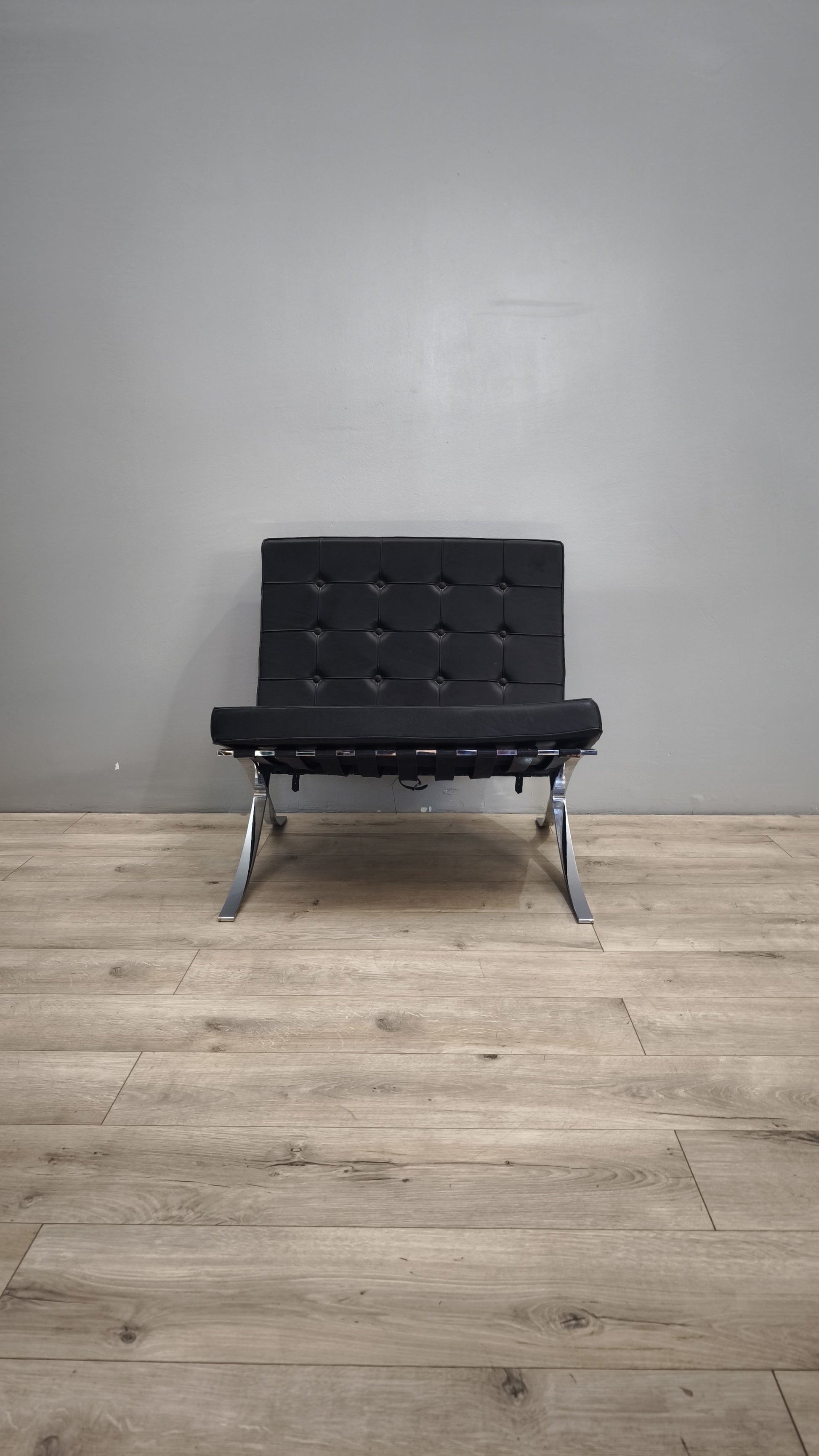 Poltrona nera con struttura cromata (copia Knoll modello Barcellona)
