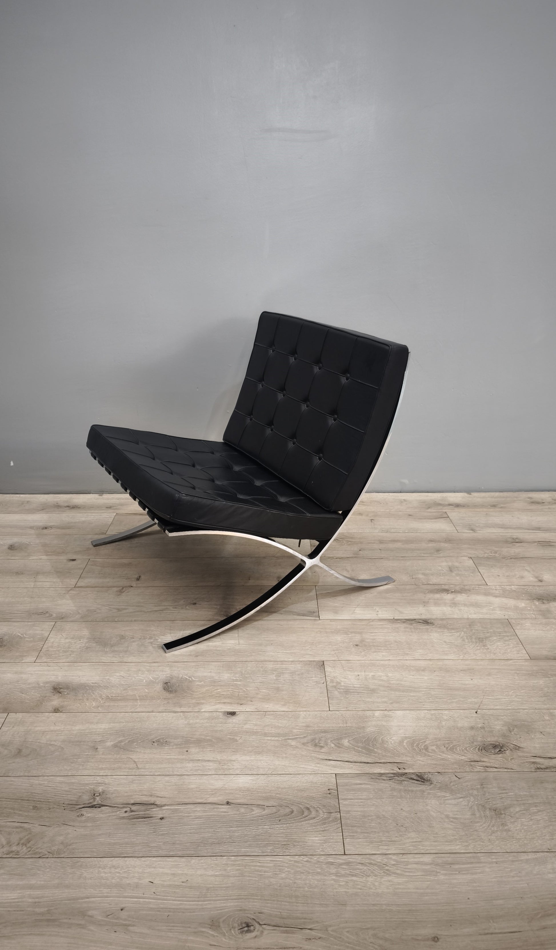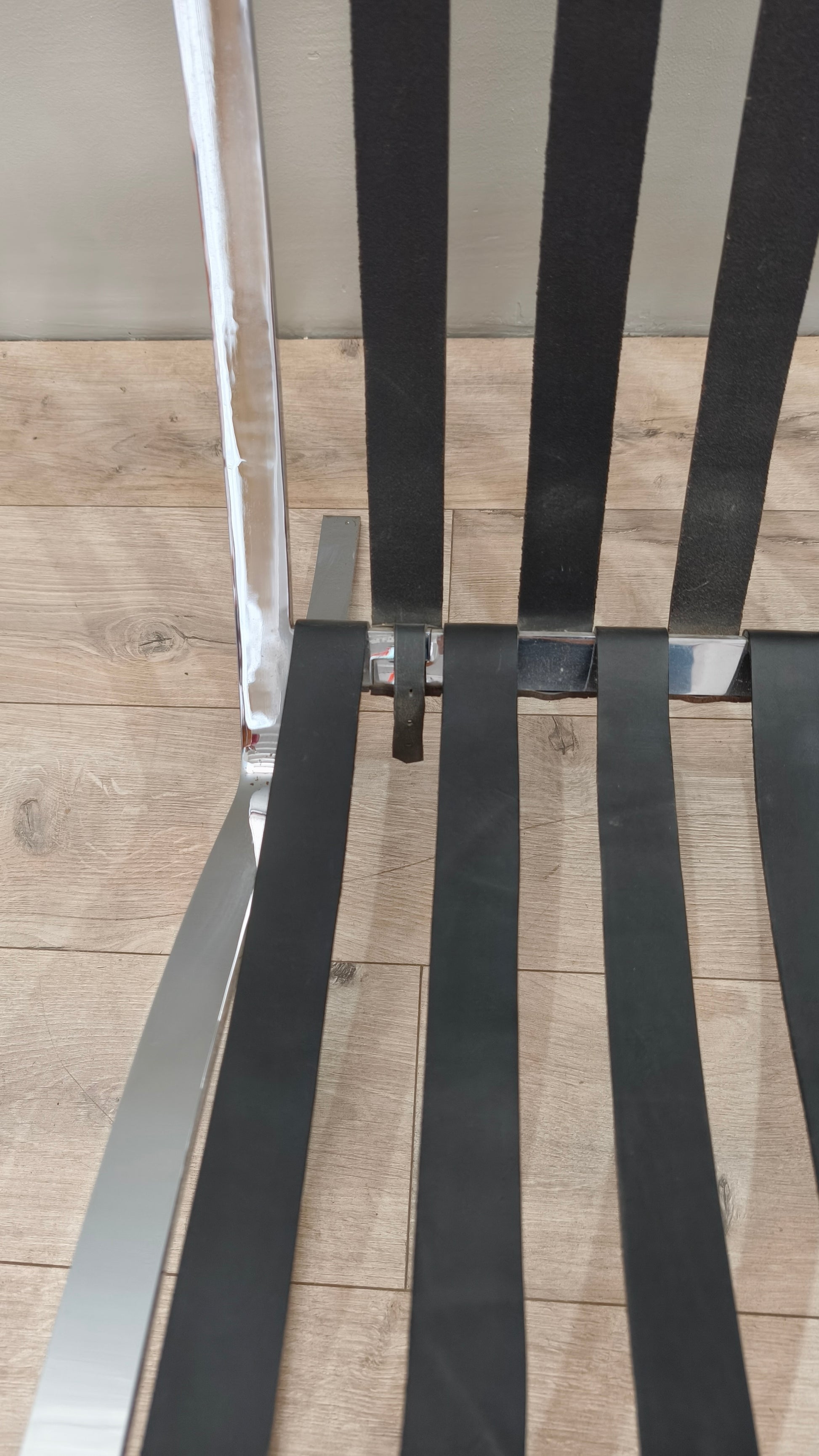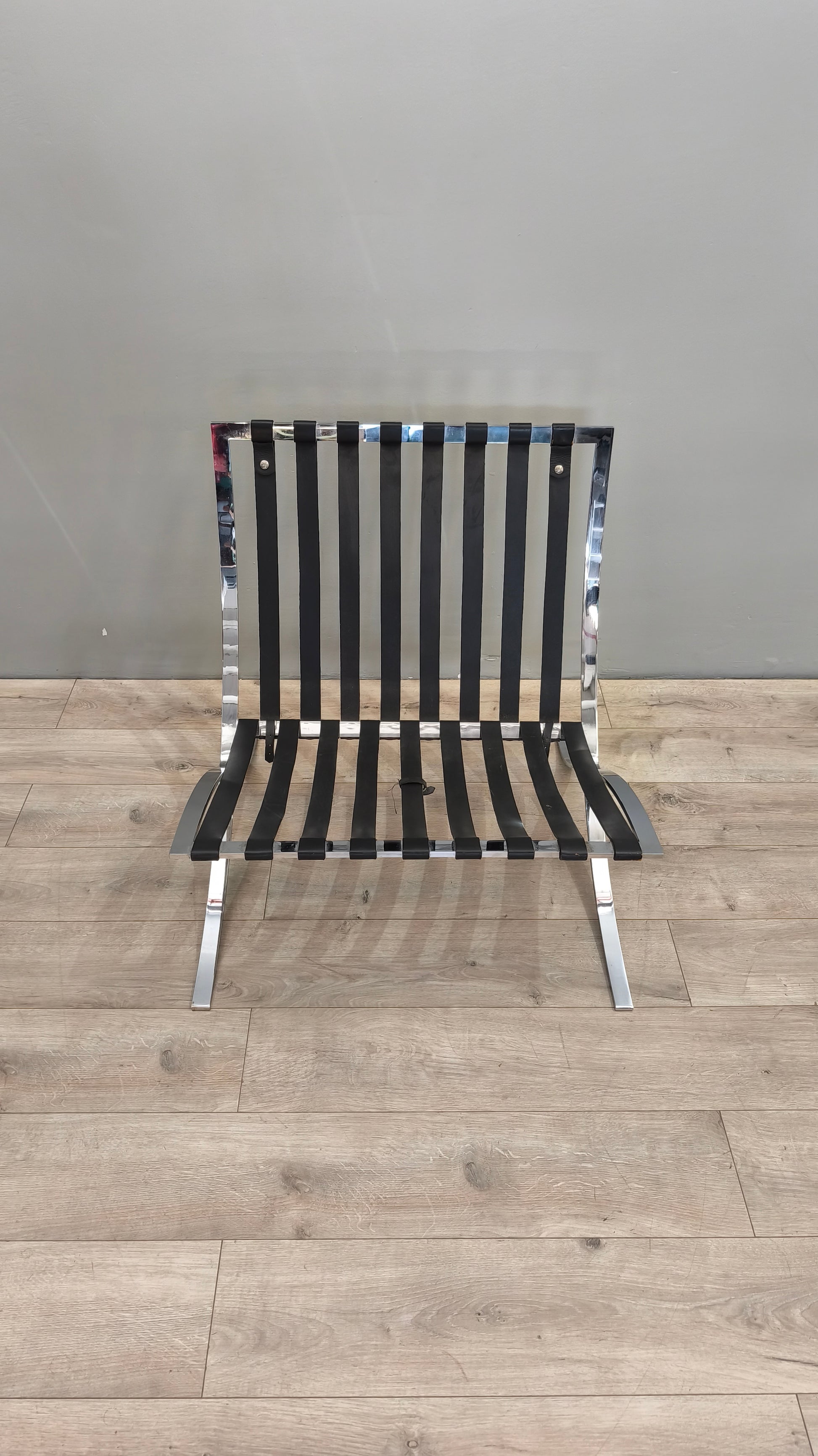 Poltrona nera con struttura cromata (copia Knoll modello Barcellona)