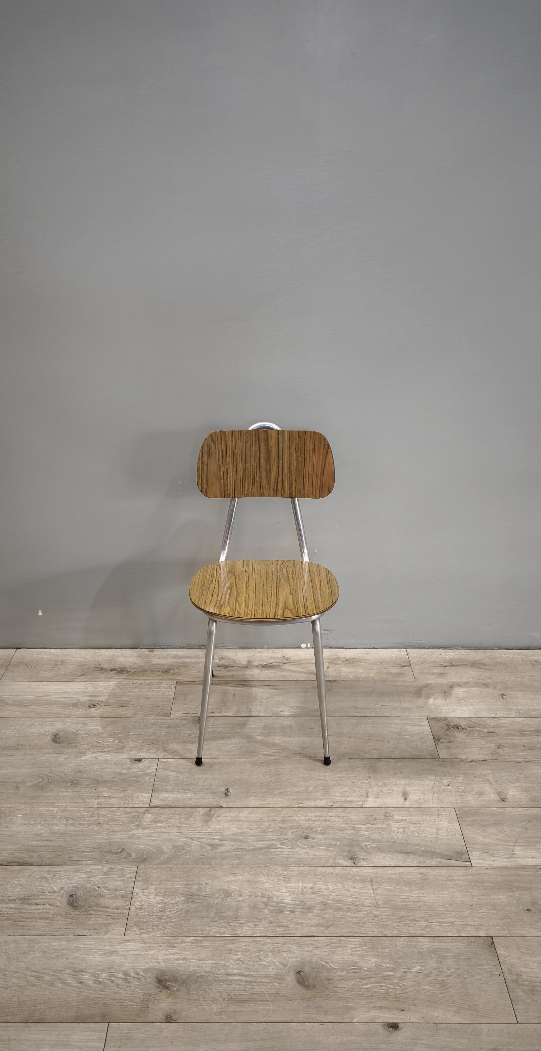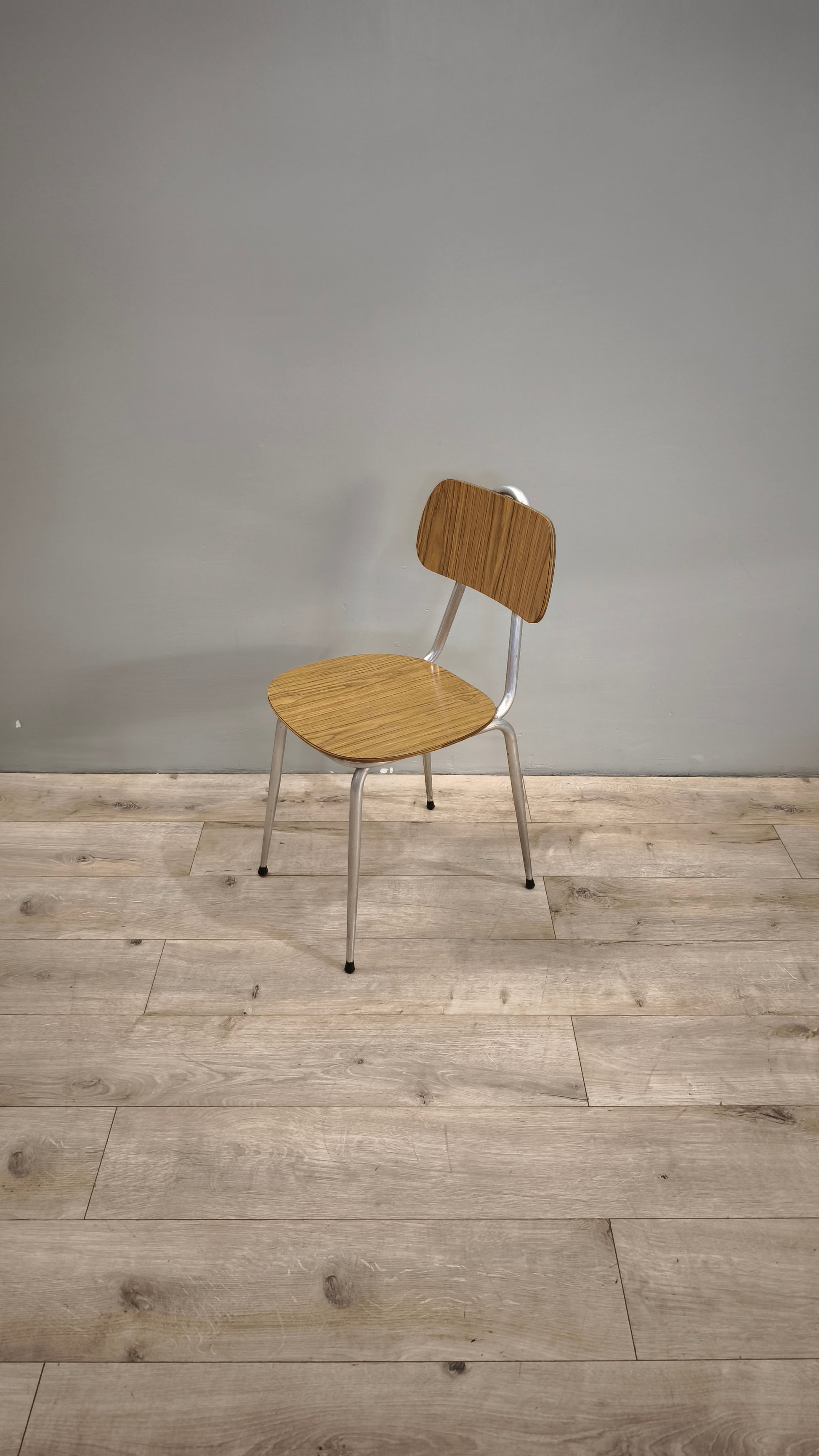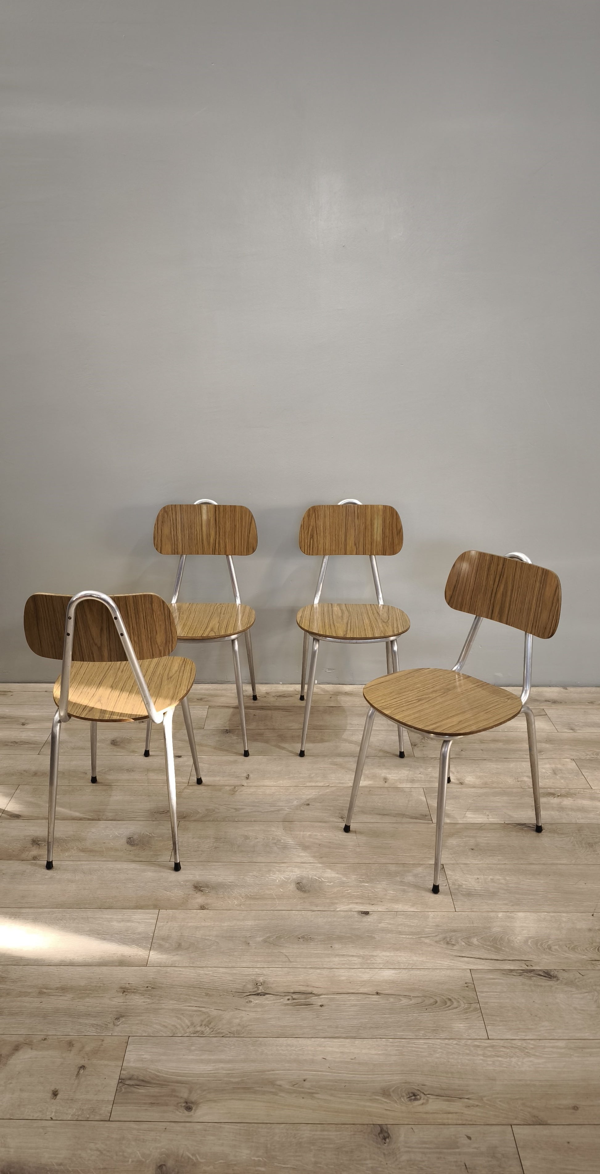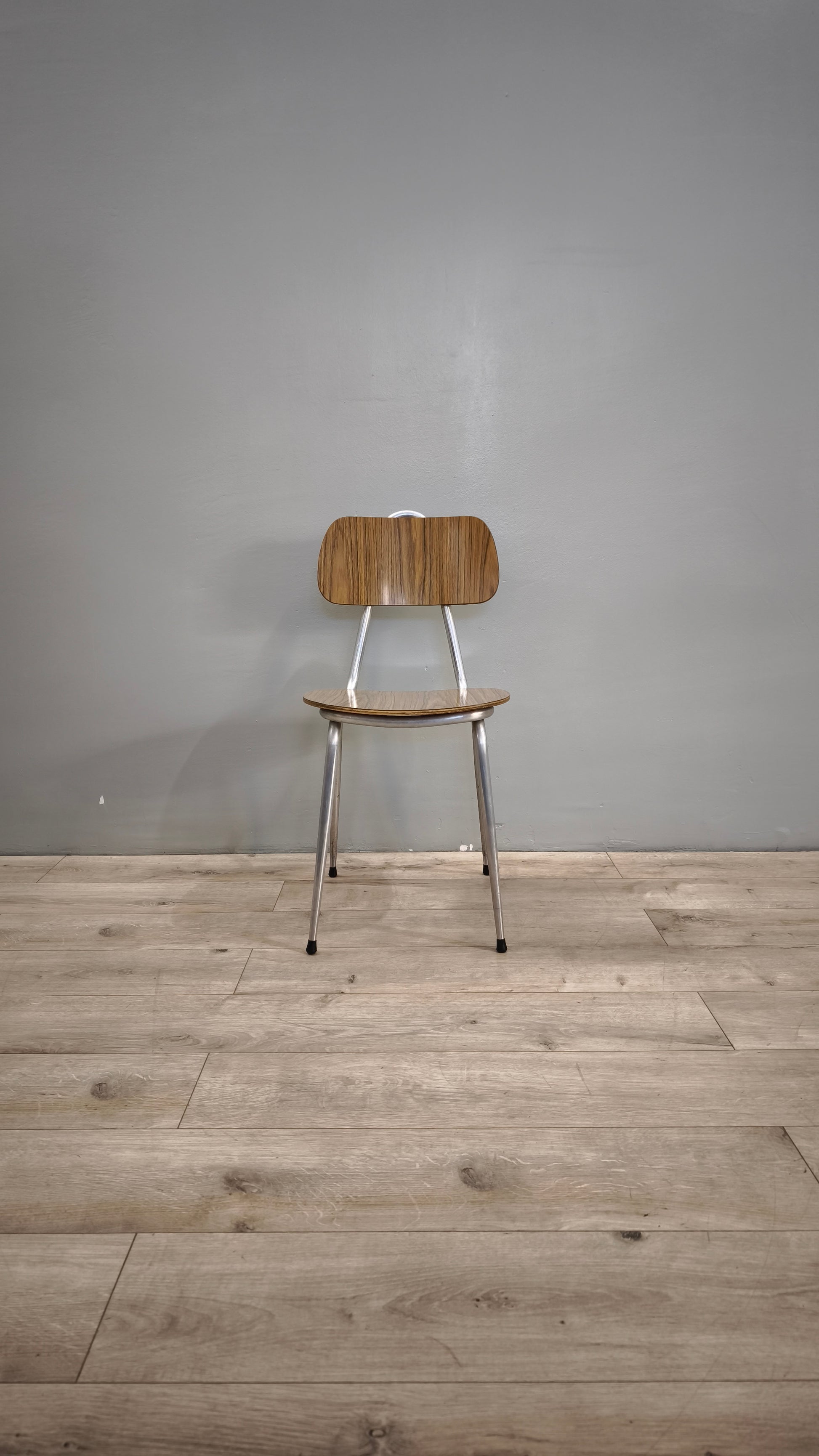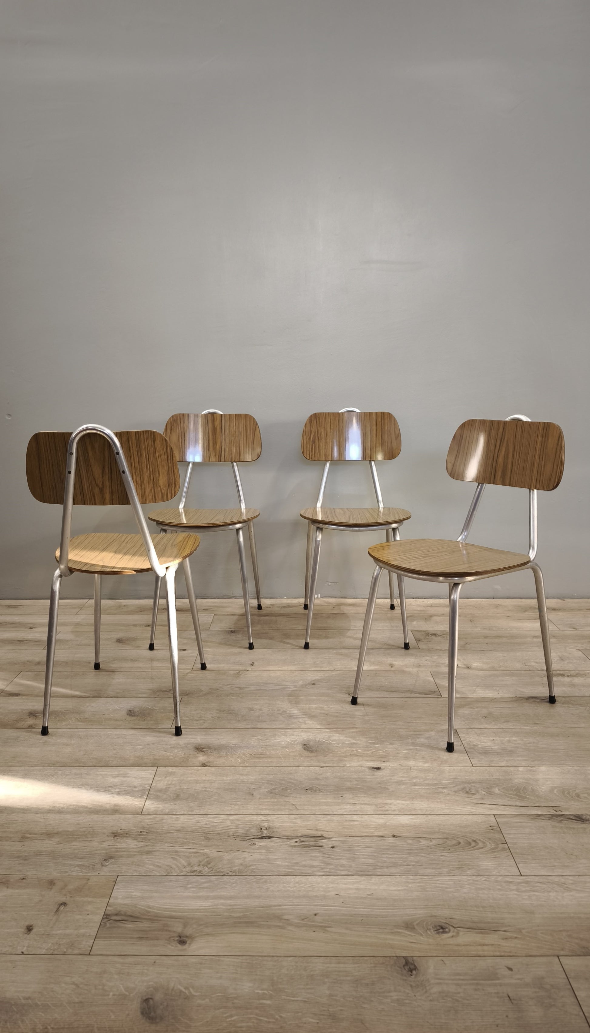 Set composto da 4 sedie con struttura in acciaio, seduta e schienale in formica marrone