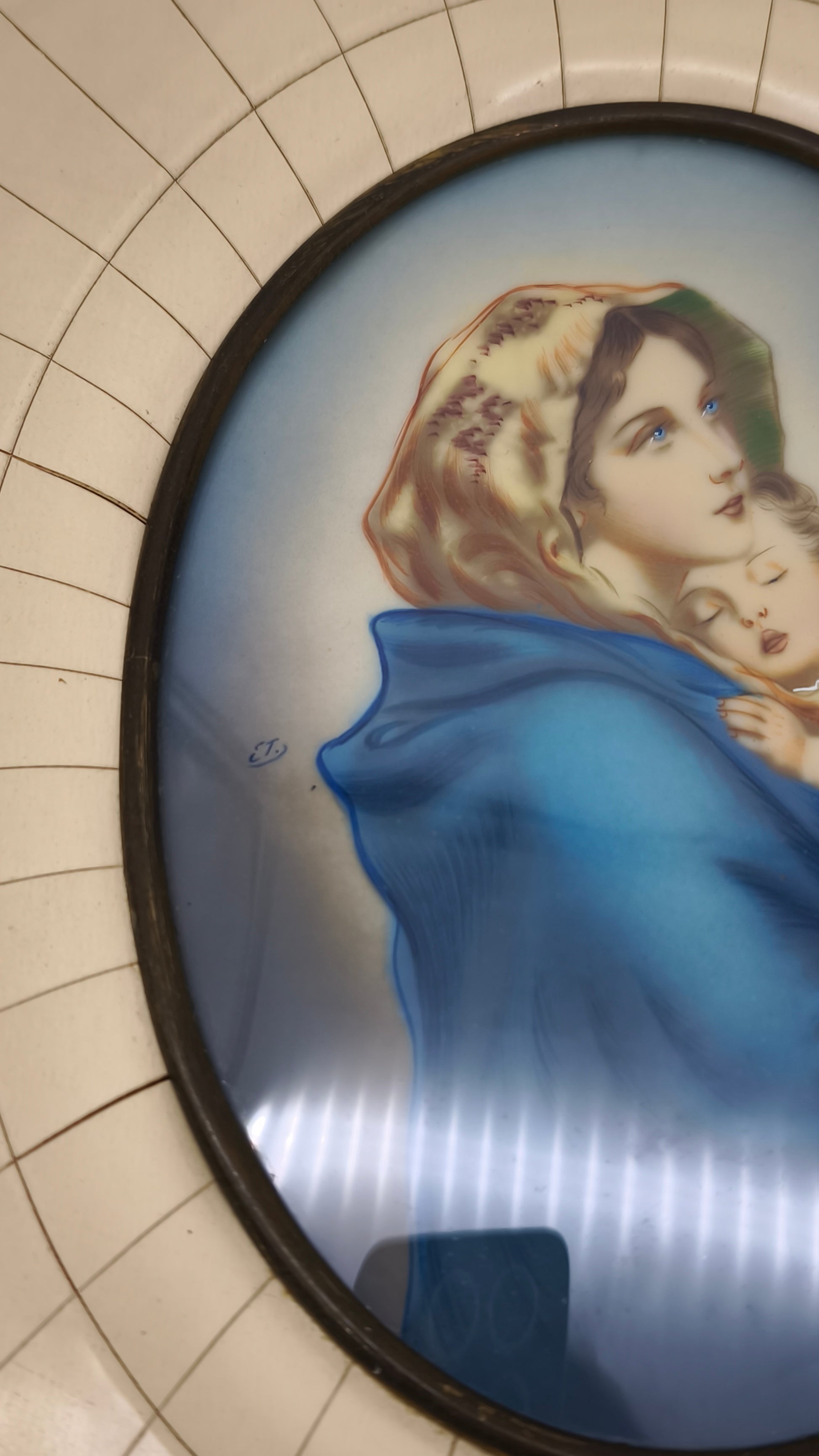 84148 Quadro ovale vintage Madonna con bambino