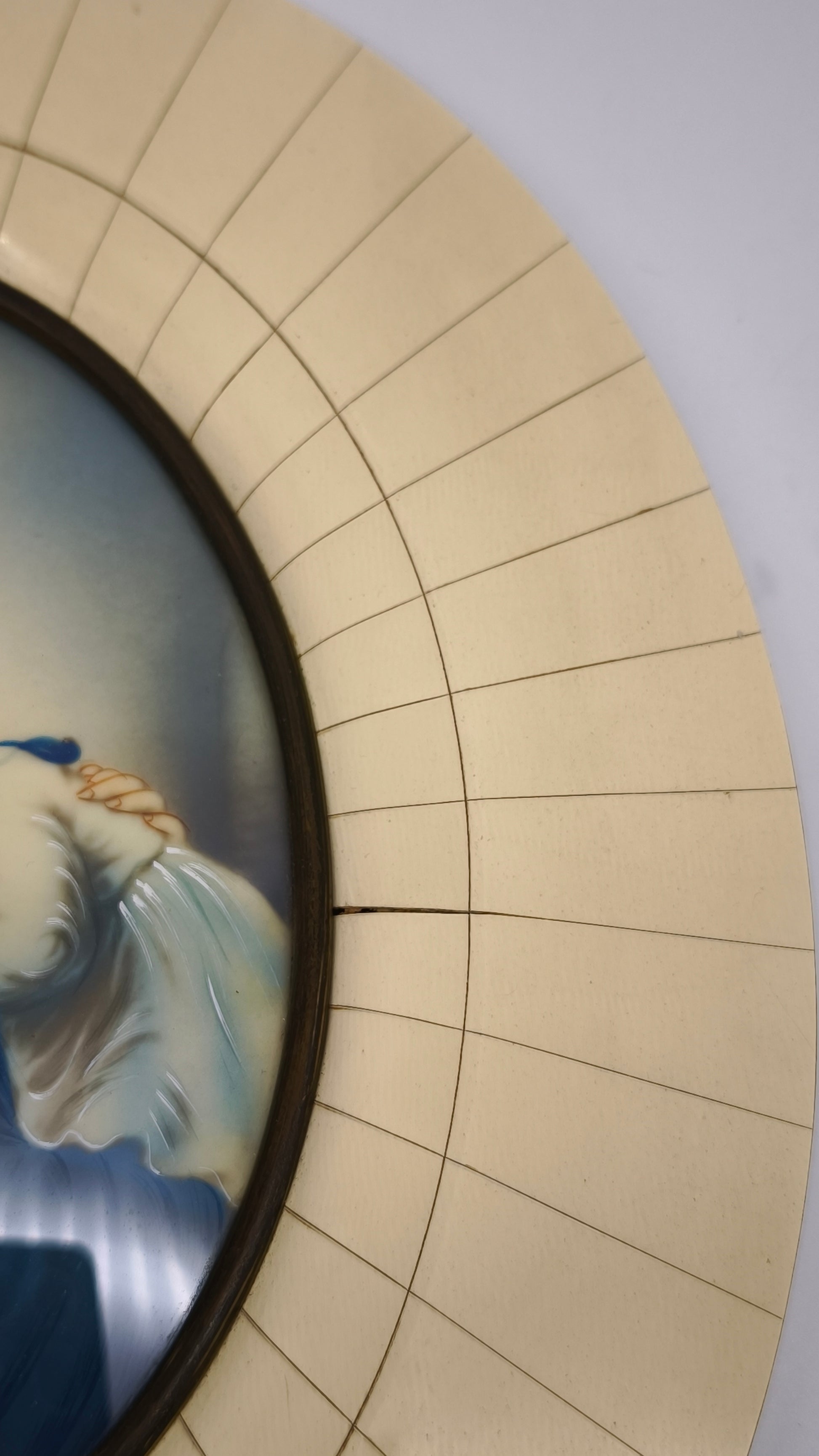 Quadro ovale vintage Madonna con bambino dipinto su carta acetata
