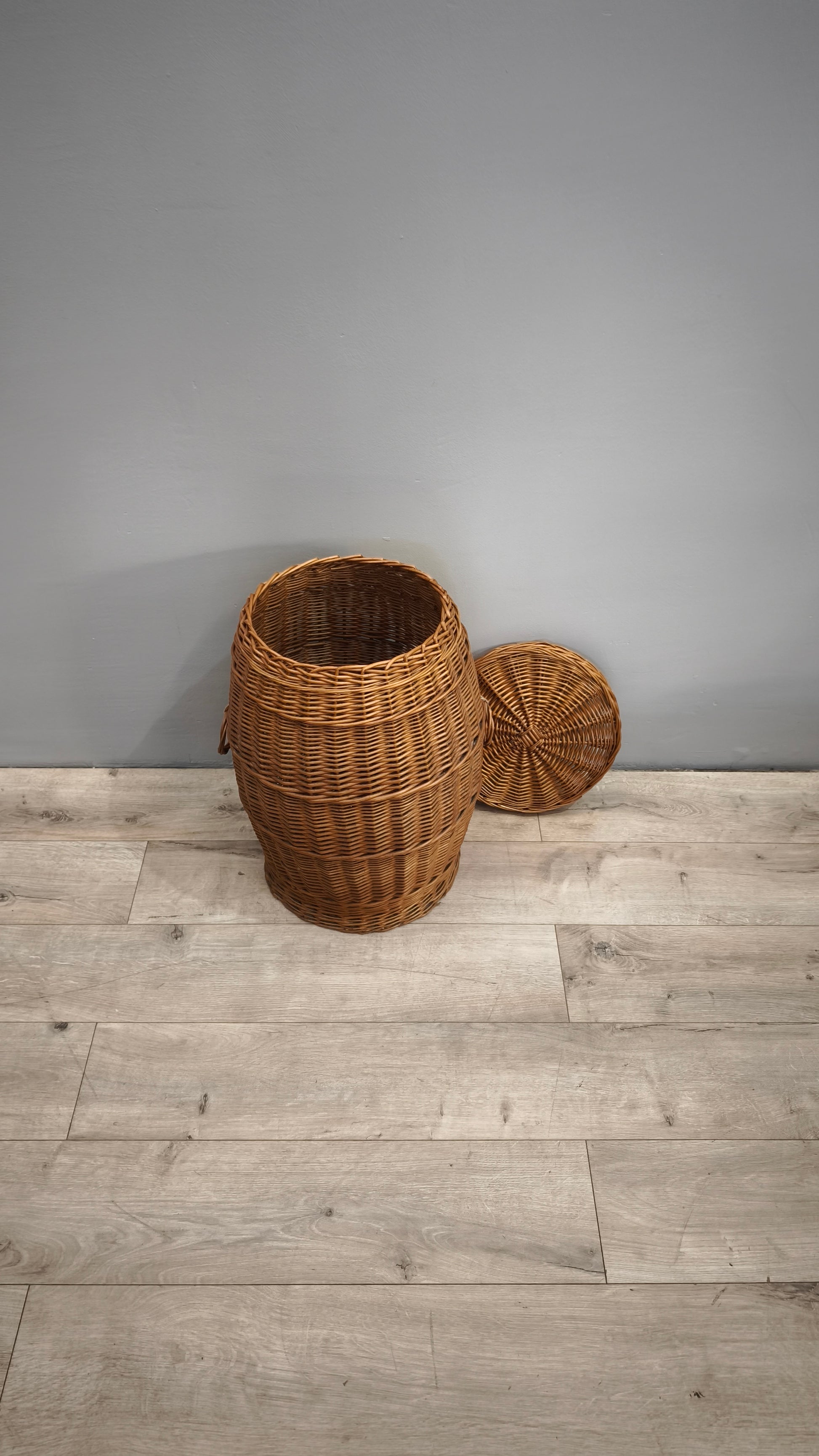 Cesta in vimini con coperchio e maniglie laterali