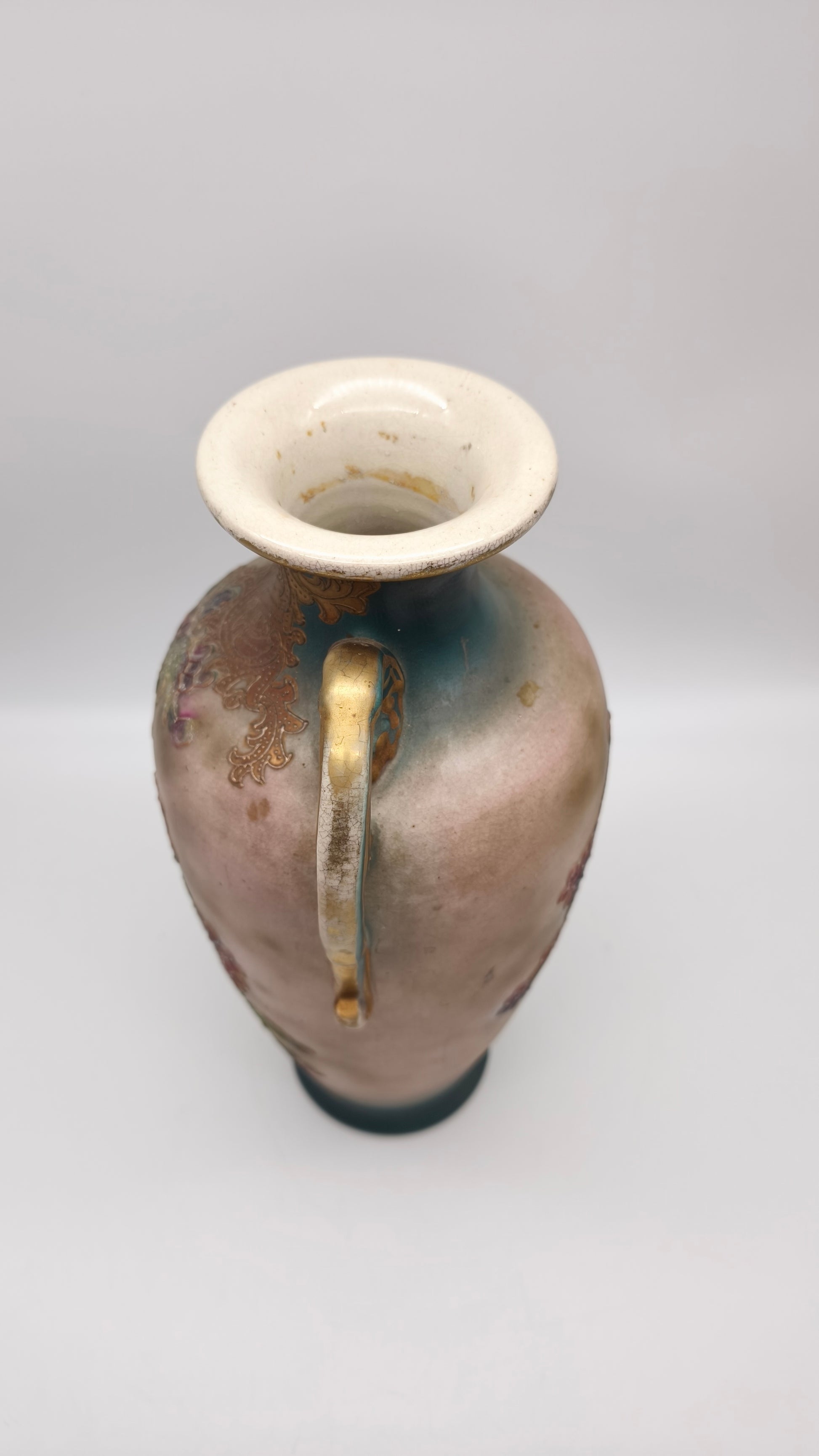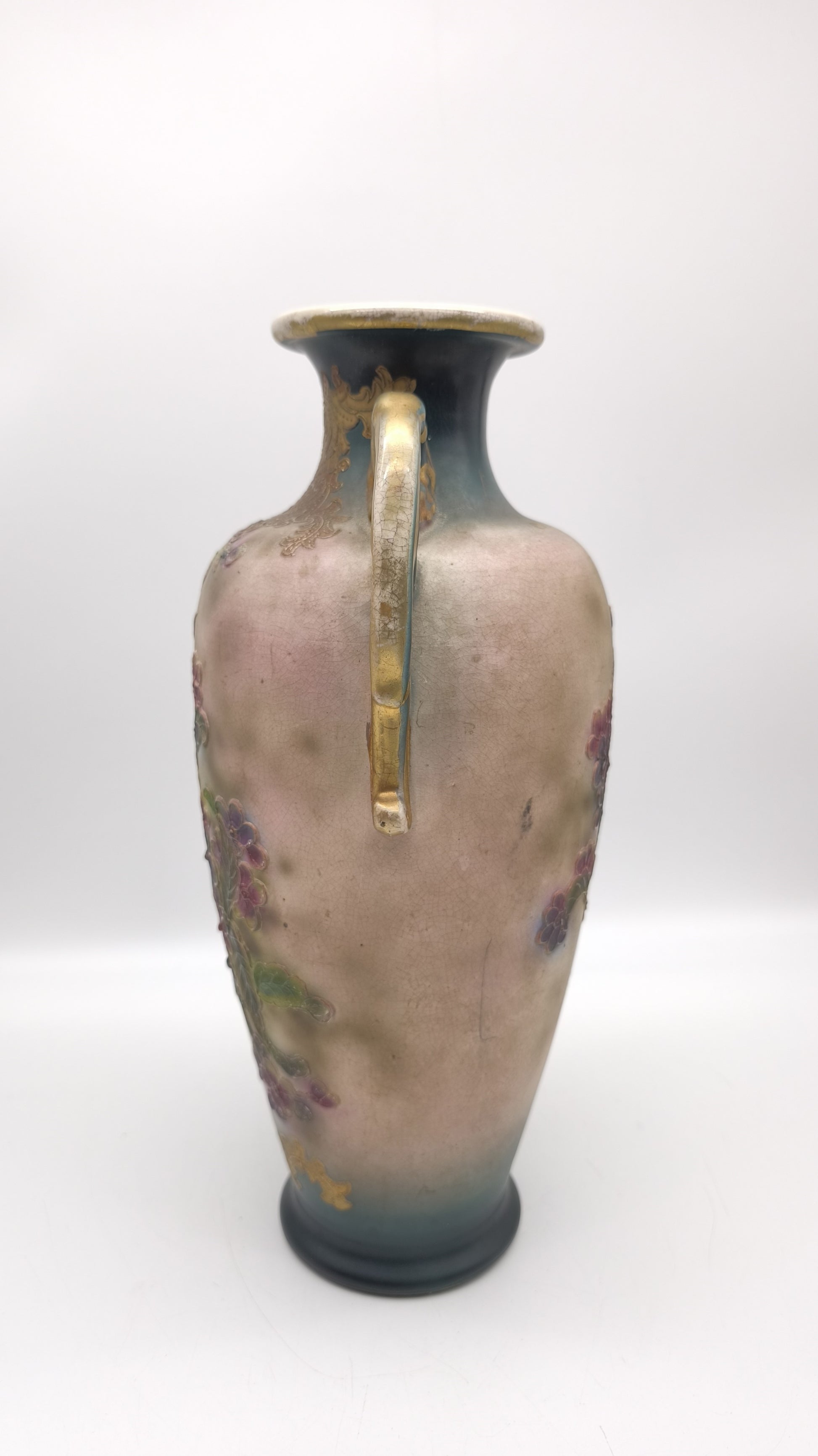 Vaso in ceramica cinese dei primi del '900 con decorazione a motivo floreale, sono presenti due manici