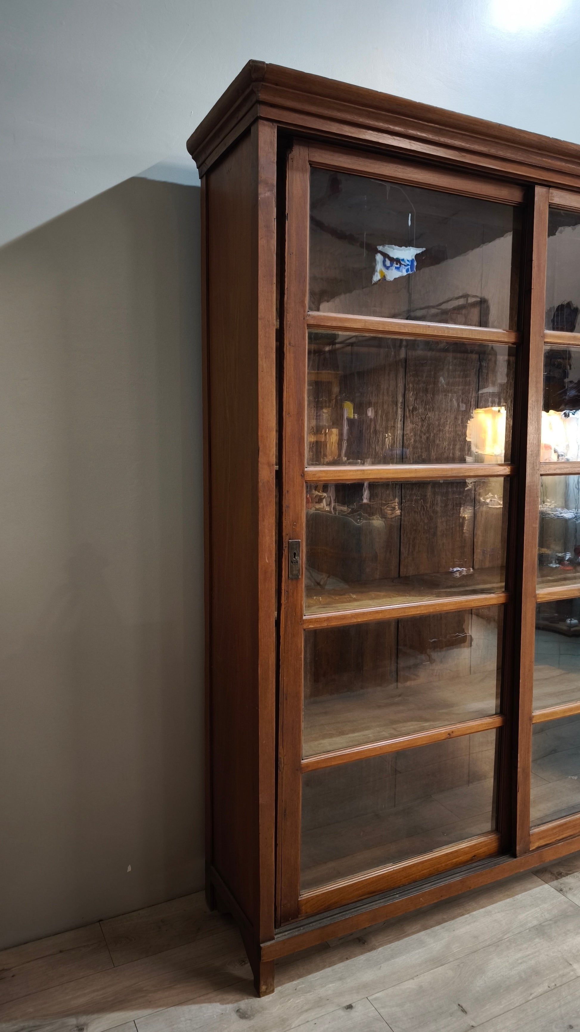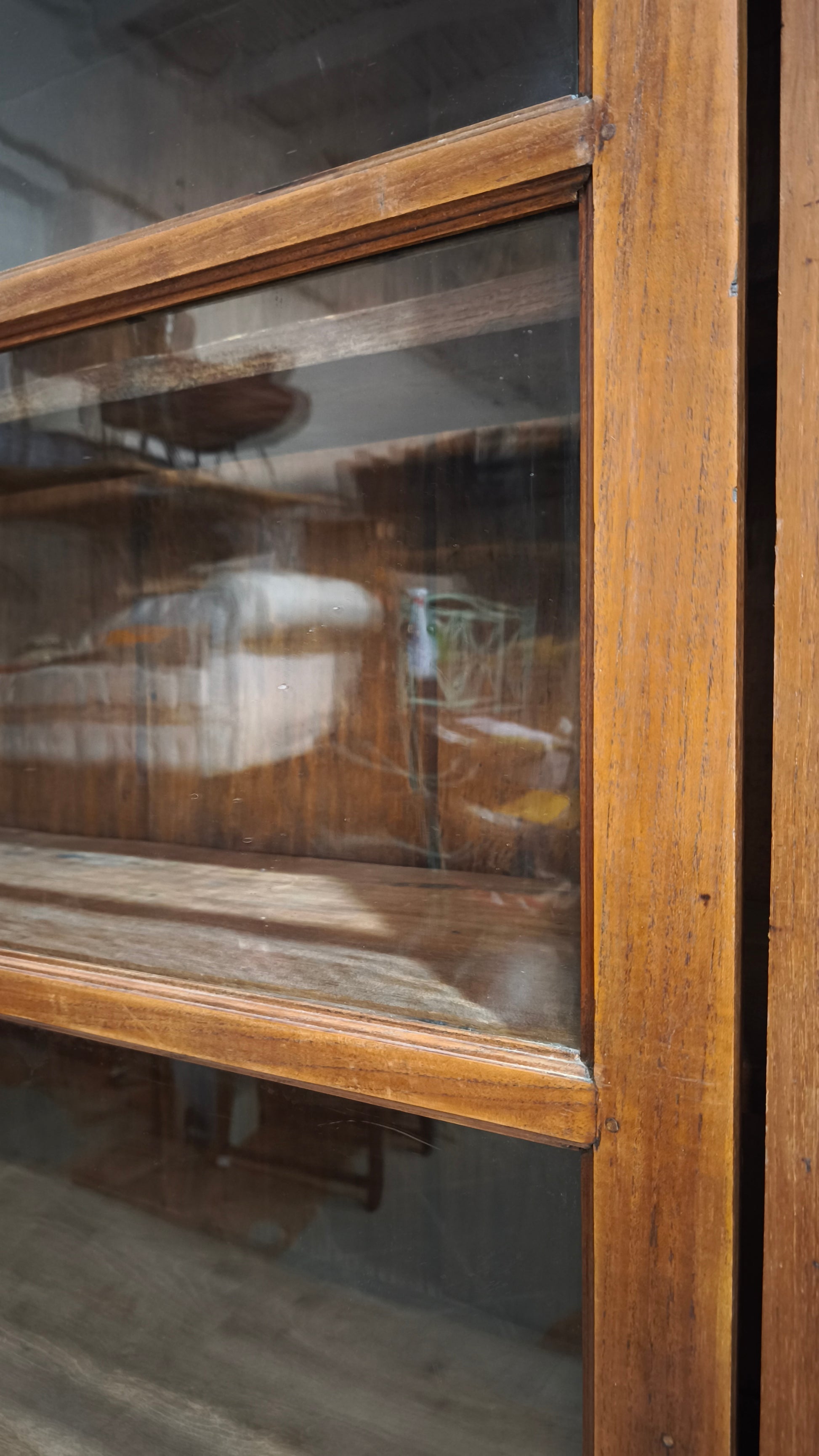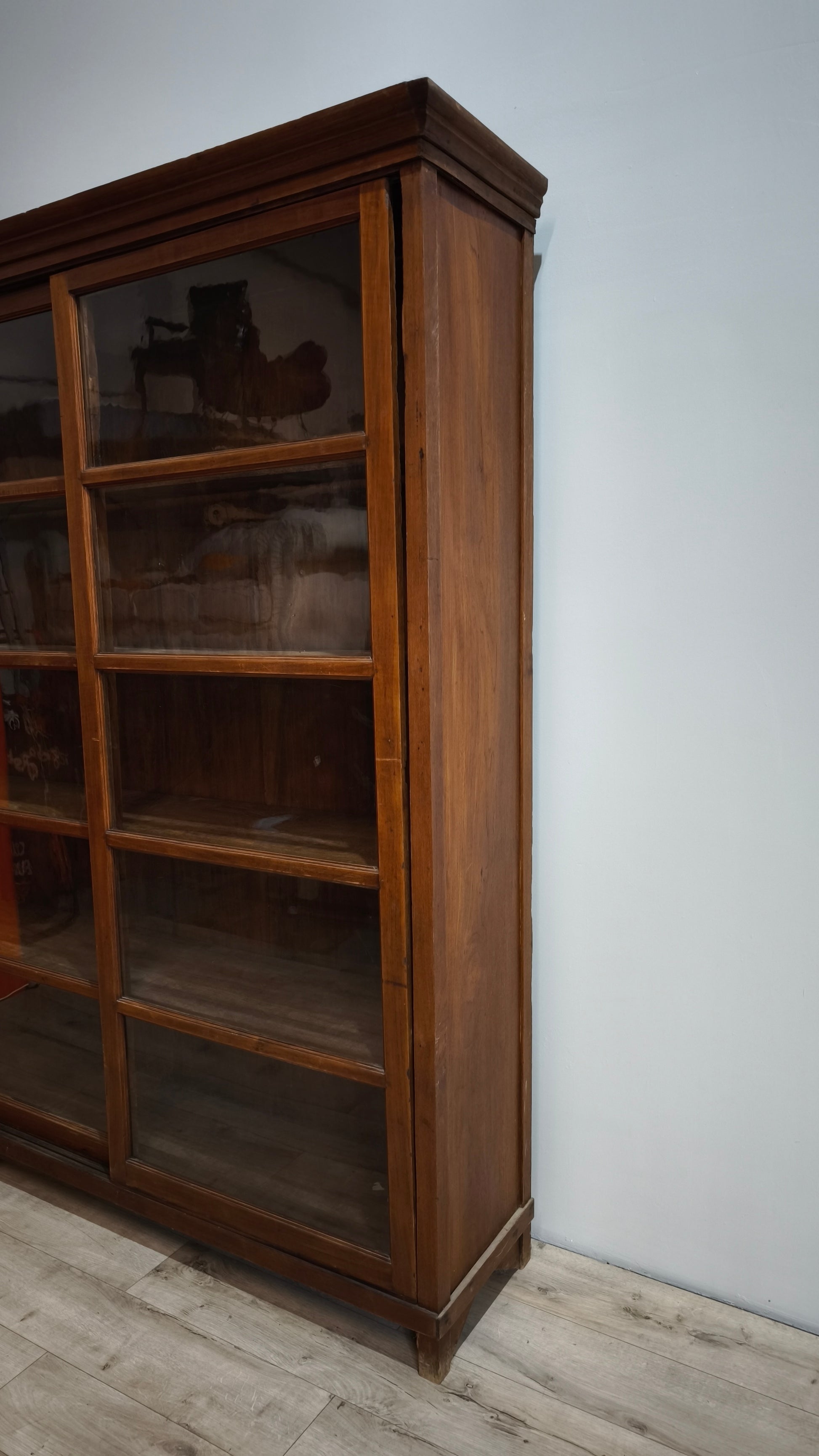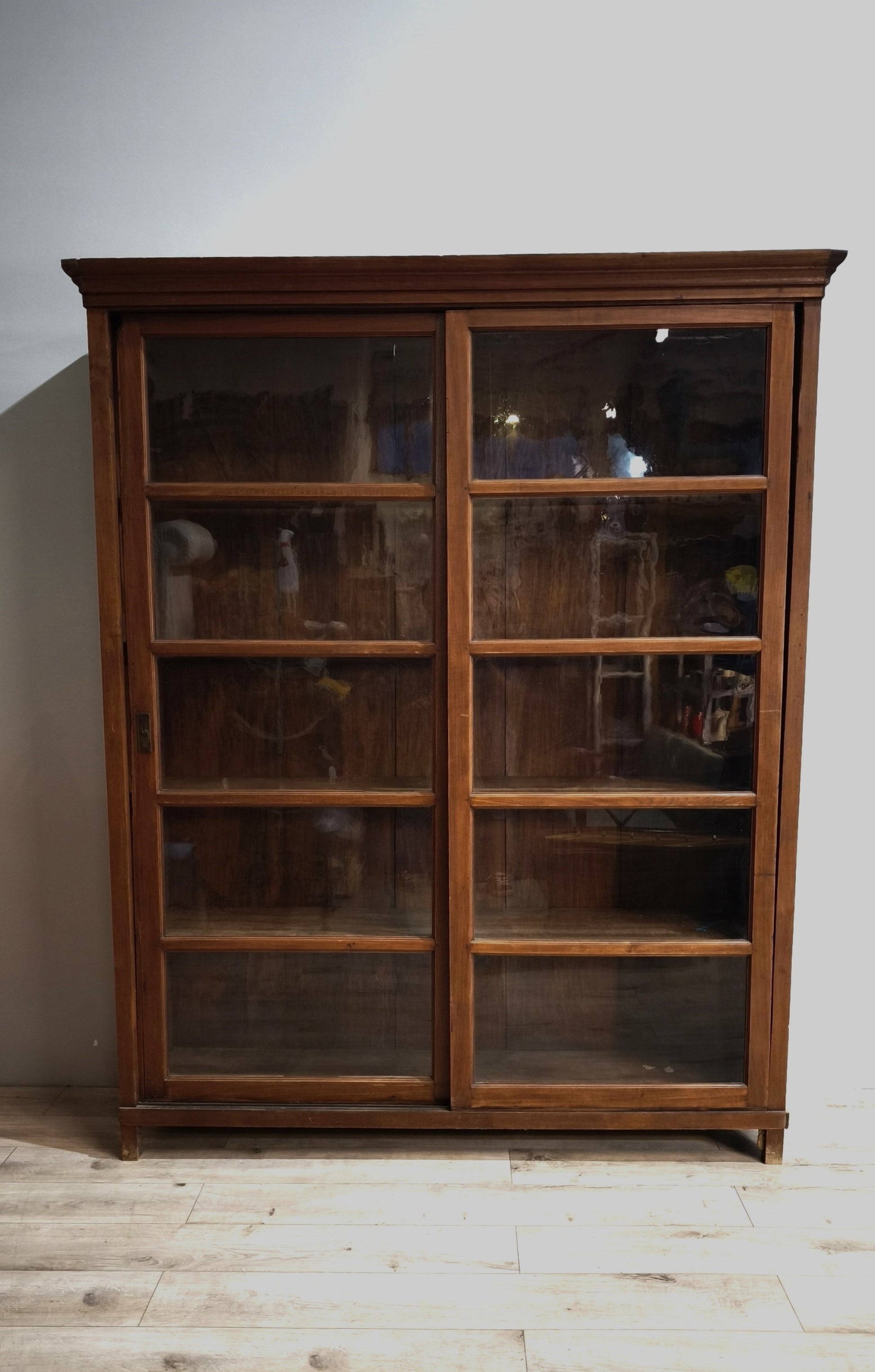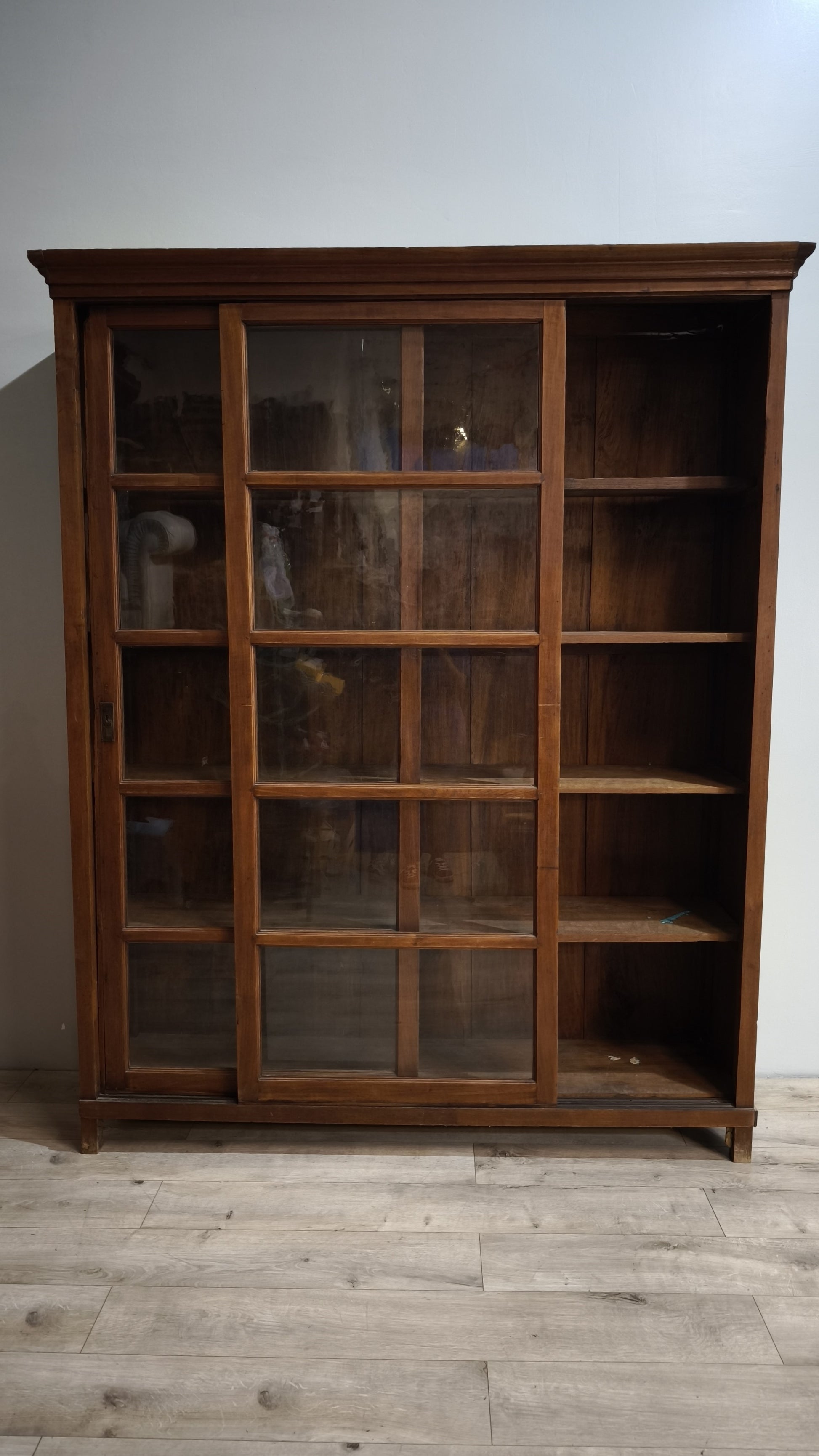 Vetrina in legno massello composta da due ante scorrevoli, all'interno quattro ripiani