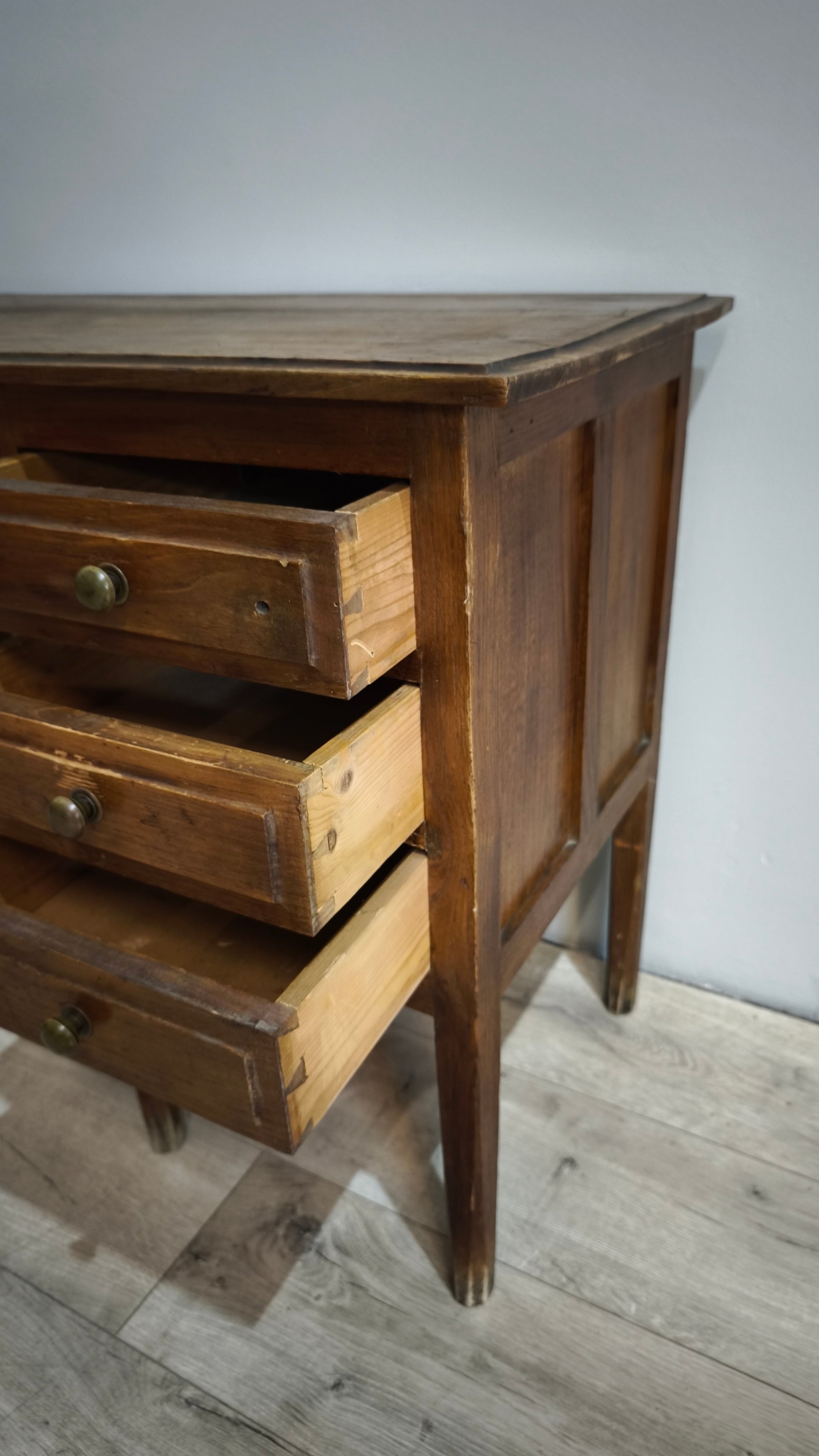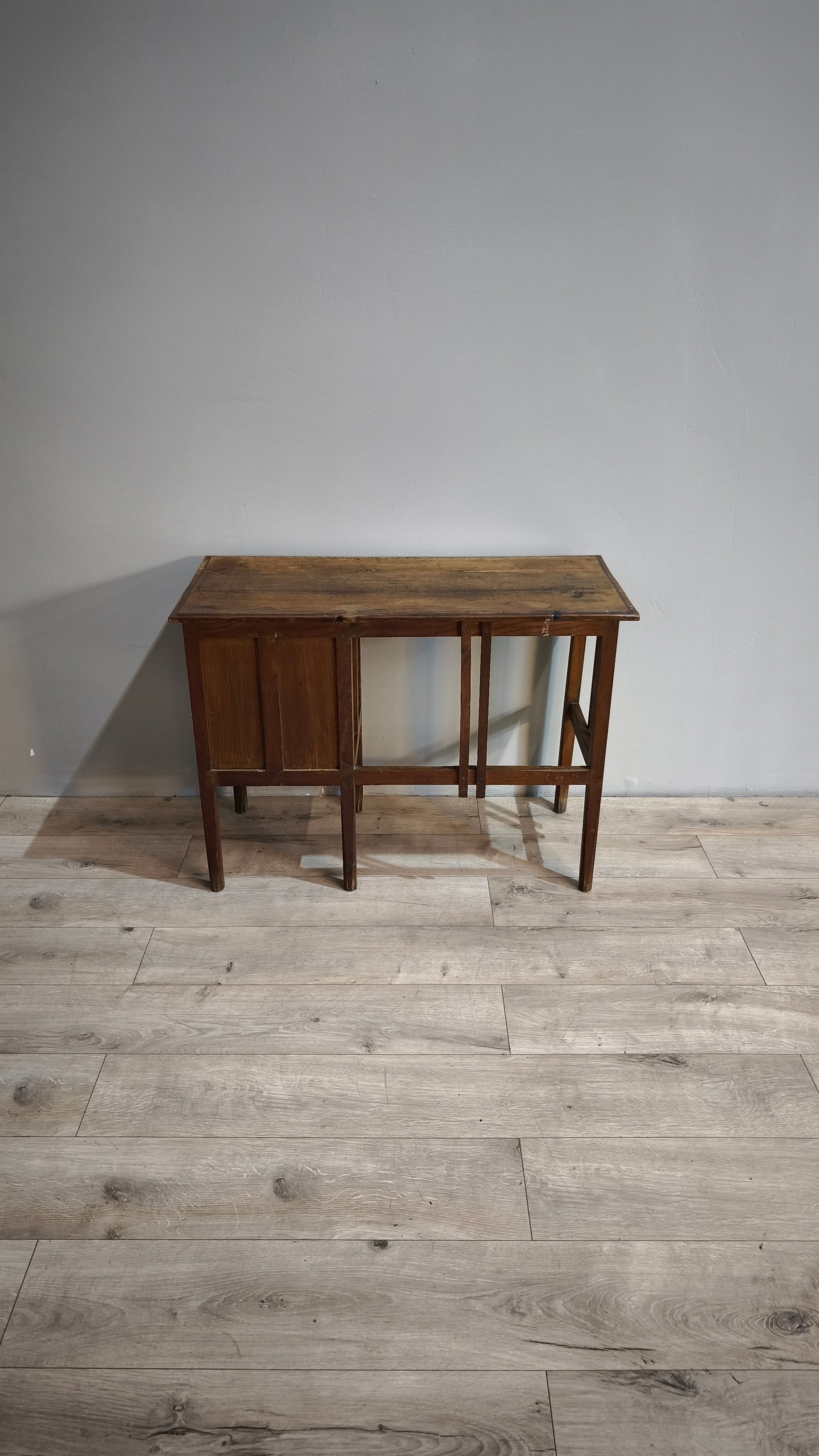 Presenta segni del tempo e dell'uso, il piano presenta delle macchie, c'è un piccolo foro sul primo cassetto, le foto sono parte integrante della descrizione