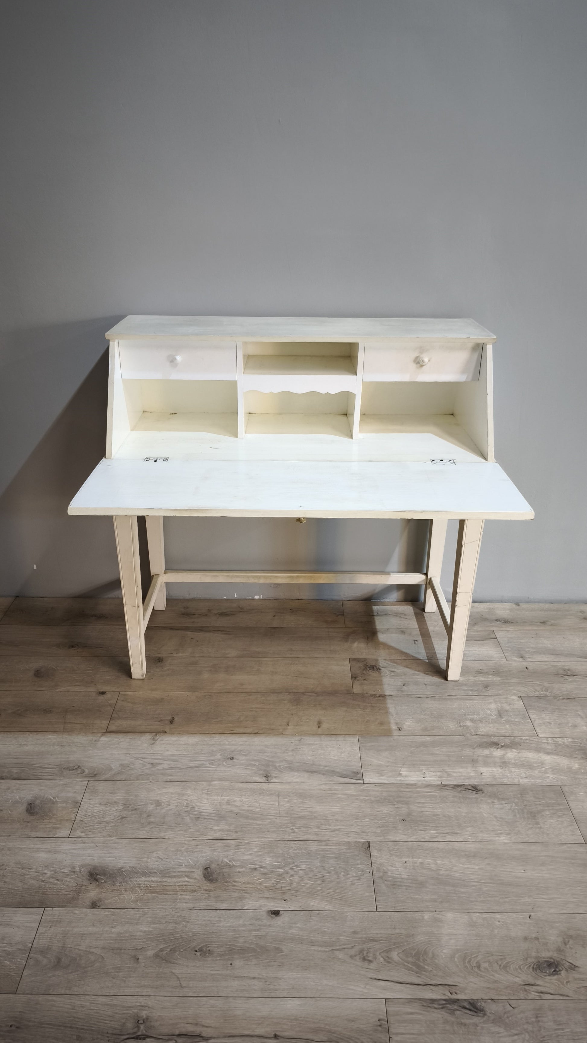 Secretaire bianco in legno con piano a ribalta