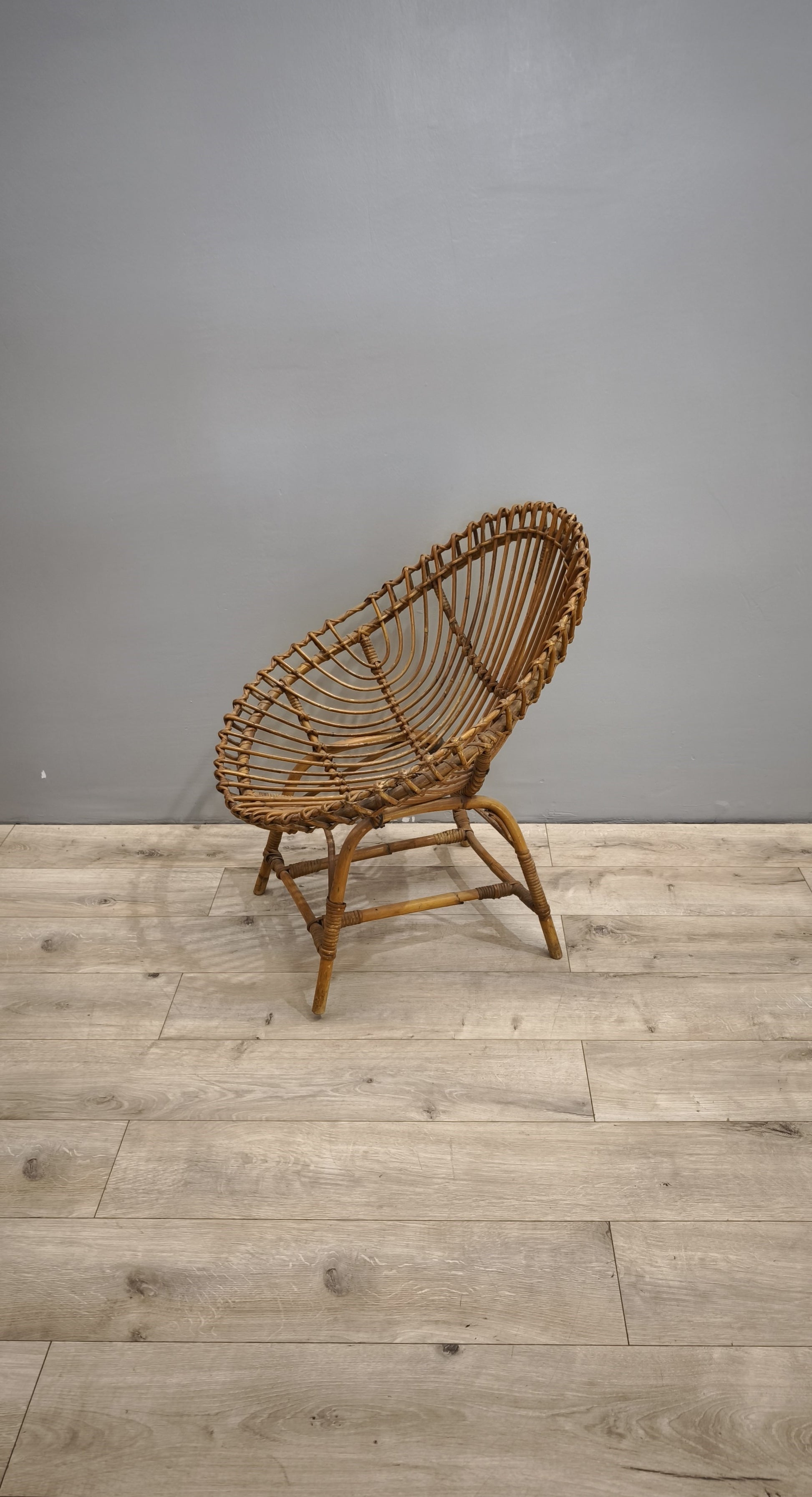 84654-2 Poltroncina in vimini intrecciato con seduta ovale