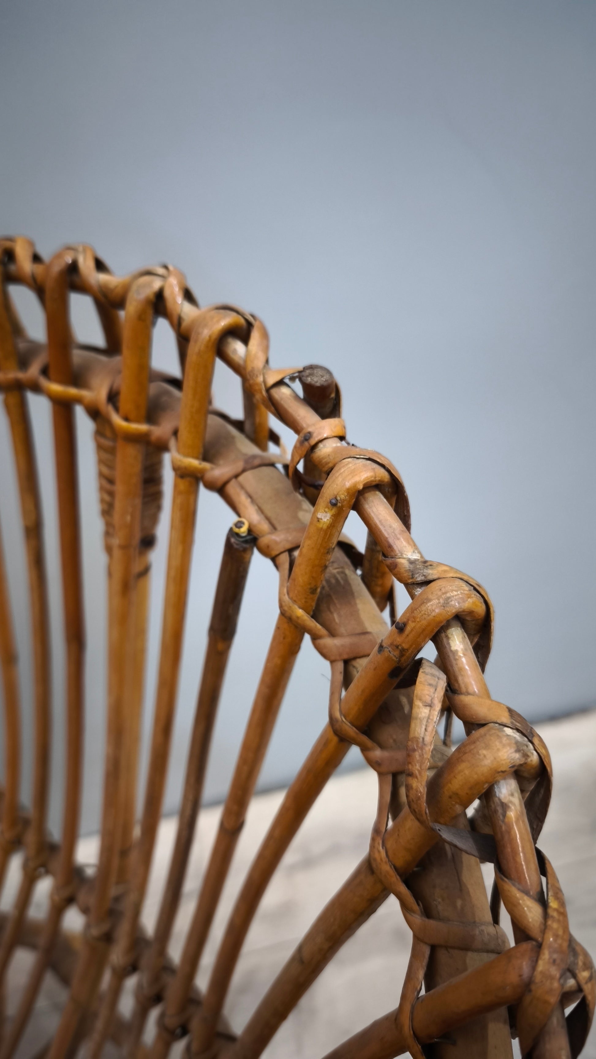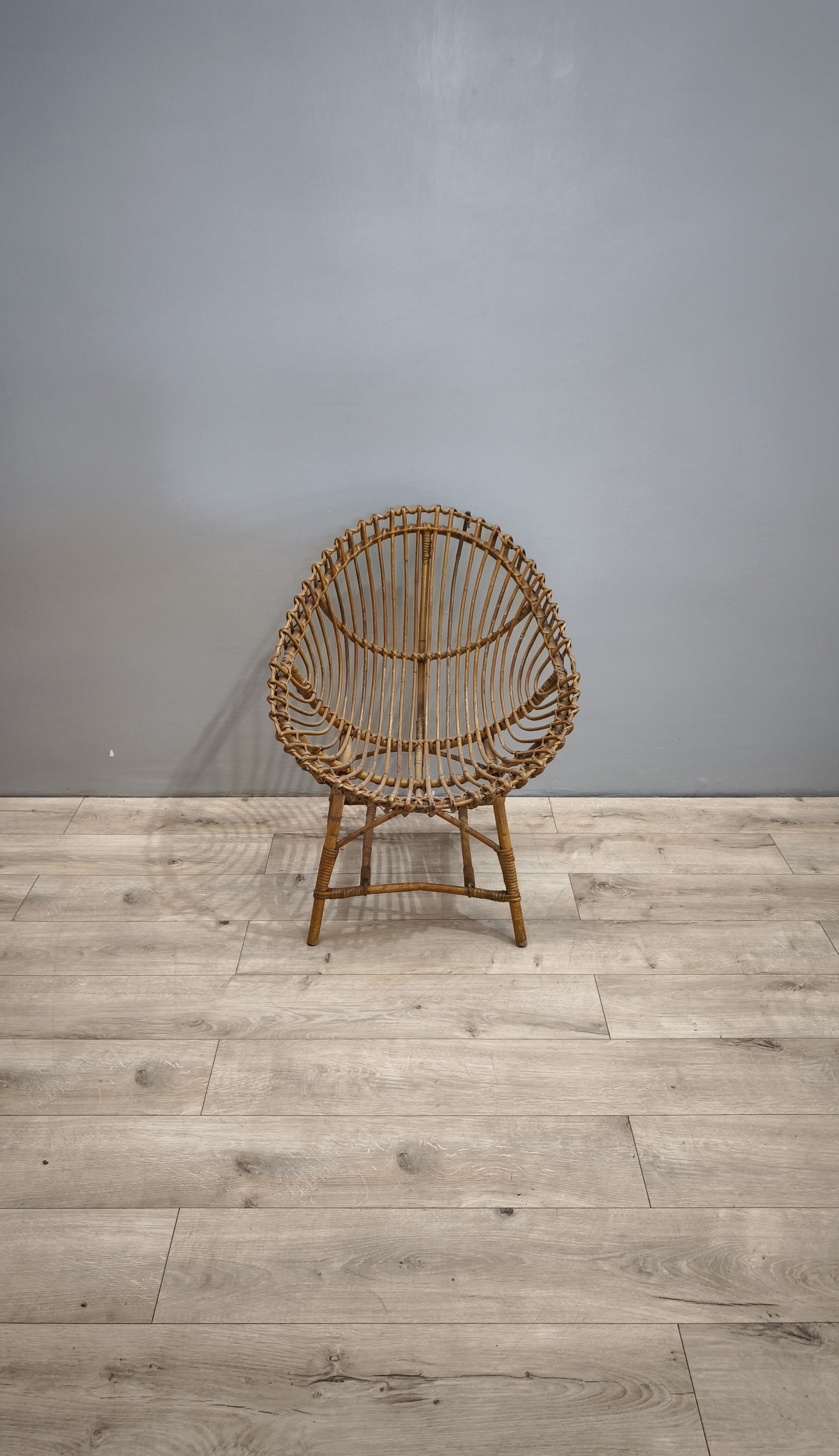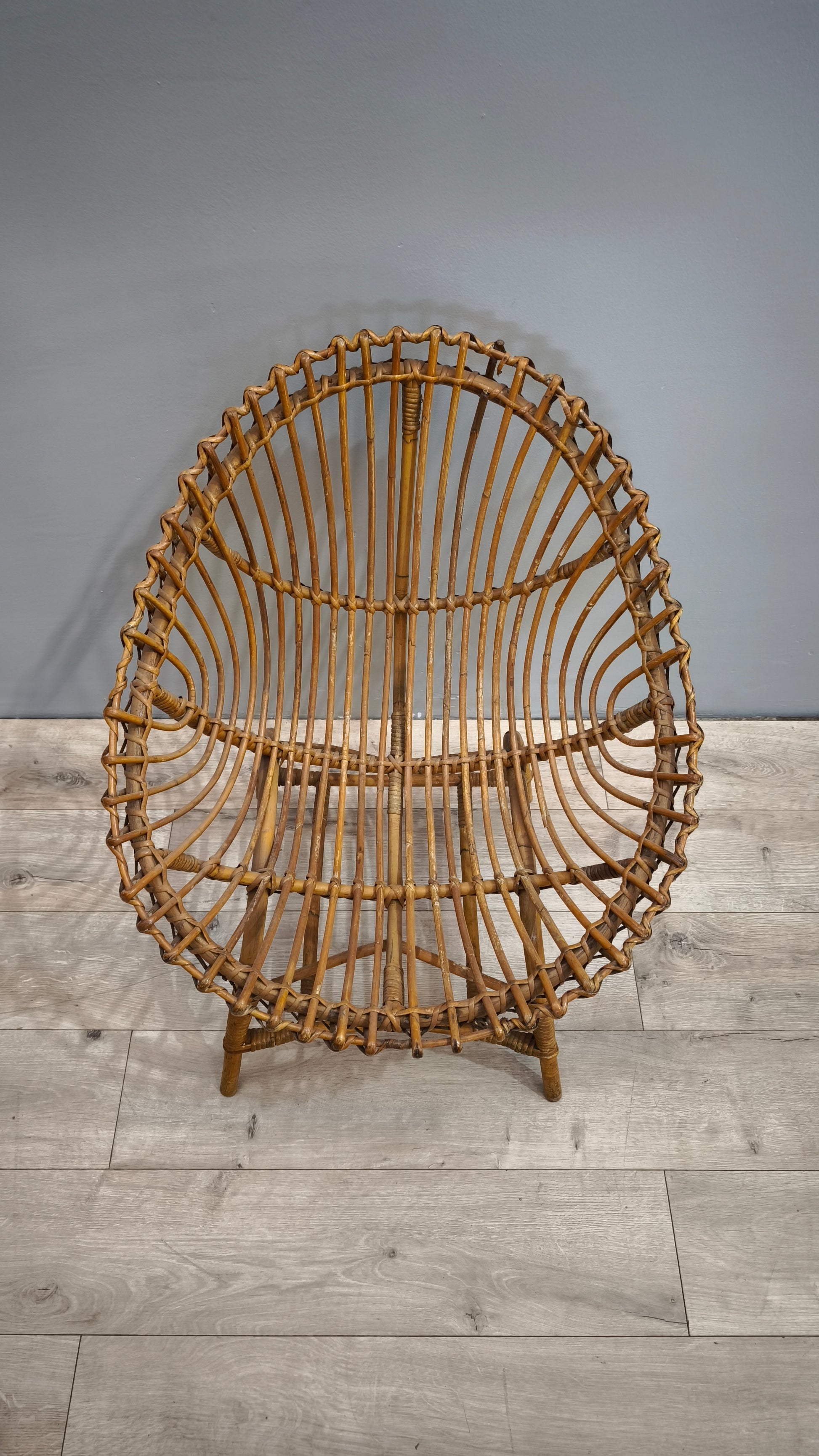 Poltroncina in vimini intrecciato con seduta ovale