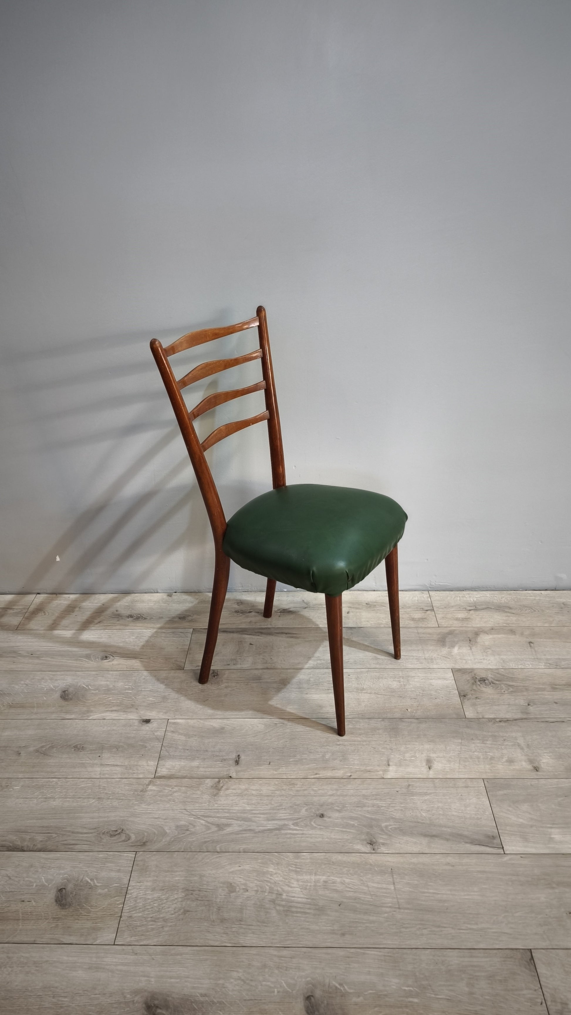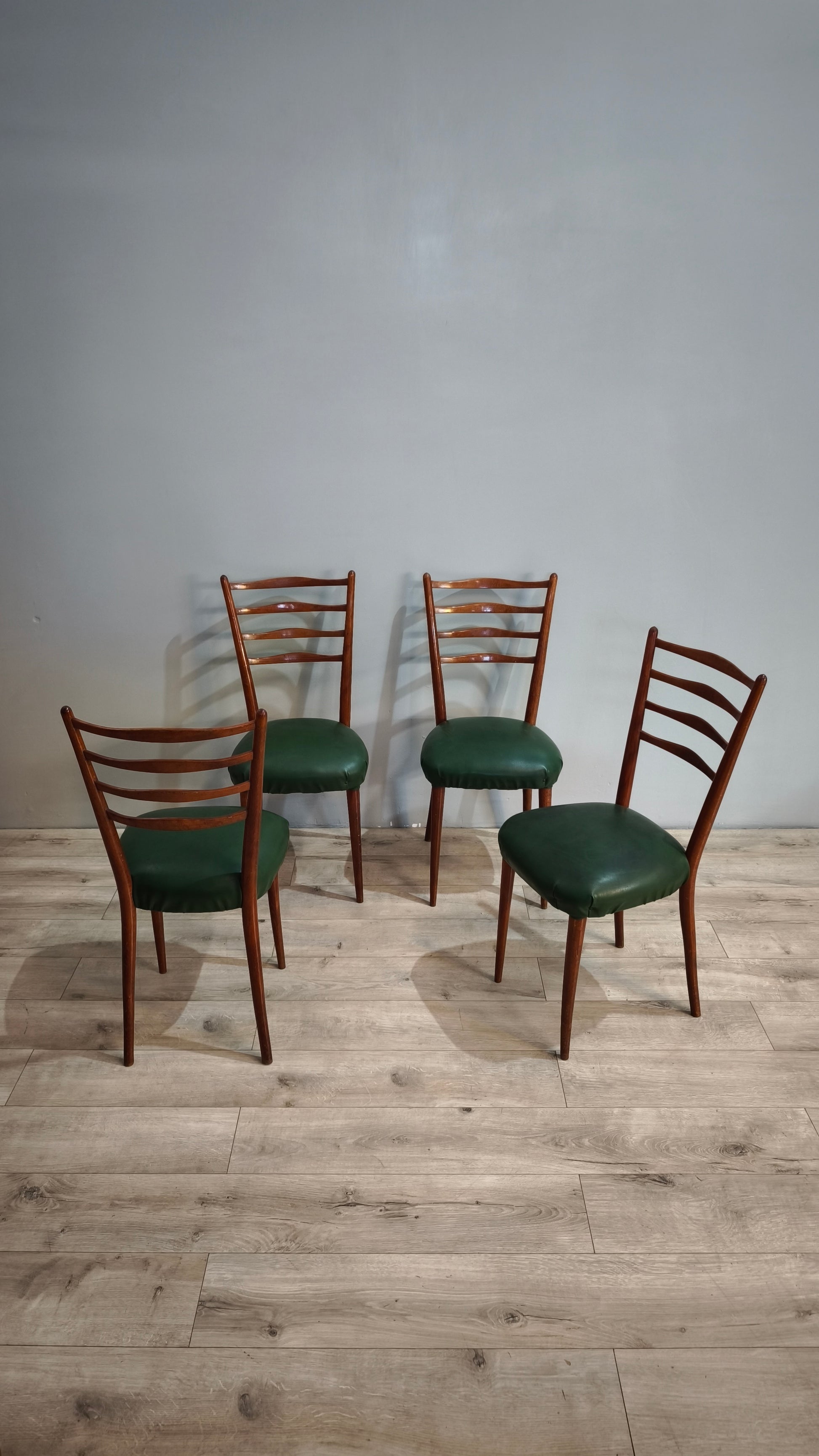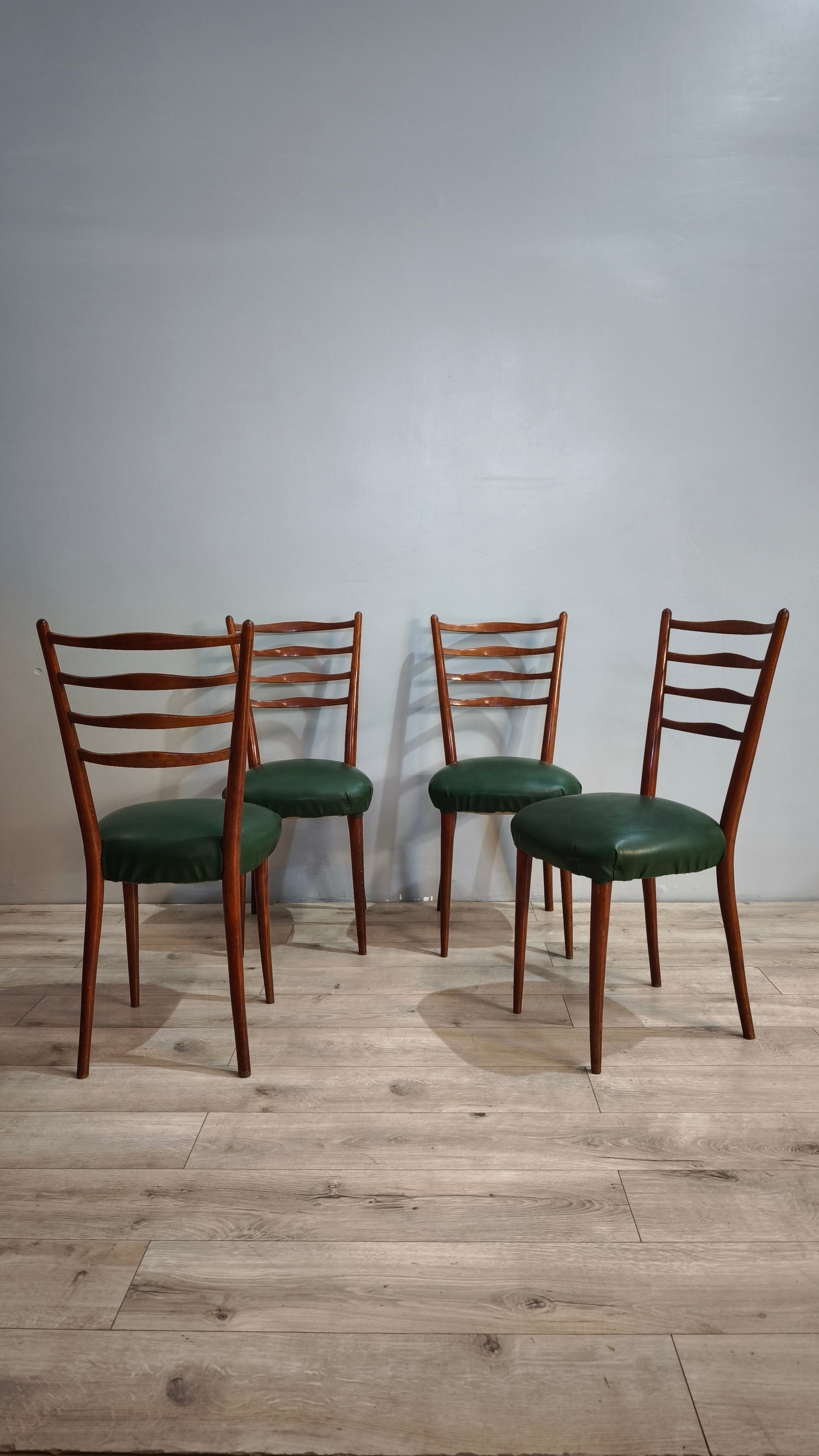 Set n 4 sedie con struttura in legno e seduta imbottita e rivestita in similpelle verde