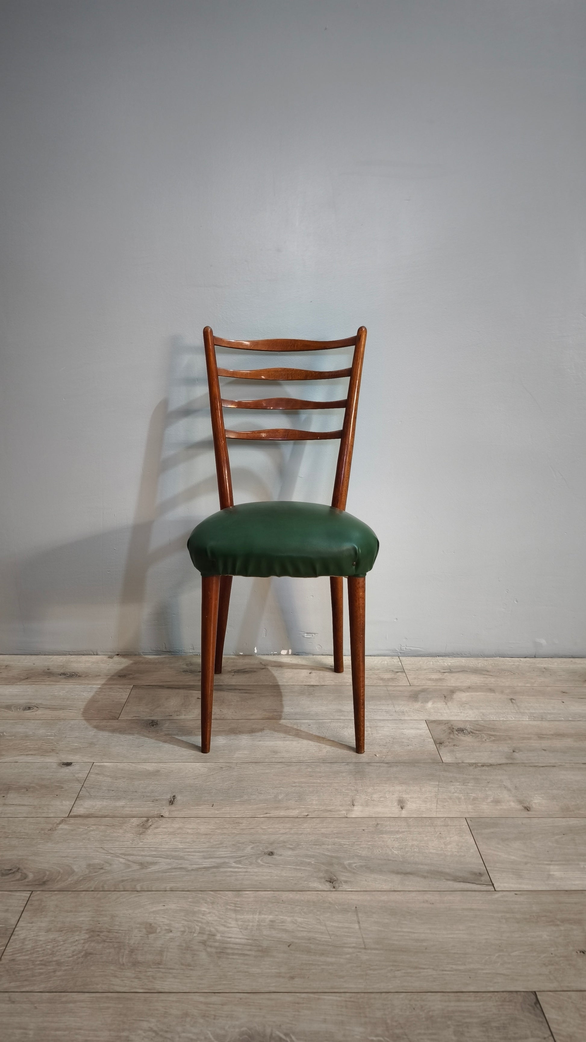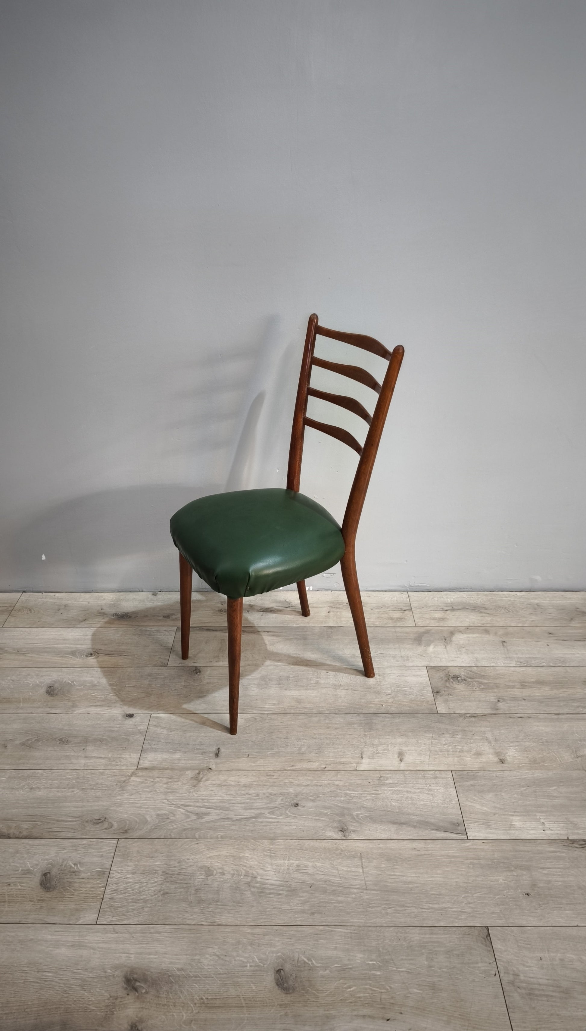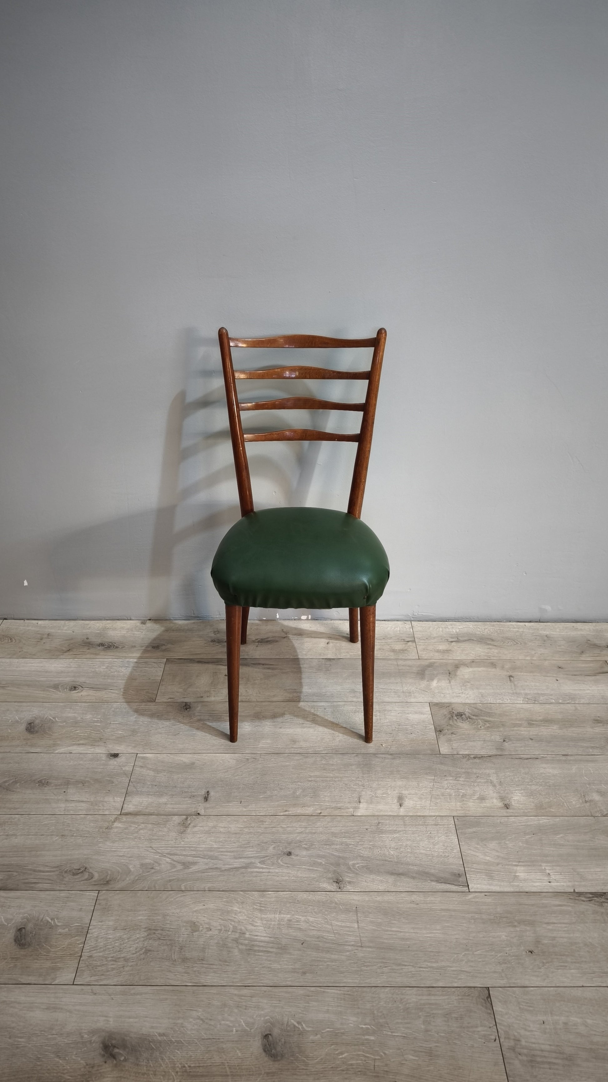 Set n 4 sedie con struttura in legno e seduta imbottita e rivestita in similpelle verde