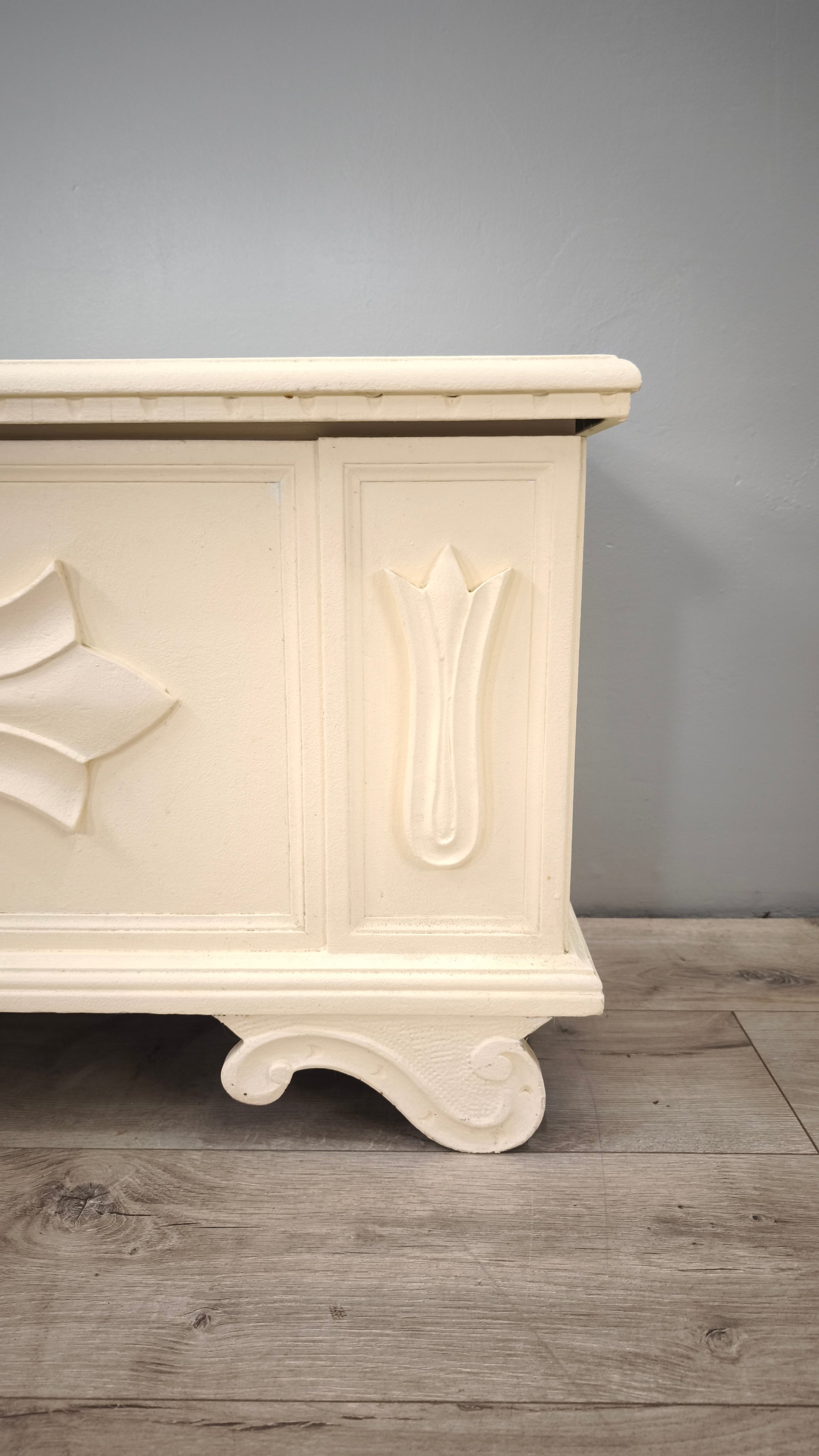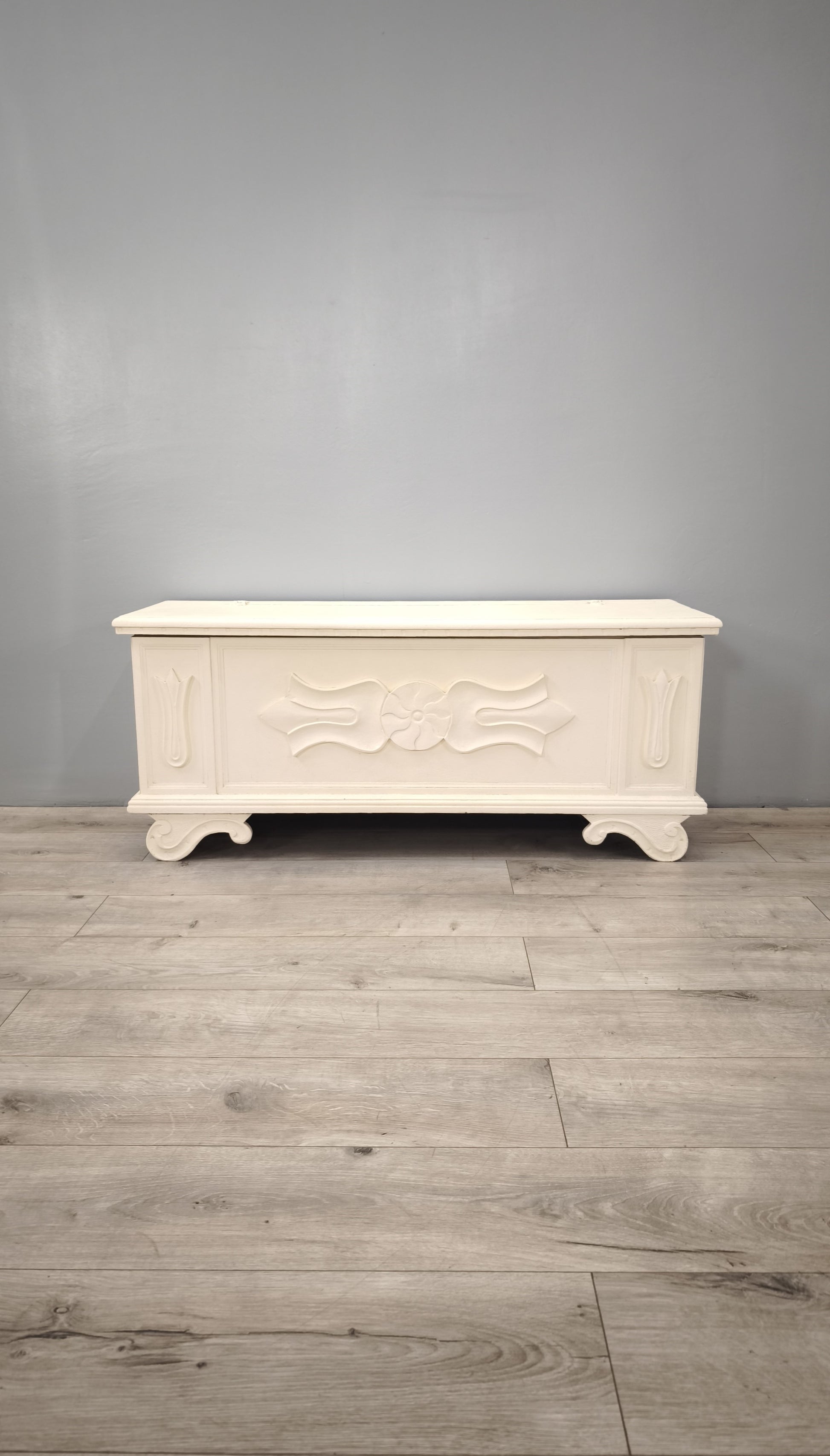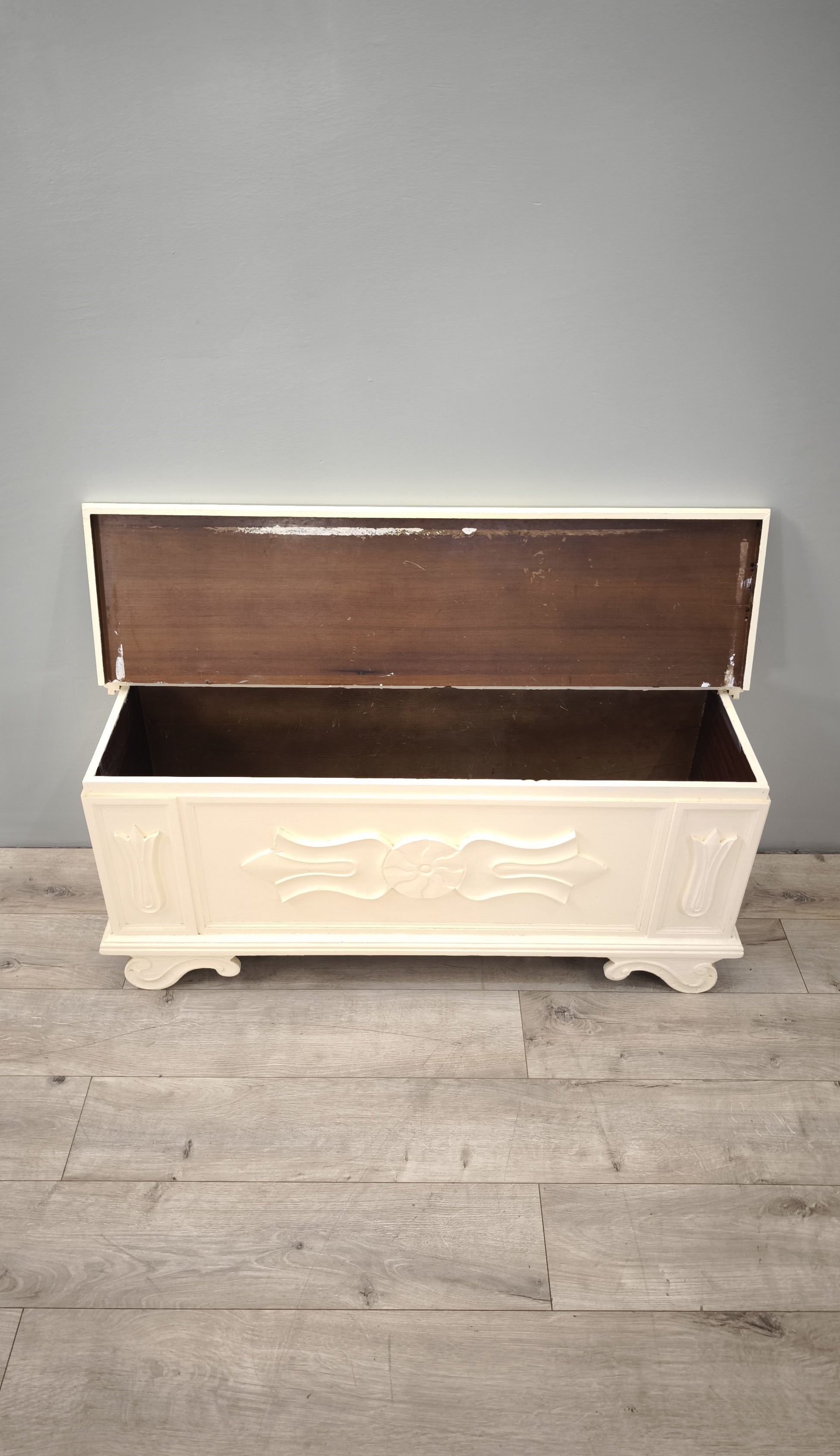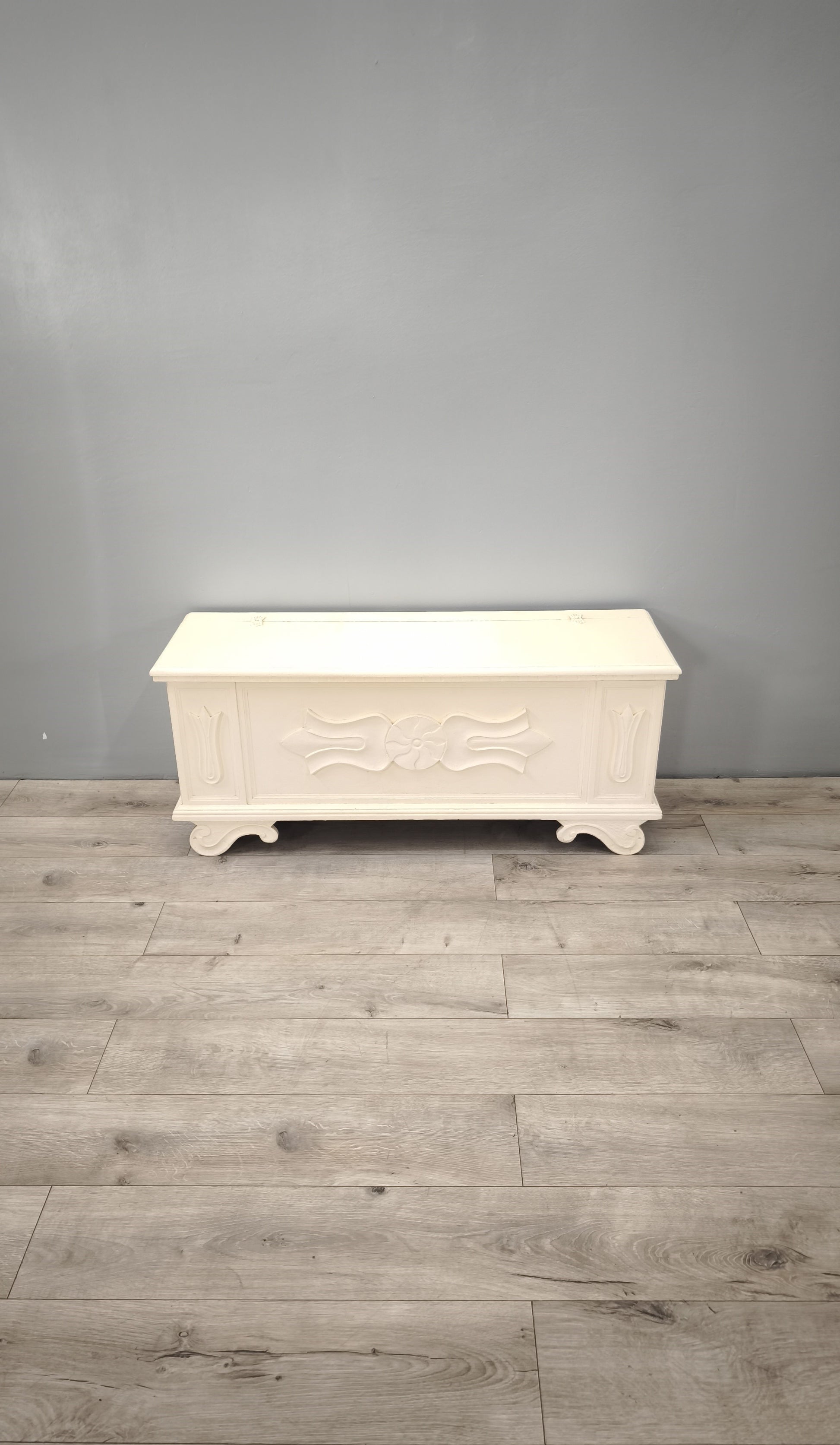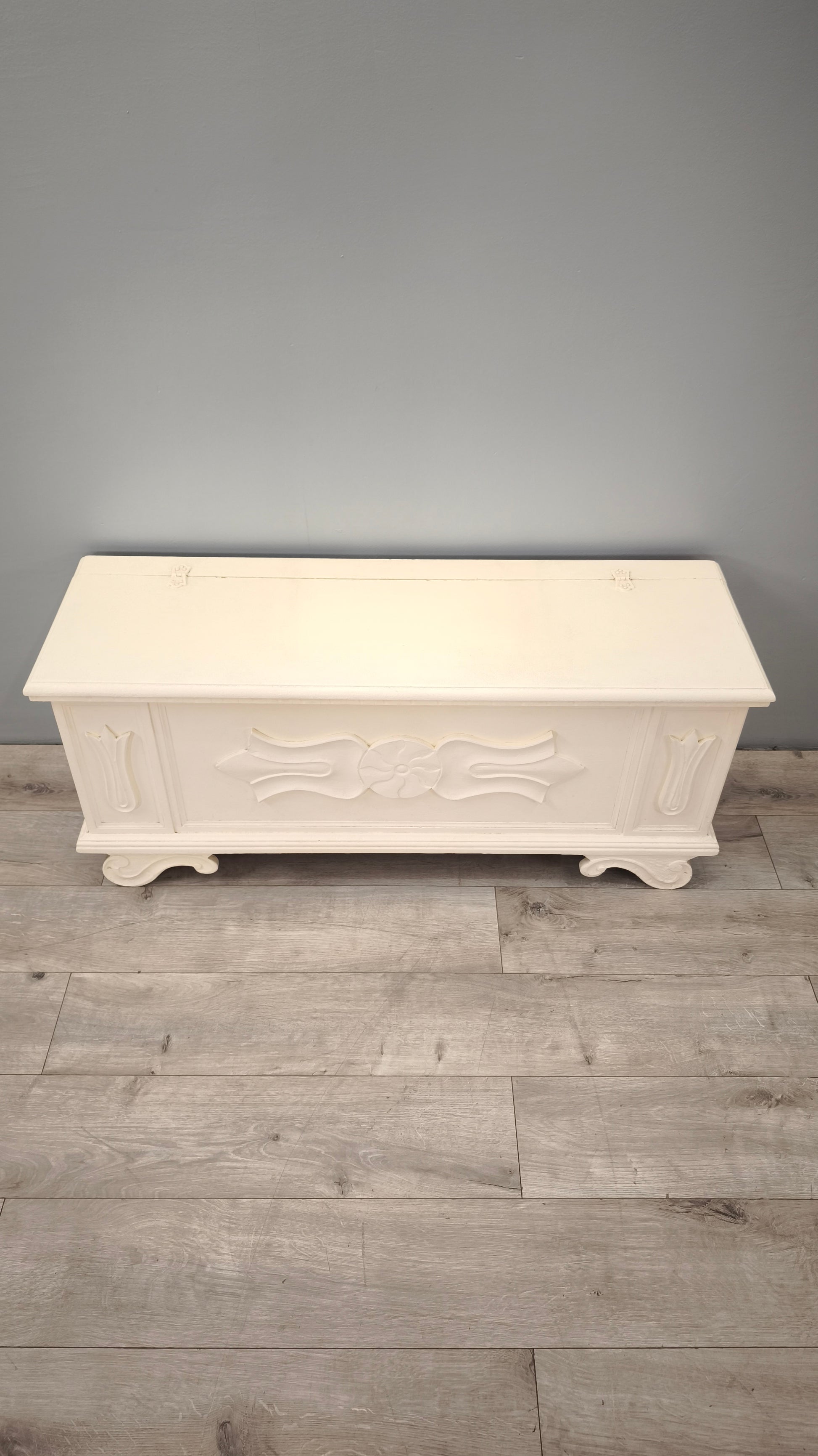 Cassapanca in legno dipinta bianca, l'interno è color legno