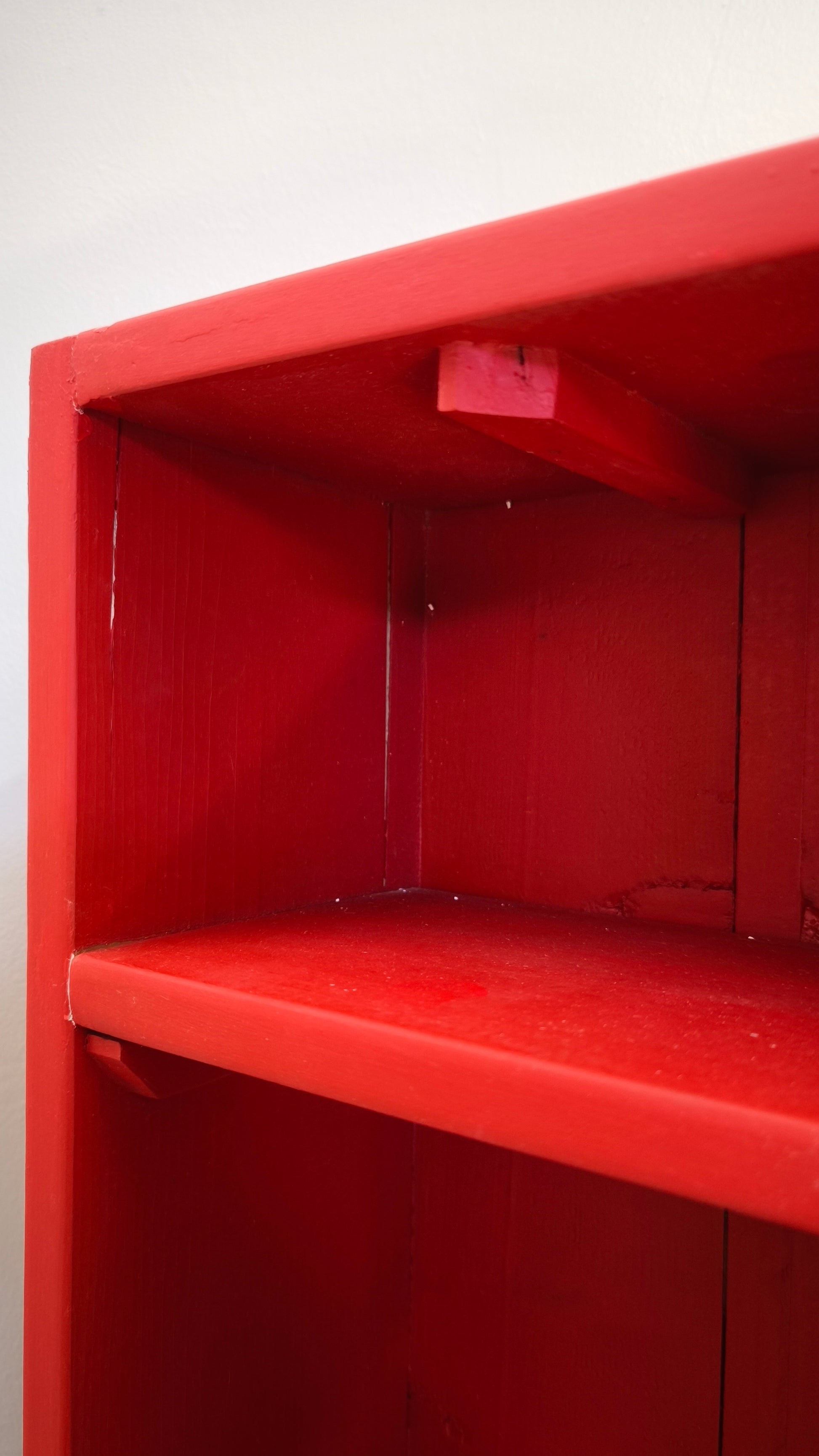 Libreria a colonna in legno dipinta rossa