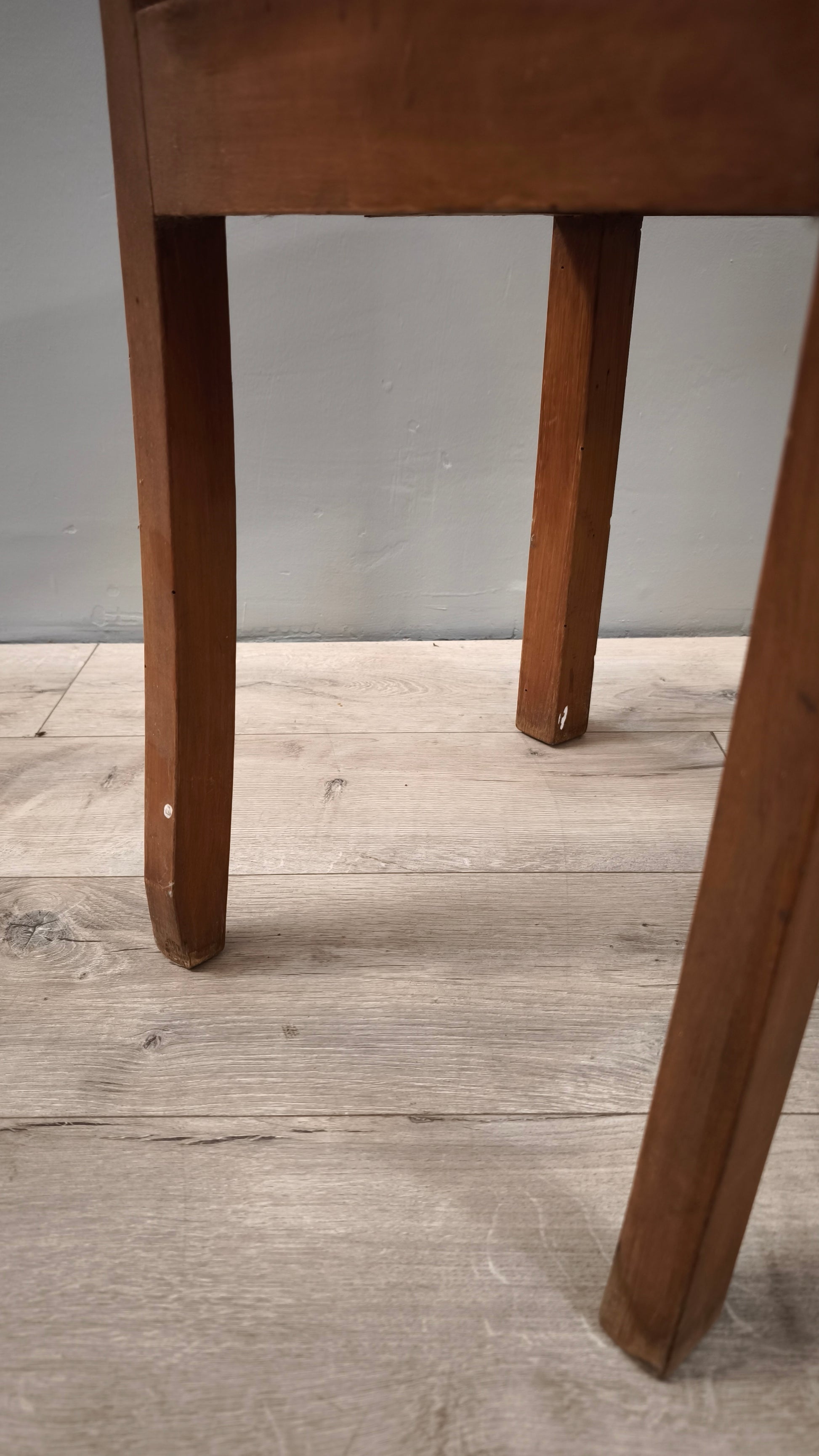 Presenta qualche segno del tempo, troviamo buchi di vecchia tarlatura, è presente qualche piccola macchia di vernice sulla gambe, la seduta ha un difetto, le foto sono parte integrante della descrizione