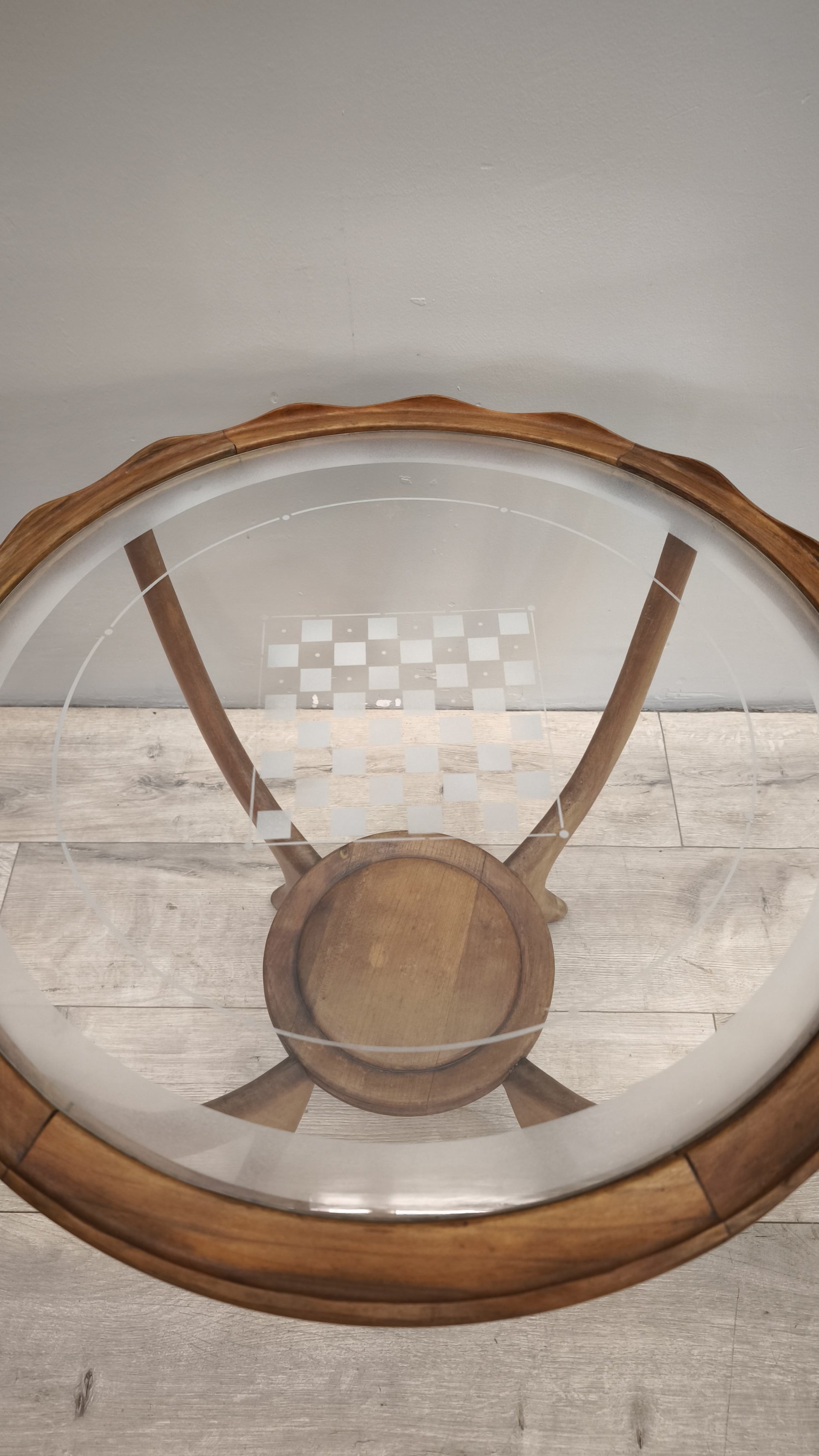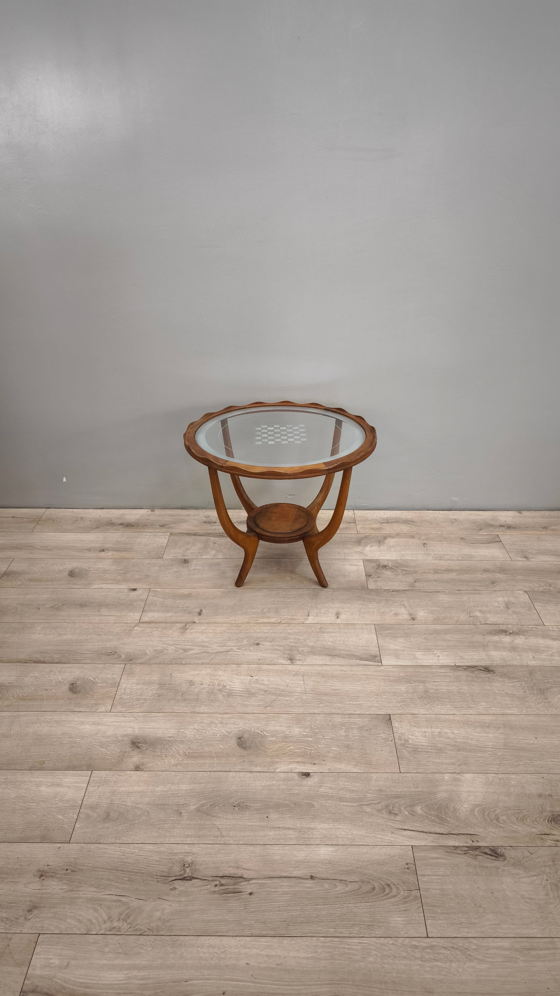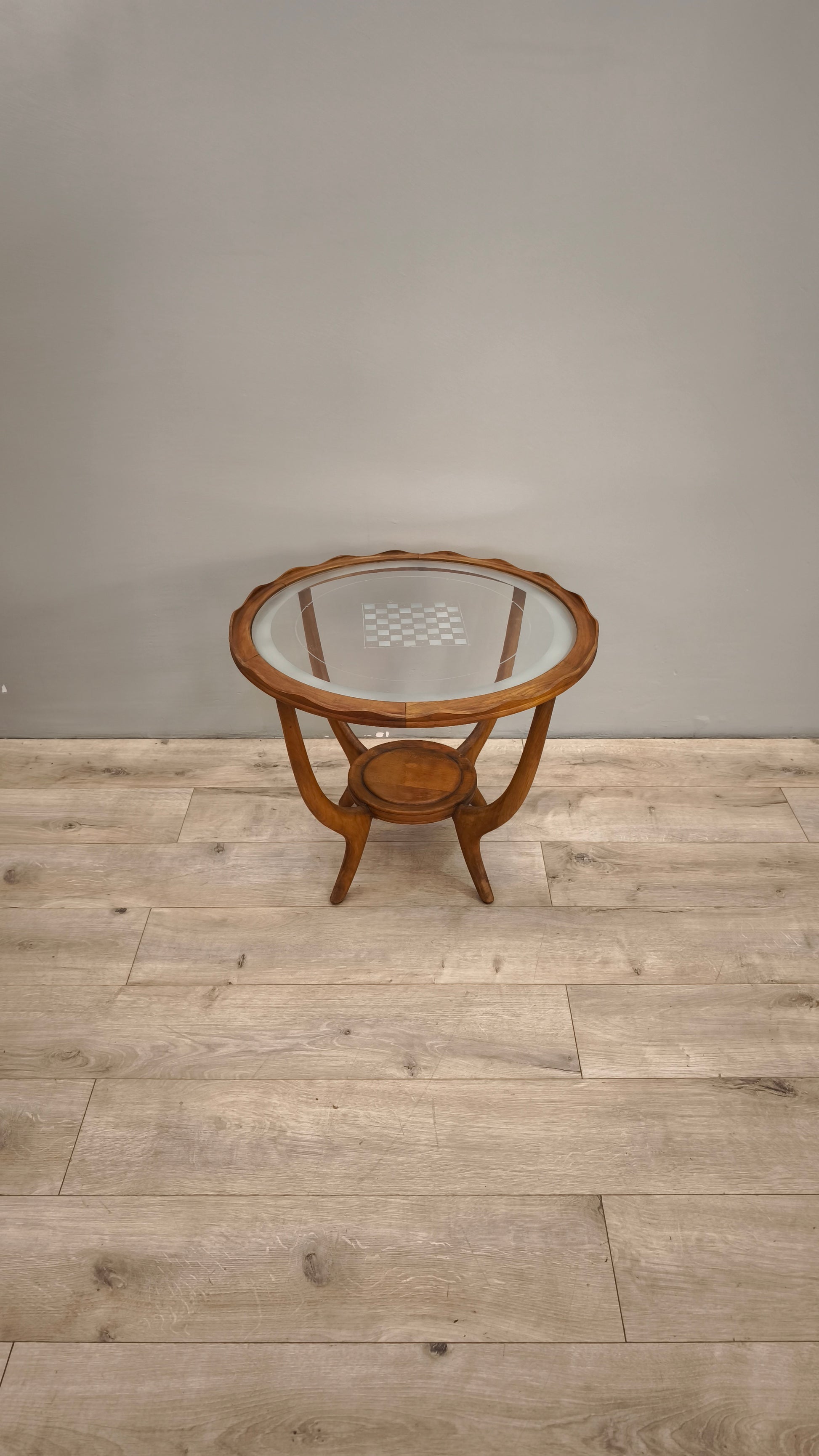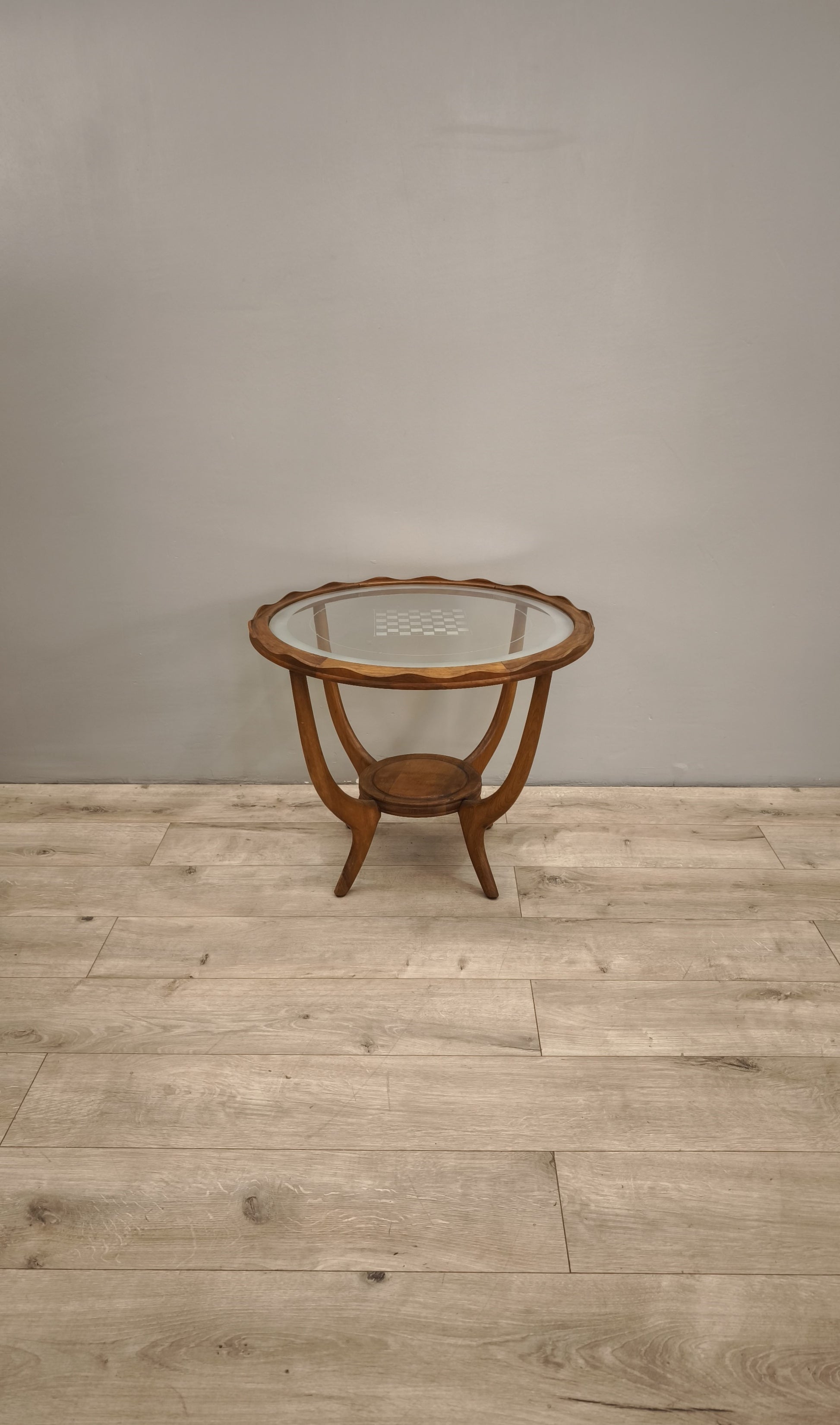 86007 Tavolino da salotto Paolo Buffa in legno con piano rotondo in vetro