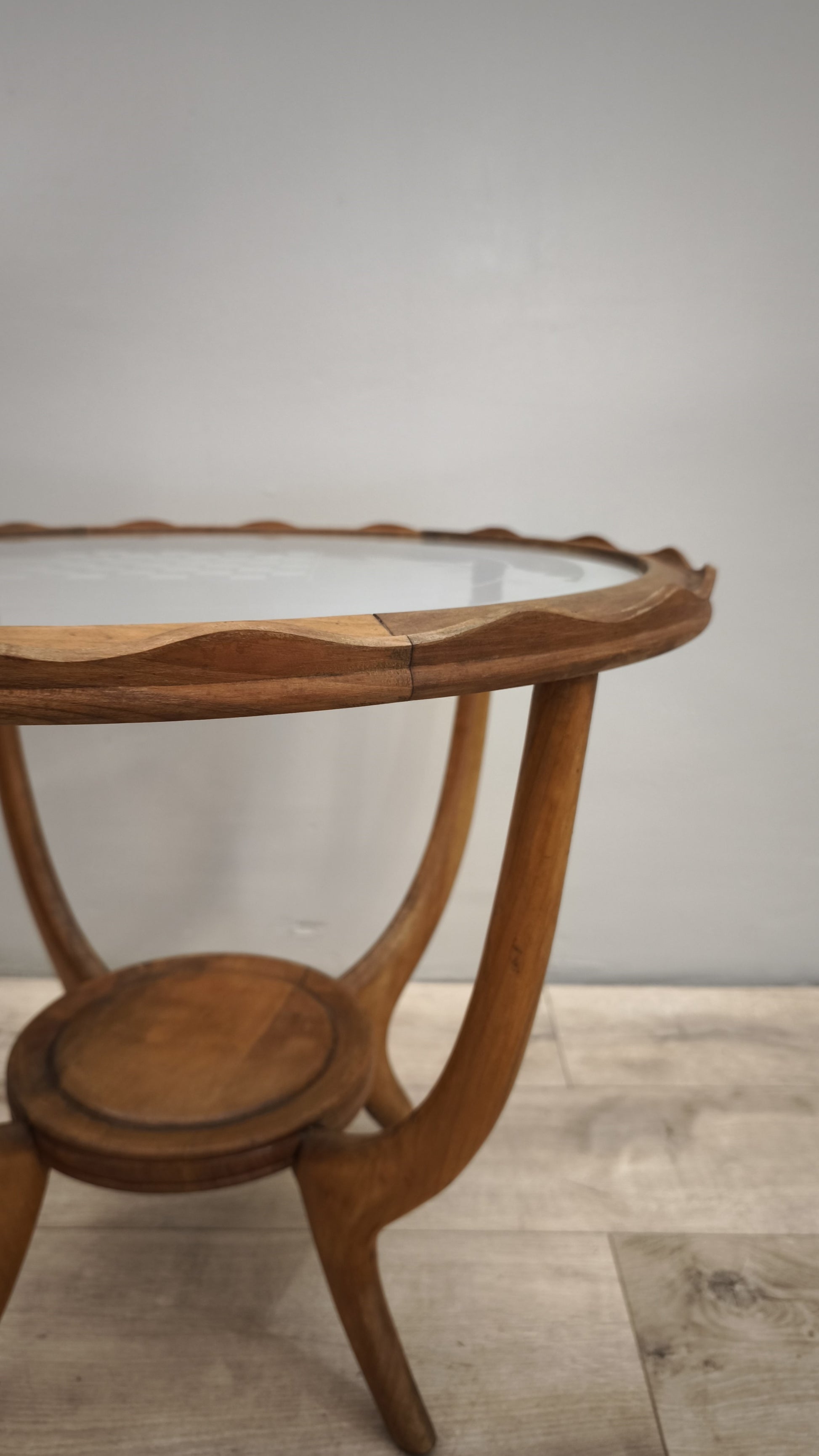 Tavolino da salotto Paolo Buffa in legno con piano rotondo in vetro