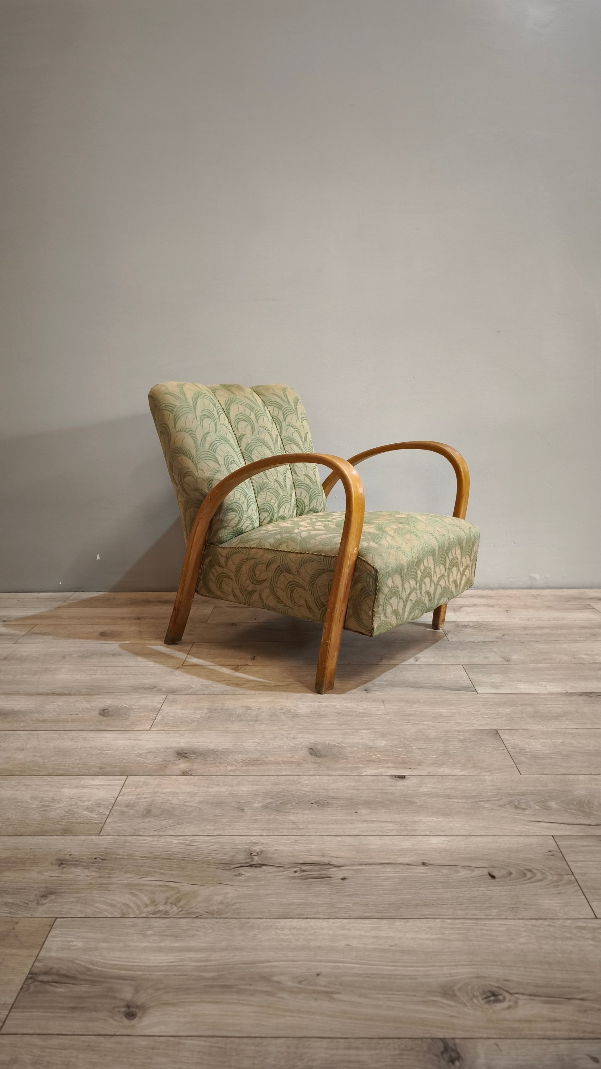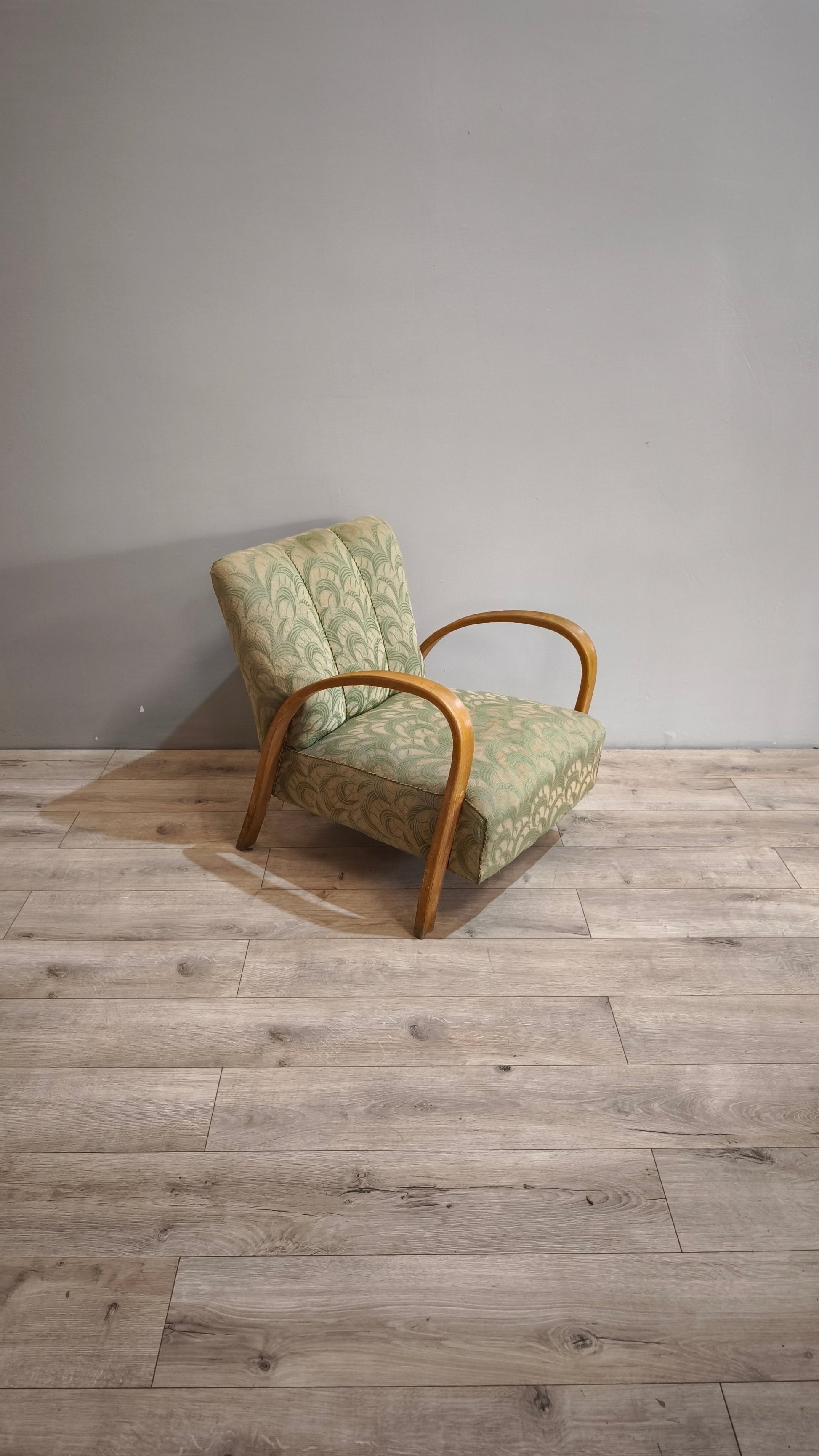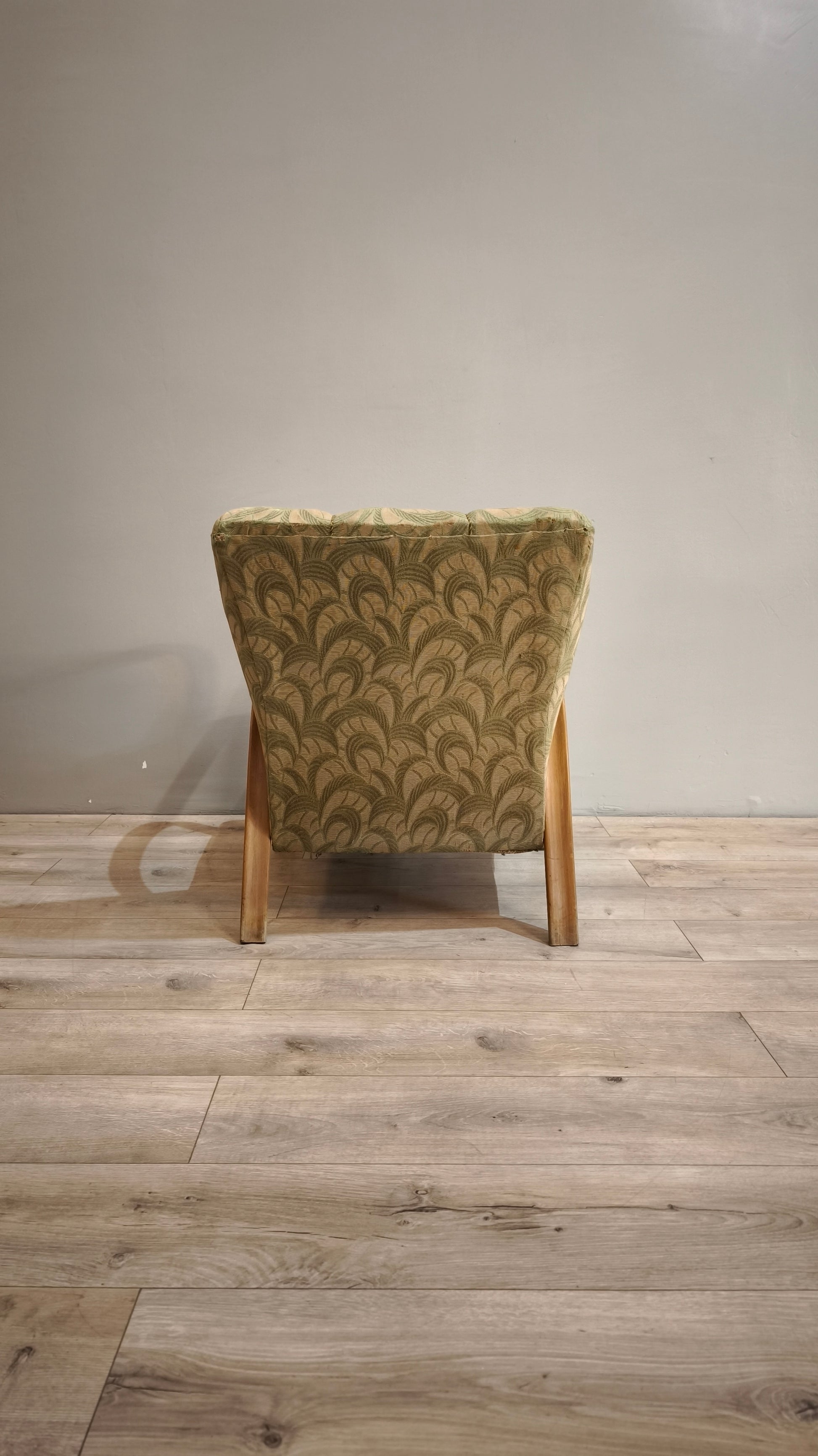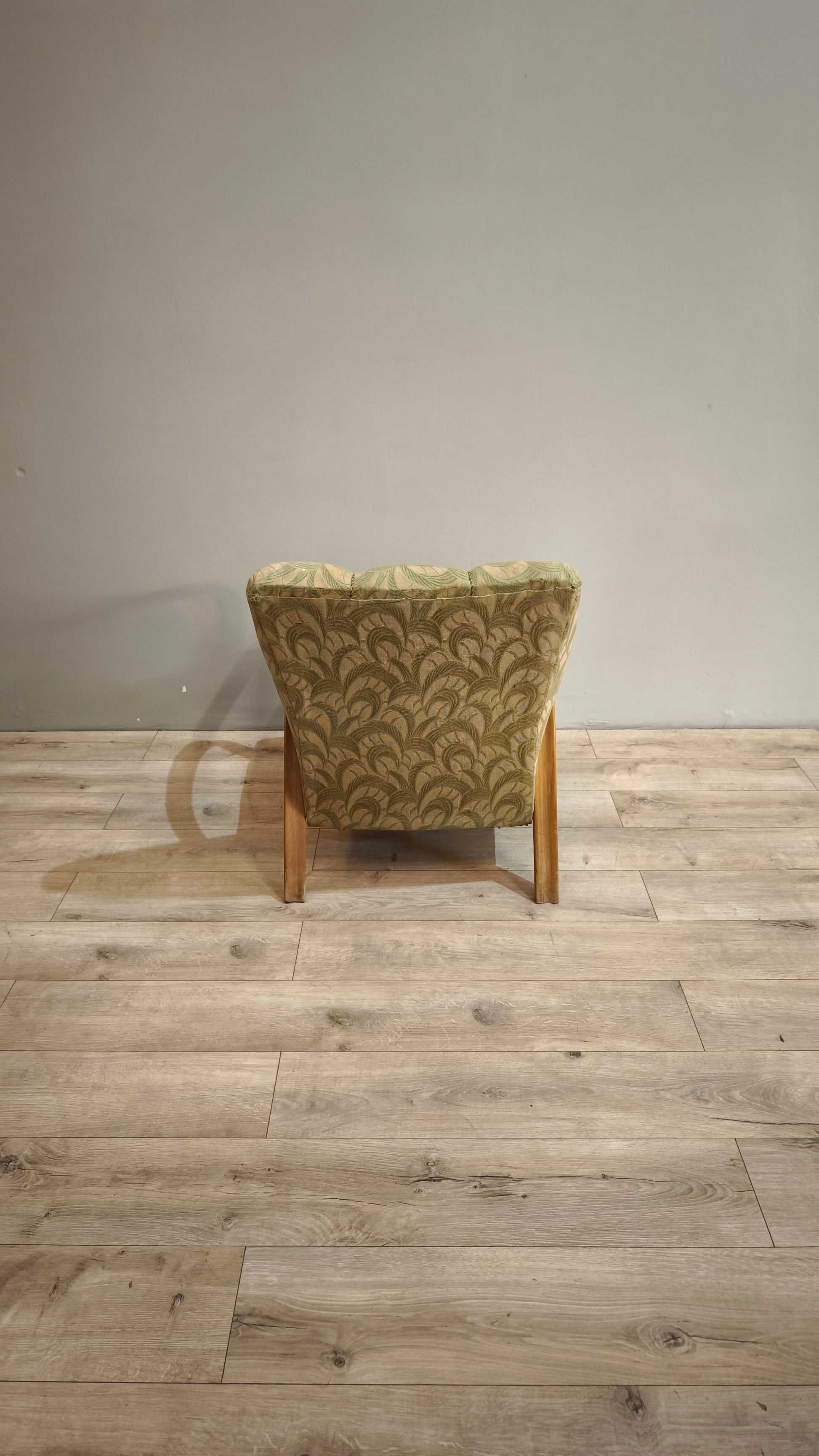 Poltrona déco con struttura in legno e tappezzeria verde