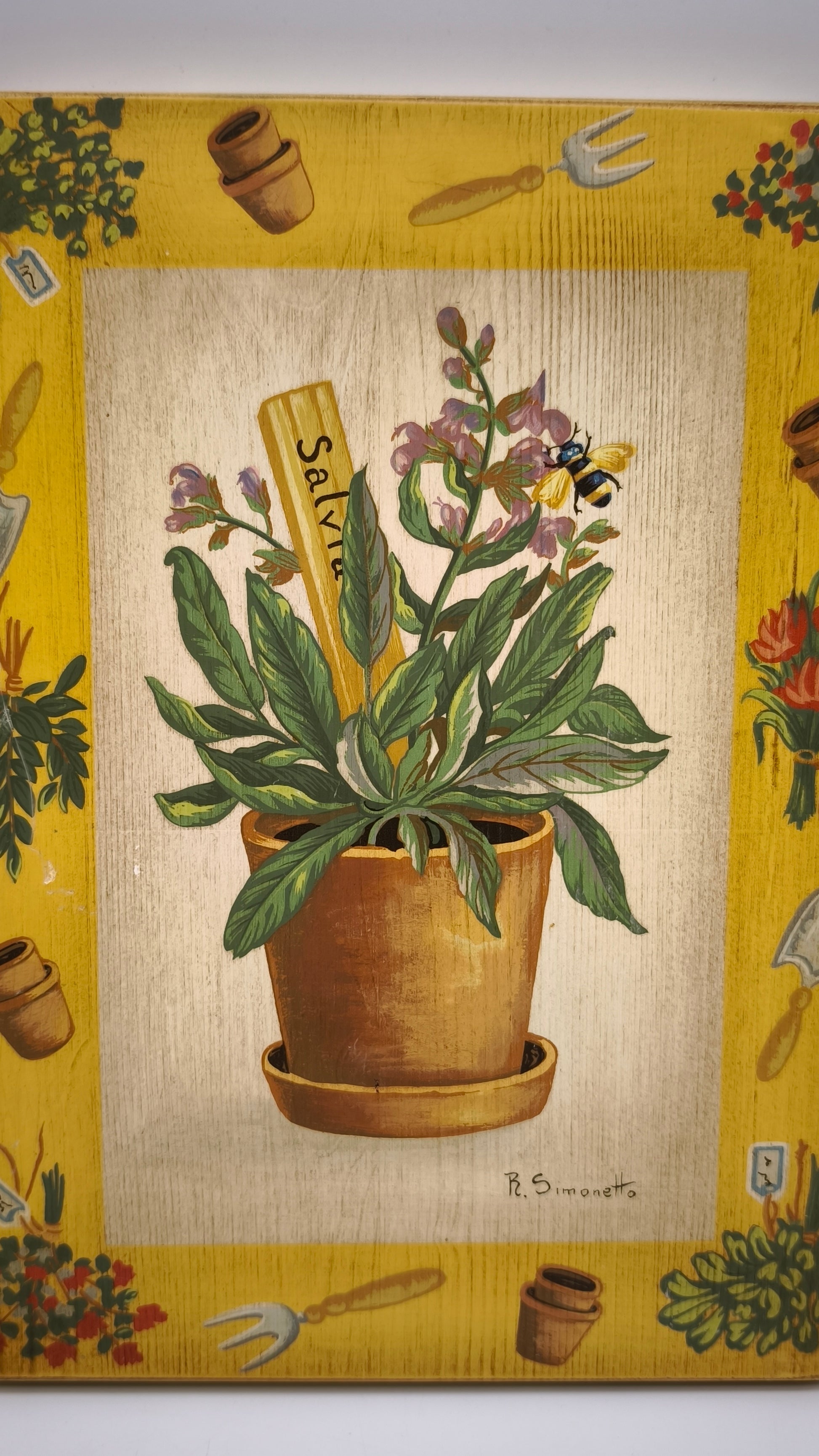 Quadretto su legno dipinto, Rita Simonetto, Salvia
