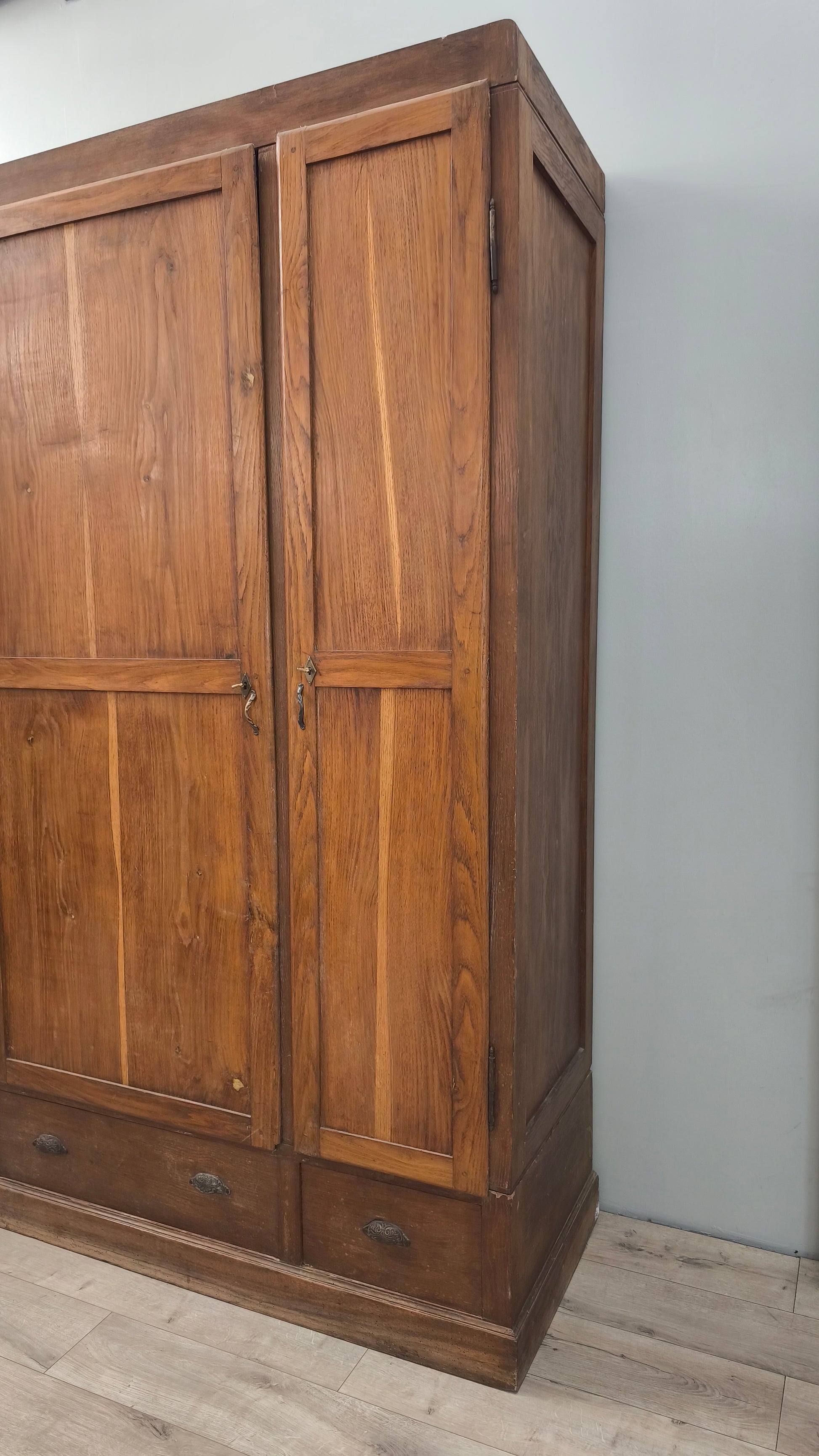 Grande armadio in legno composto da tre ante con tre cassetti nella parte inferiore, all'interno vari ripiani