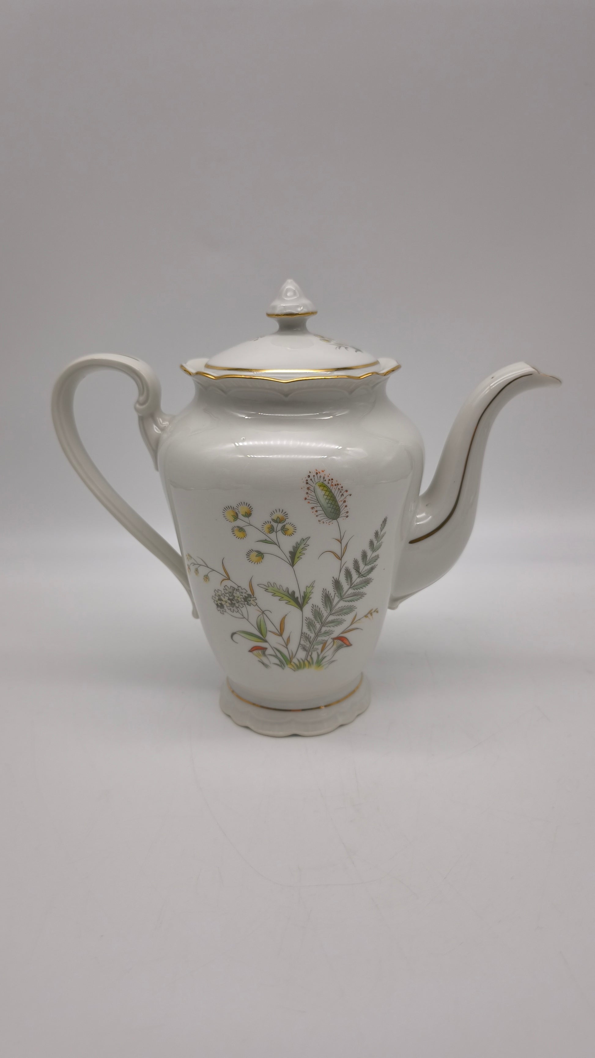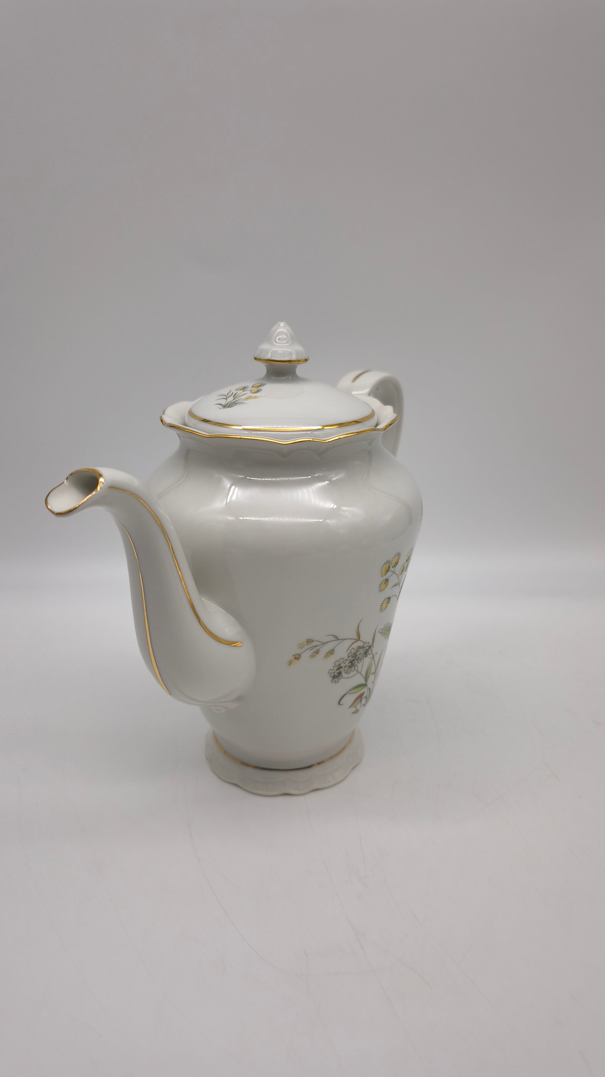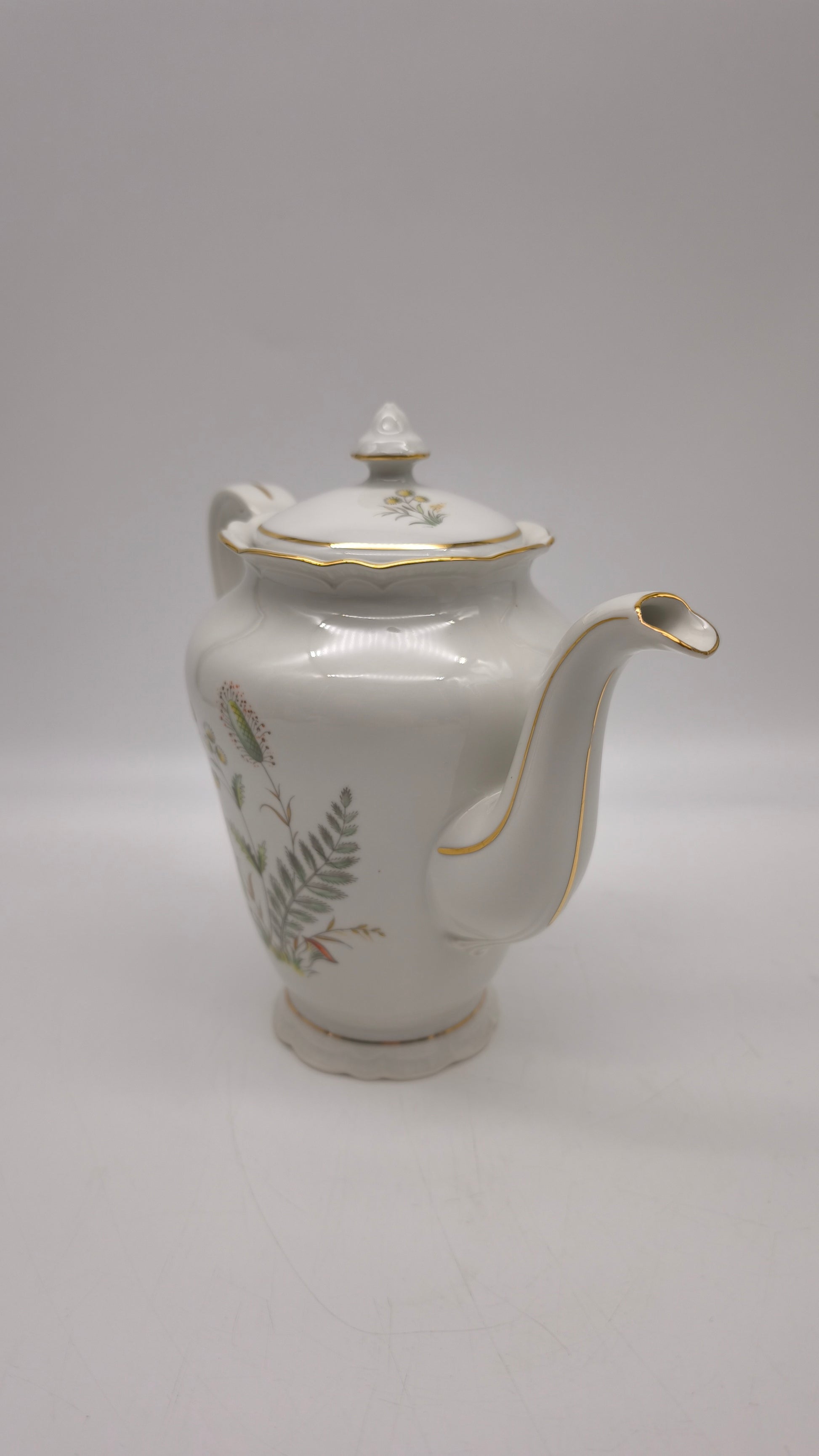 Servizio da caffè per 10 persone in ceramica cecoslovacca con decoro a motivo floreale composto da caffettiera, lattiera, zuccheriera e 10 tazzine con piattino