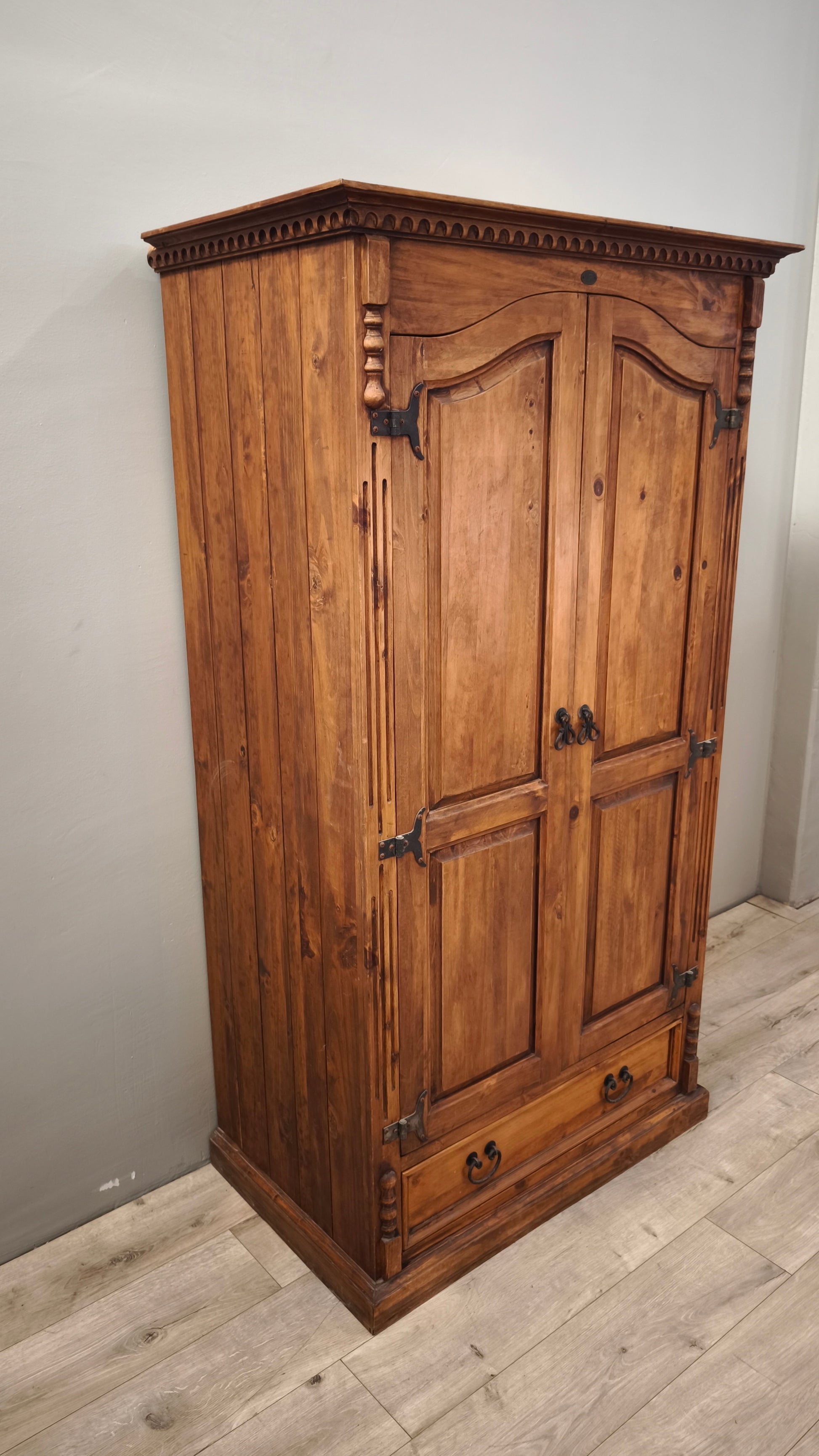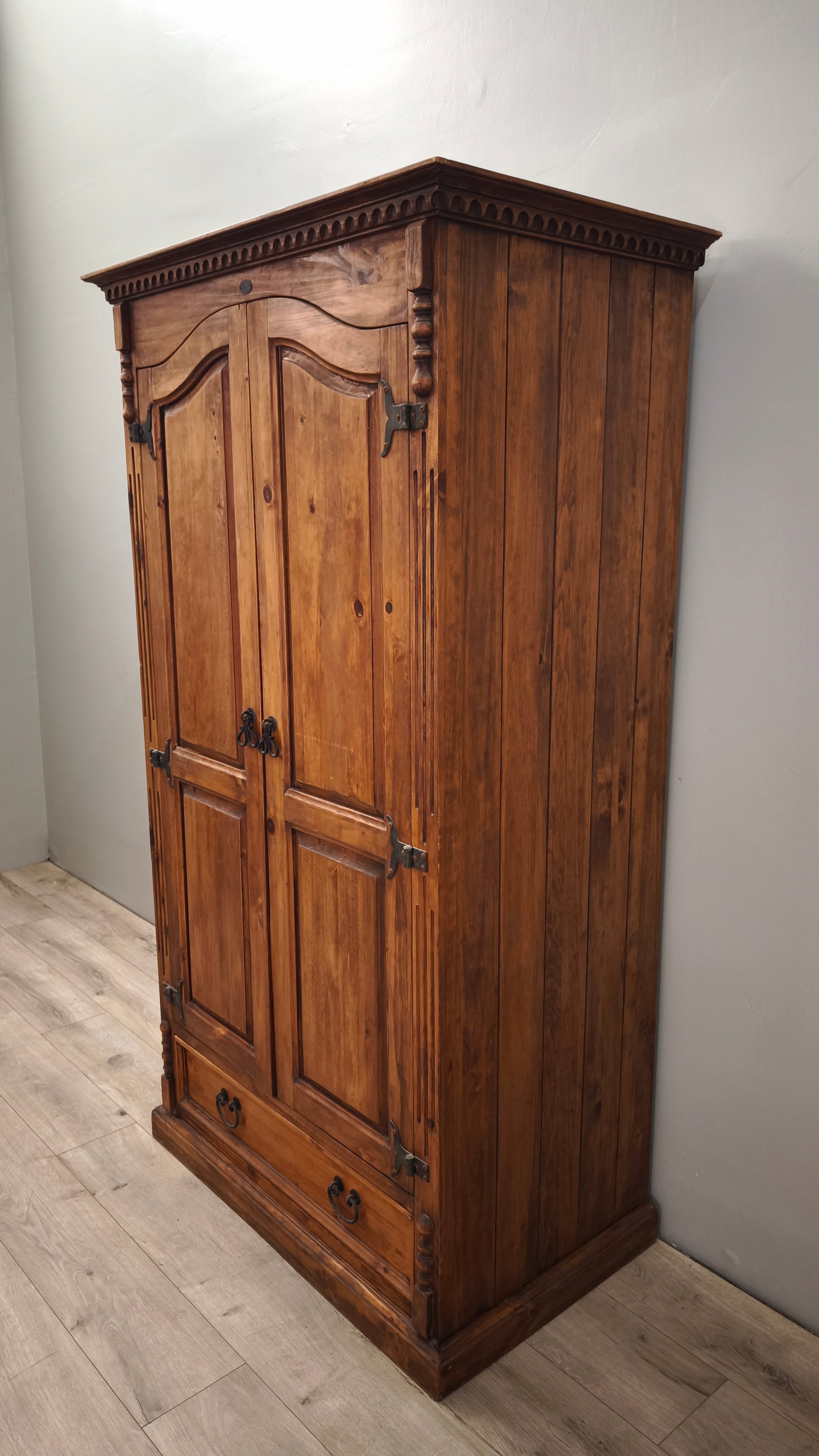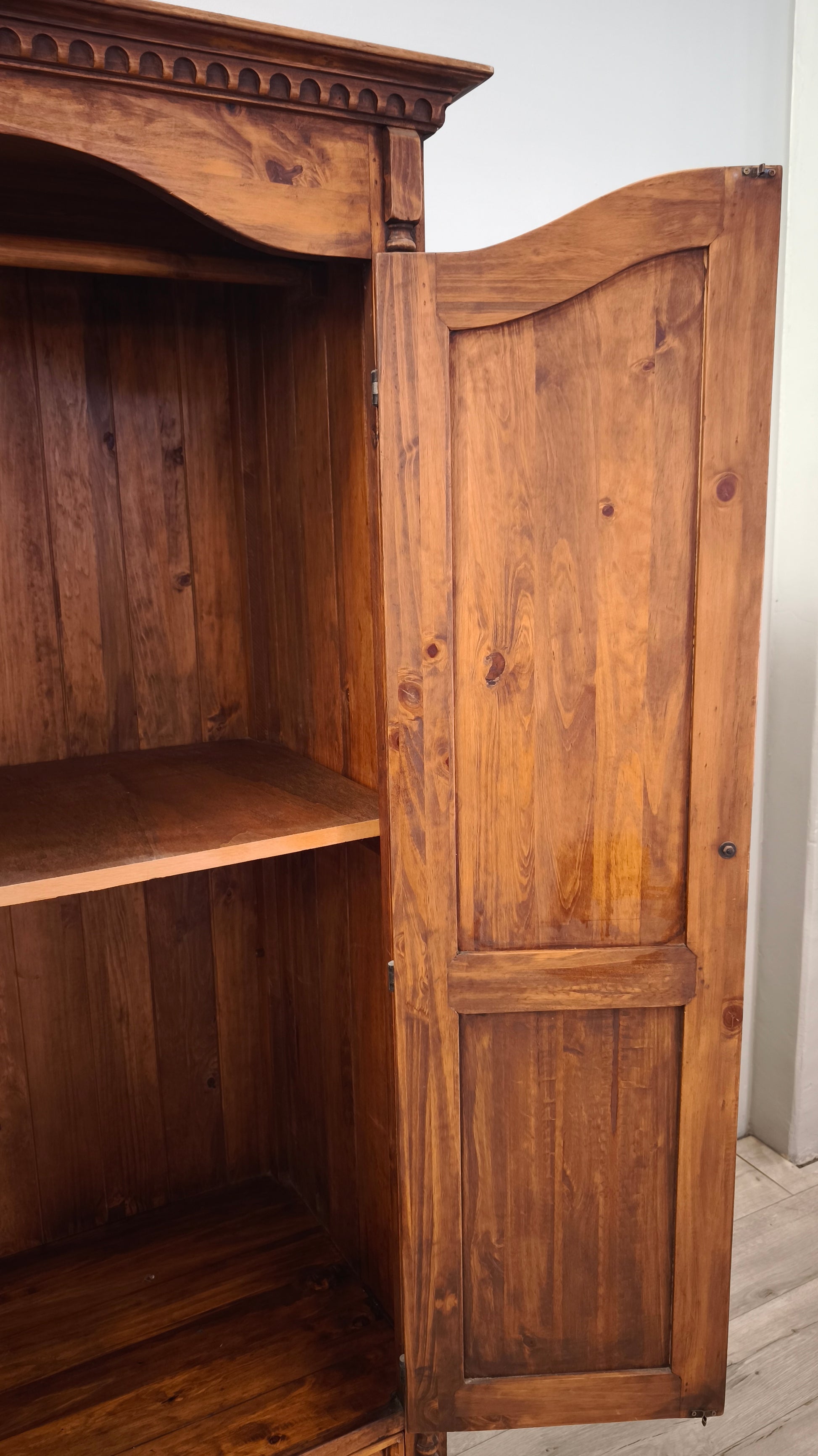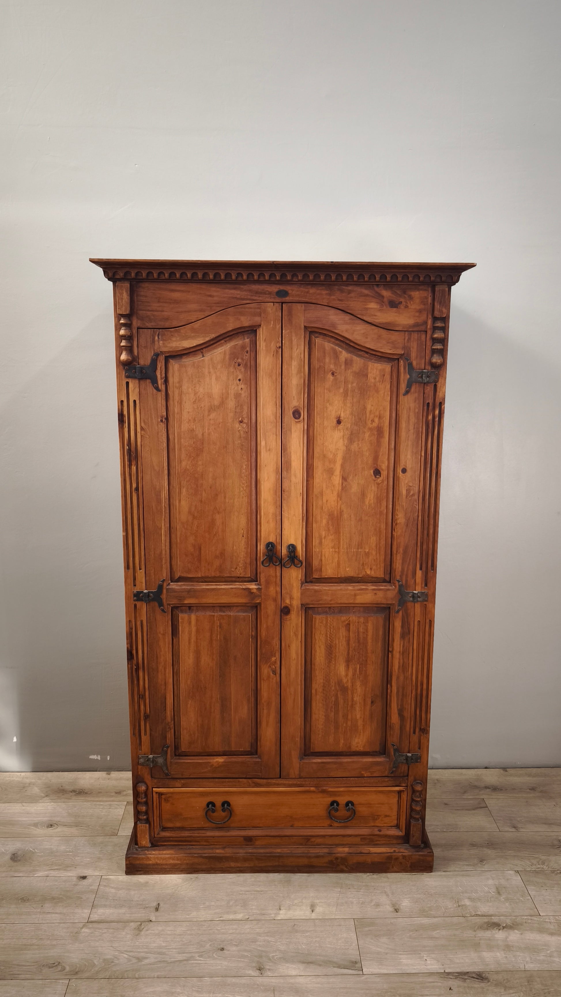 Armadio in legno composto da due ante e un cassetto nella parte inferiore, il ripiano interno è stato aggiunto e può essere rimosso