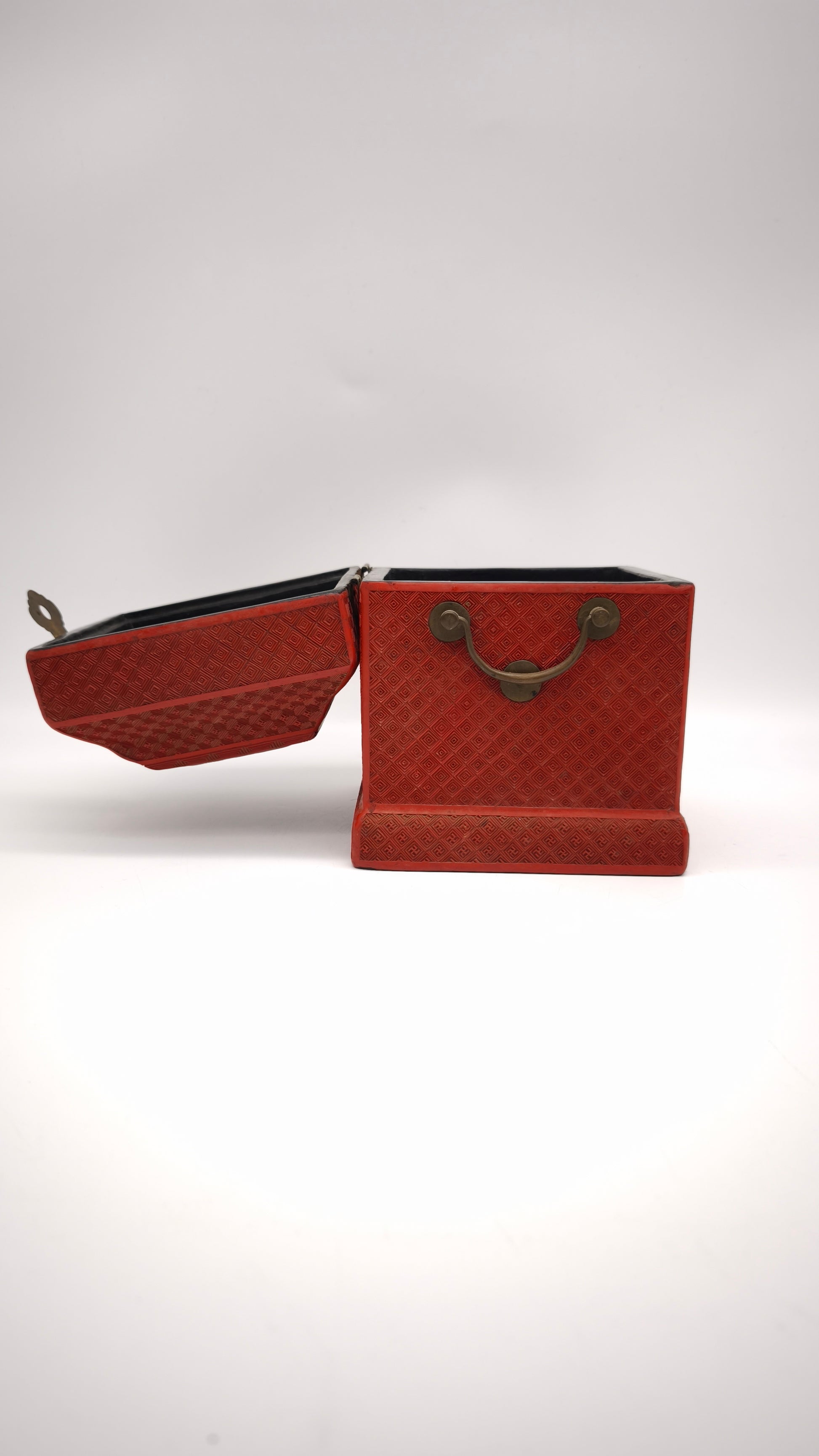 Scatola cinese portagioie in lacca rossa