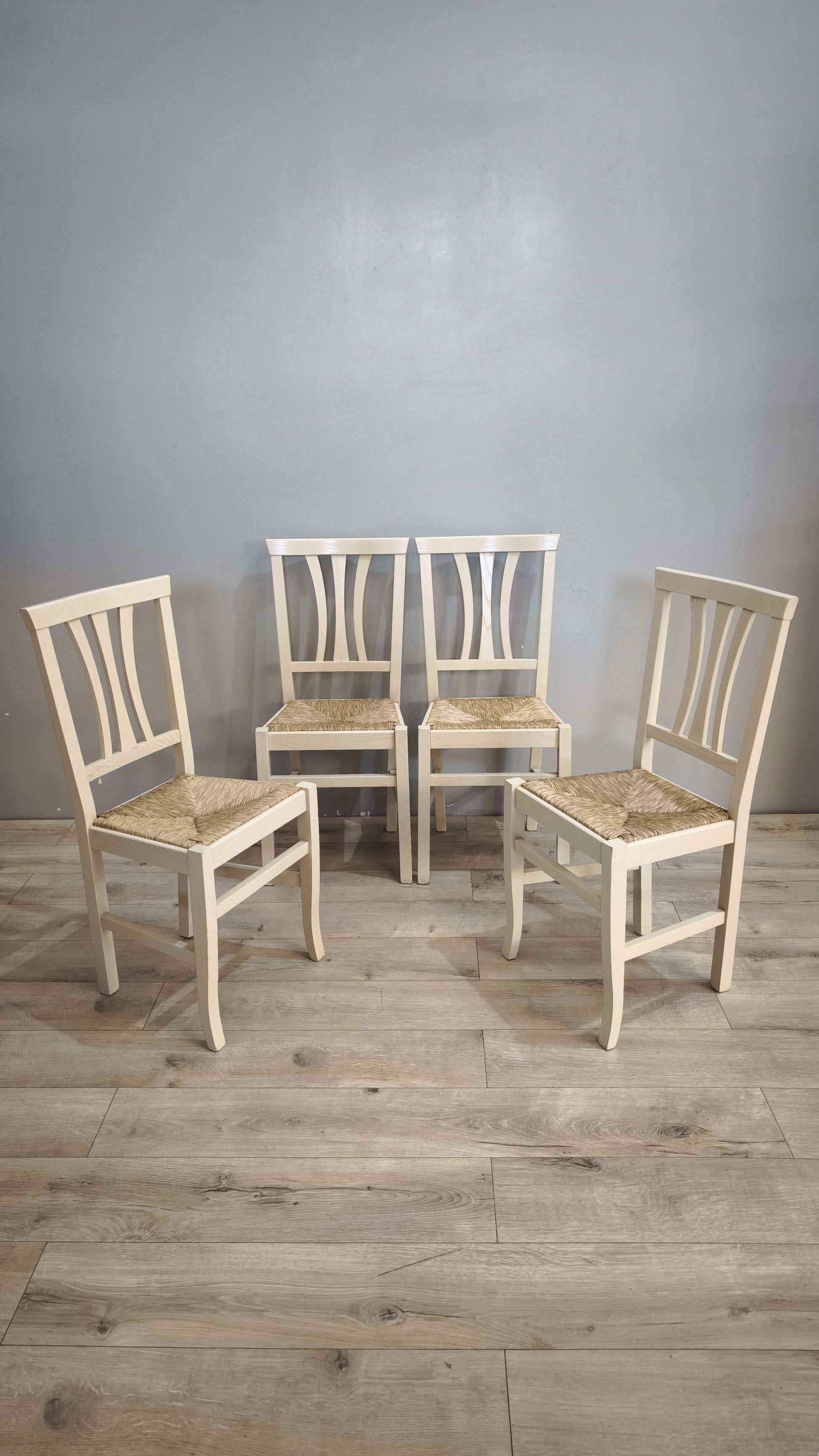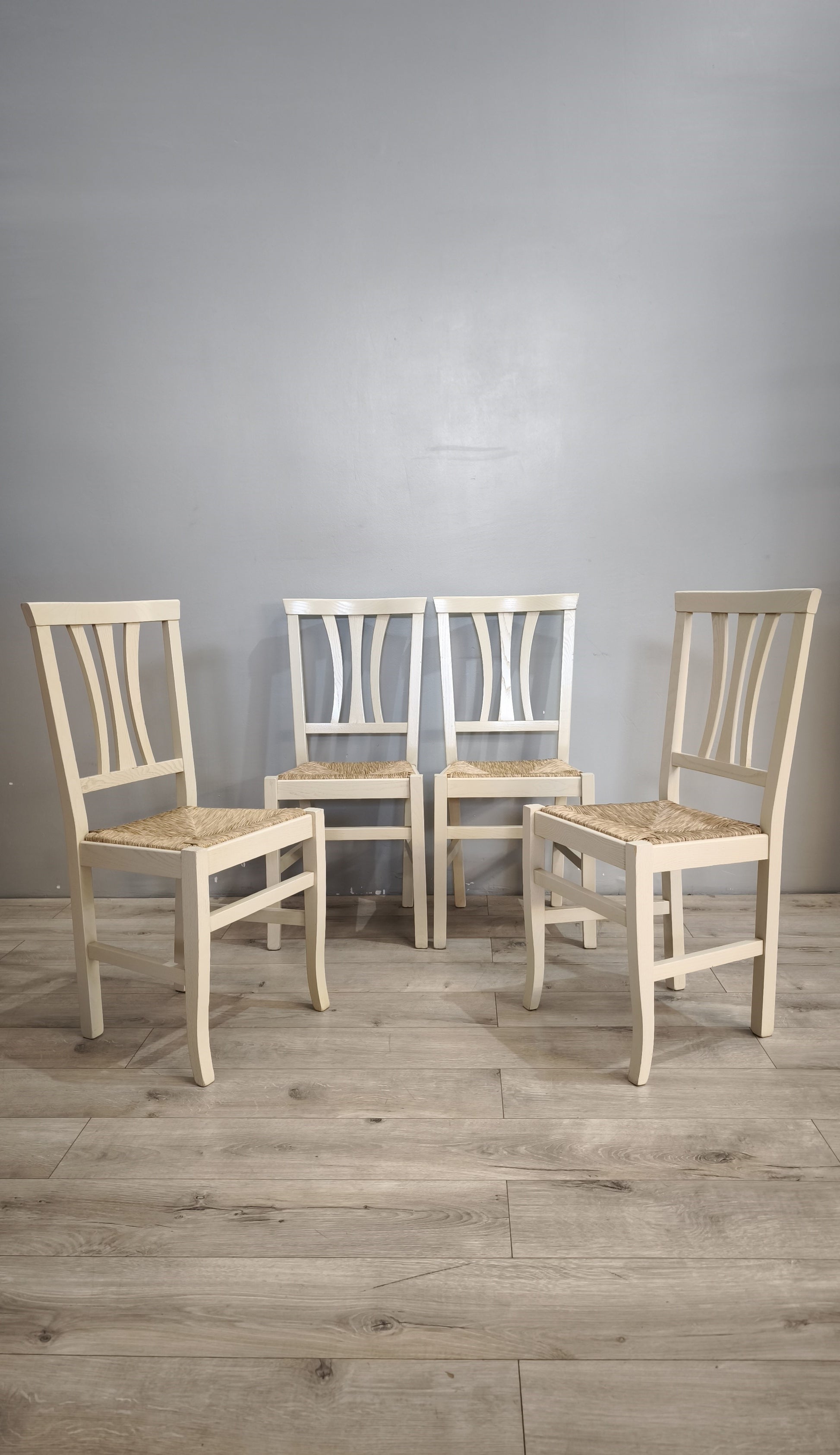 90043 Set n 4 sedie color tortora con seduta in paglia