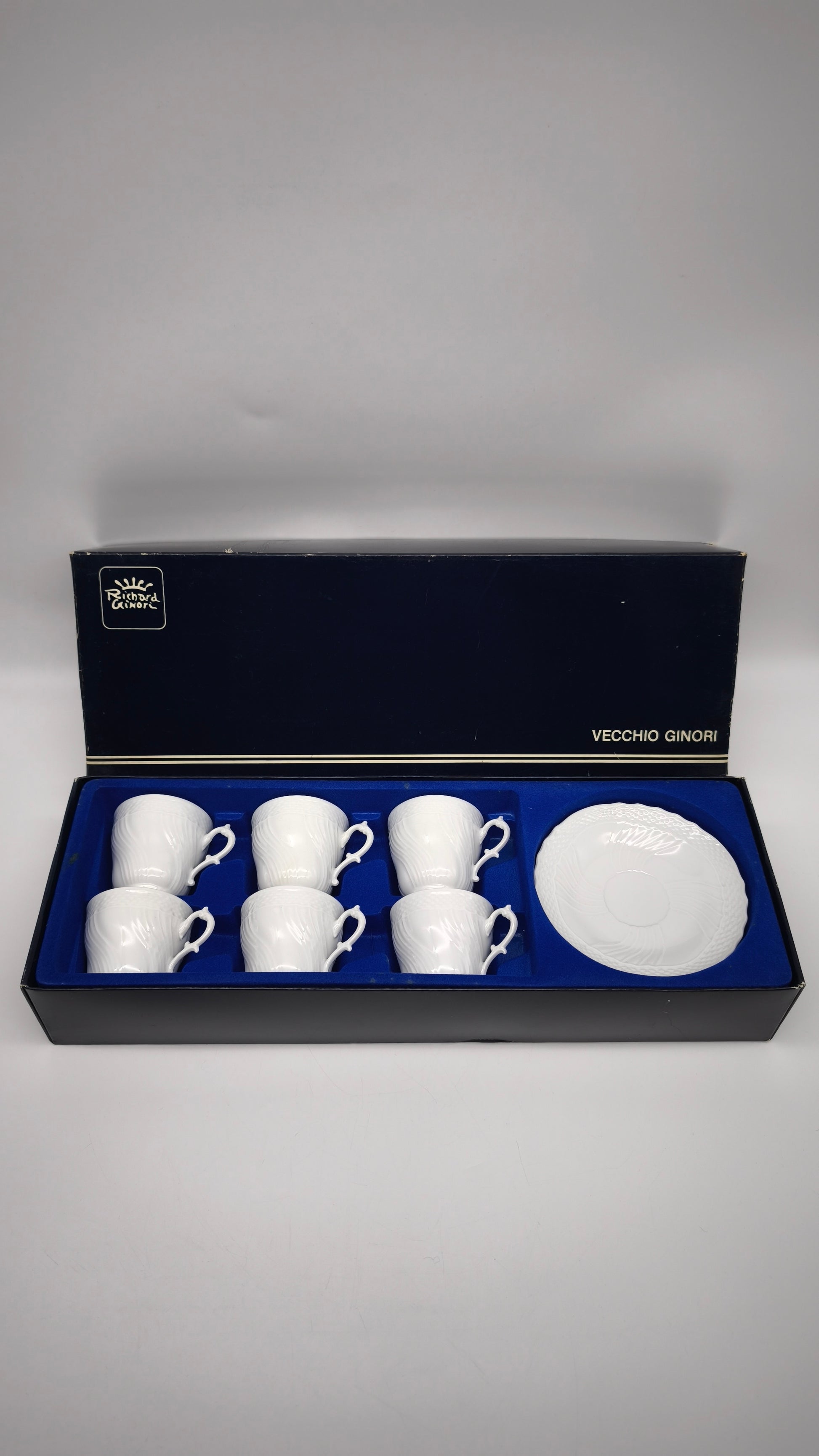 Servizio da caffè per 6 persone vecchio Ginori manifattura di doccia, completo di scatola originale